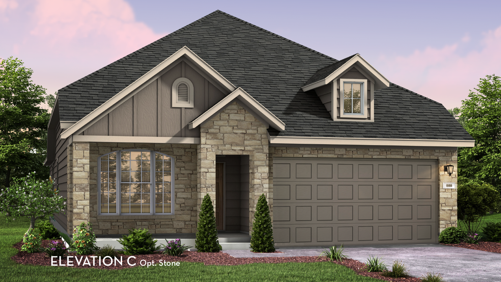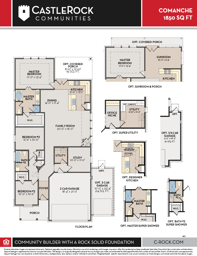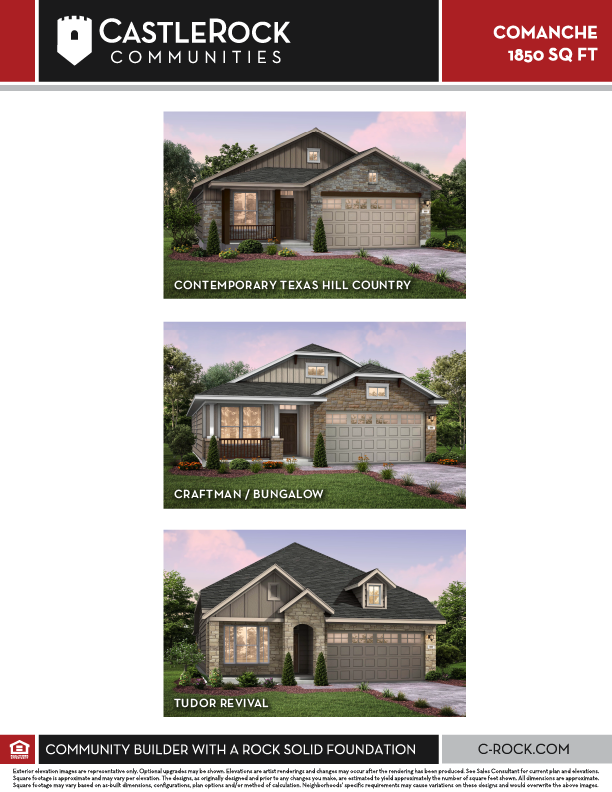 The charming Comanche plan is perfect for every type of lifestyle. Embracing the open-concept layout, this three-bedroom, two-bathroom home allows for optimal space. The front of the home provides a quaint covered front porch, perfect for relaxing and sipping coffee in the mornings, or visiting with your neighbors. Upon entry, you are greeted by the foyer that first leads to the second and third bedrooms - each boasting walk-in closets, as well as the full secondary bathroom complete with a single vanity and a shower/bathtub enclosure that you can swap for a super shower, if you desire. Then, you are led to a short hallway that grants access to the walk-in utility room, the secluded study room, and the two-car garage. Need more space for another car or to store other necessary items? Opt for a third-car garage instead! You can also supersize your utility to maximize your space and turn the study into a smaller office niche - the choice is yours. Around the corner, you are then met with the sprawling combined family room with the option for a stylish fireplace and the dining area that opens up directly to the kitchen. With this layout, you will never worry about missing out on the fun with your guests! Boasting exclusive features, the kitchen includes ample counterspace with granite countertops, flat-panel birch cabinets, and designer light fixtures. With access from your kitchen, you will be led to your optional covered patio. Are you a fan of natural light streaming in as much as possible? Choose to include an optional sunroom with your covered patio stretching across the sunroom and master bedroom! Finally, retreat to your master bedroom with attached master bathroom containing a bathtub, single shower, double vanities with LED down lighting, and an enormous walk-in closet! You also have the ability to transform your bathtub into a super shower, if you like. There's something for every lifestyle in the Comanche - you can not go wrong with this plan!