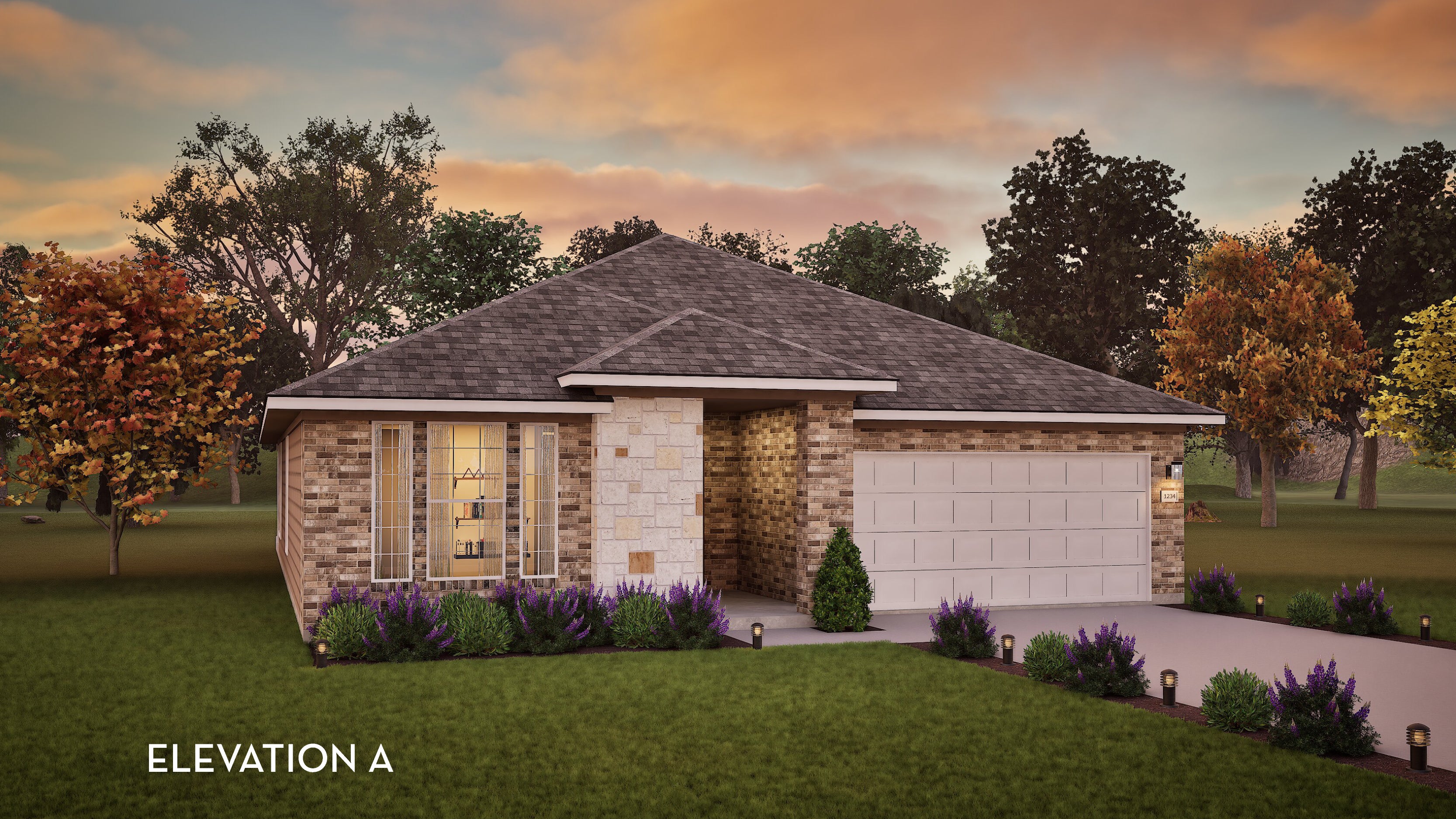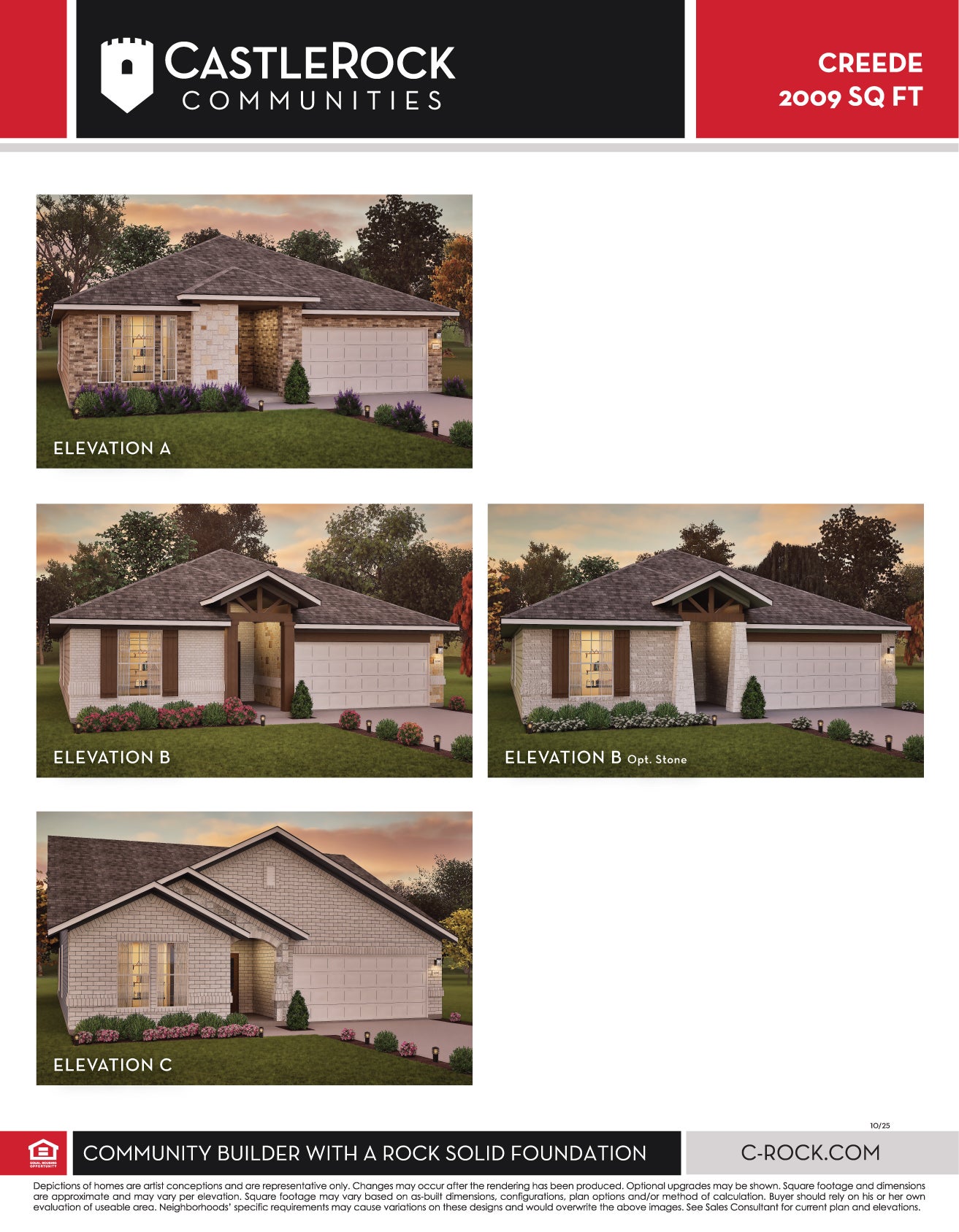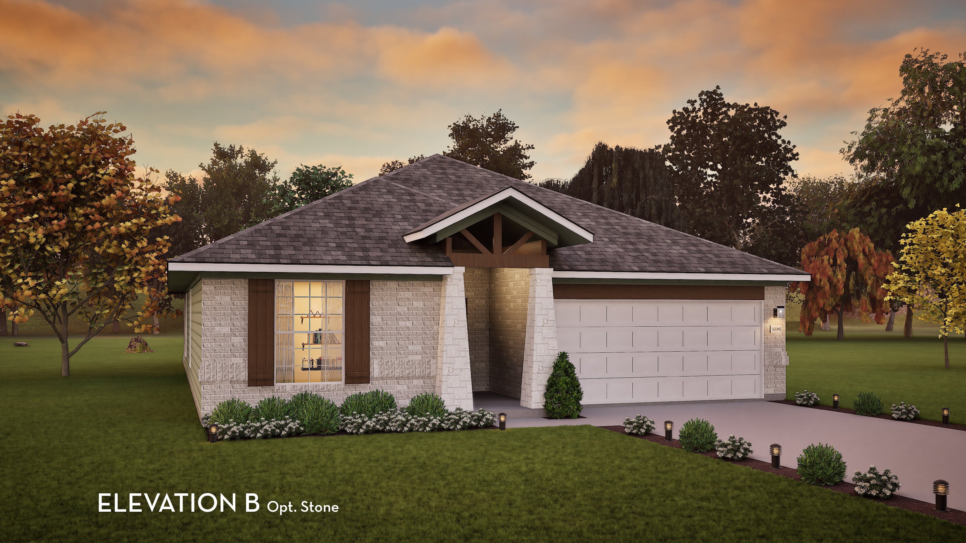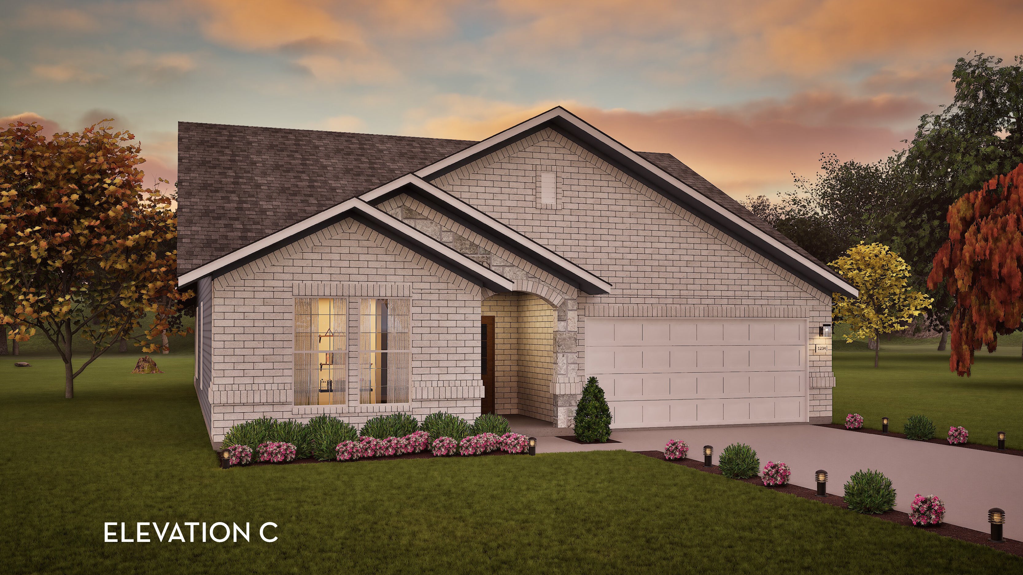 Boasting with space, the Creede plan is a highly sought-after one-story home with space for the whole family to enjoy. This three-bedroom, two-bathroom home is the perfect layout for most any lifestyle, no matter what stage of life you are in. Entering the home, you will find the long foyer leading to the second and third bedrooms, with the full secondary bathroom residing in the middle. Across the foyer lies the entry to your two-car garage. If you are yearning for more space to park a third car, or simply to store necessary items, decide to tack on an extra half-car or one-car garage! Proceed further down the hall where you will discover your walk-in utility room along with a secluded study room where you can work from home peacefully or choose to transform it into a fourth bedroom, if you are needing the extra space. Finally, at the back of the home, you are met with your combined living space. The open kitchen comes equipped with granite countertops, ample counter space, industry-leading appliances, and a pantry. It also opens up to the formal dining room and family room space, making this the perfect layout for entertaining guests. Add a stylish element to your family room by putting in an optional fireplace that will surely impress all of your family and friends. Right off the dining room, there is access to your backyard with the option to include a covered patio. Around the corner from the family room is your private master bedroom. Your refined master bathroom is complete with double vanities with LED down lighting, a bathtub and shower, and a substantially-sized walk-in closet. If you prefer a shower over a bathtub, you can opt to include a super shower in both the master bathroom or secondary bathroom instead! With plentiful included features and exclusive options available to you, the Creede floor plan is tailored to fit your lifestyle, wants, and needs the way you have always imagined. You will not ever have to sacrifice comfort with the Creede!