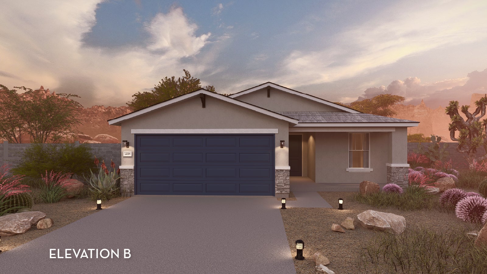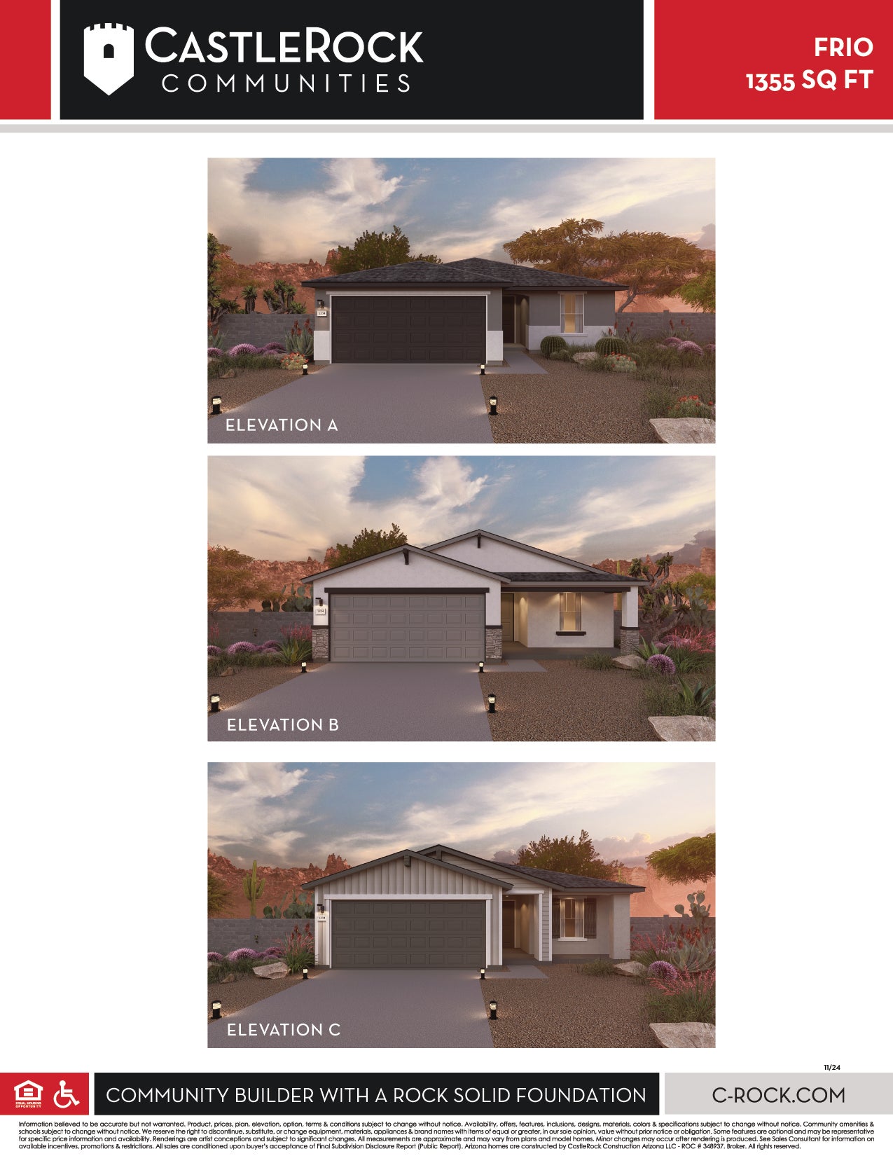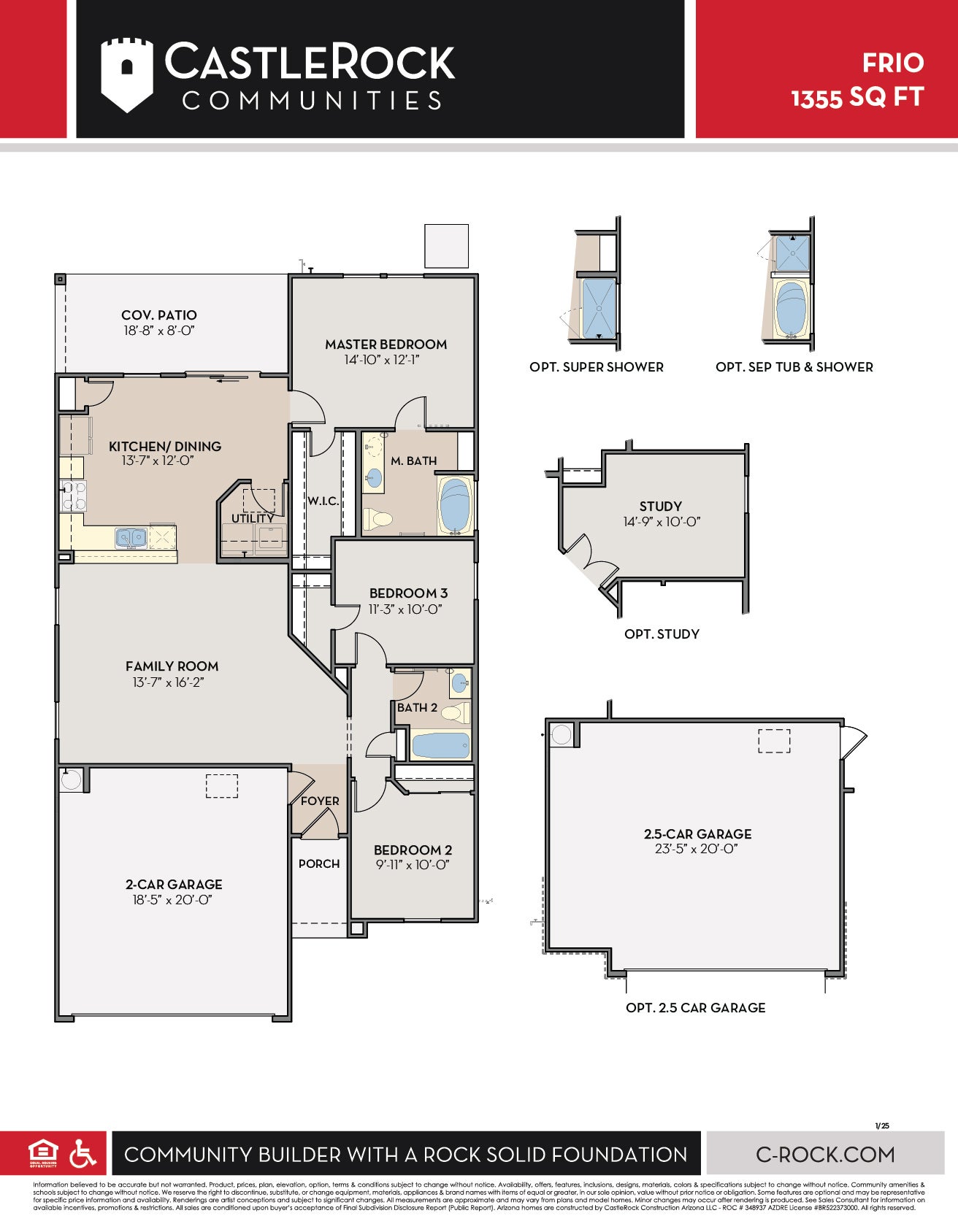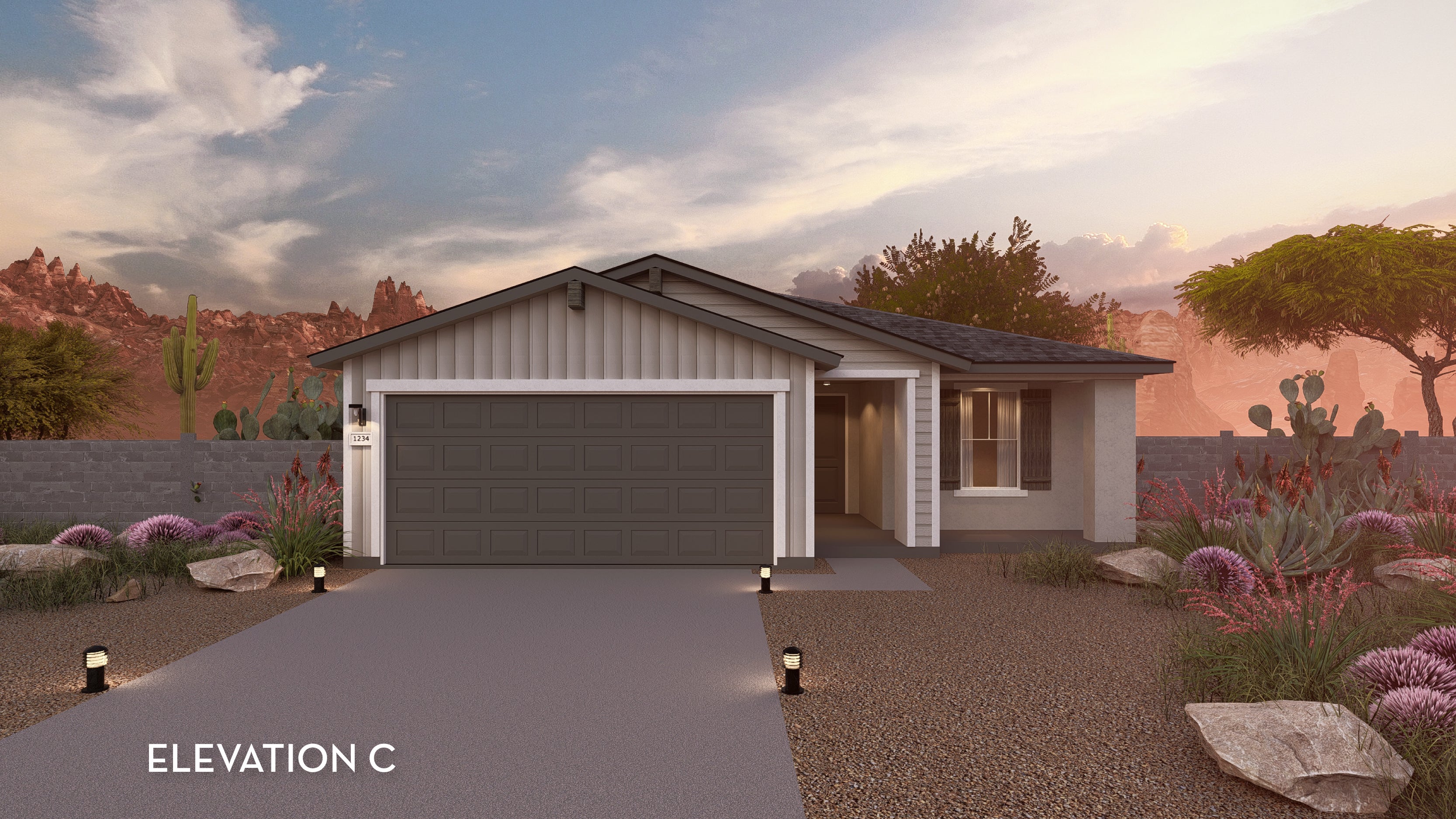 The Frio floor plan is as exciting for its features as it is for the tremendous value. A package of dynamite, this home boasts three bedrooms, two walk-in closets and two baths joined with a huge family room and a large kitchen/dining area. Upon entry of the home, you are met with access to your two-car garage. If you are needing the extra storage space, you are able to opt for an extra 1/2-car garage! You are then guided to the heart of the home - the sizable family room that faces the kitchen. This layout is ideal for hosting gatherings for all your friends and family. Opening up to the family room is your conveniently-designed kitchen and breakfast/dining room combination with entry to your walk-in utility room. The kitchen area is equipped with exclusive features like granite countertops, designer light fixtures, and flat-panel birch cabinets - these features alone are sure to please any crowd! Leading to your backyard from the breakfast/dining area, you can decide to include a covered patio if you like to get a breath of fresh air while being protected from the weather. The three large bedrooms are the perfect size for your family or guests when they come to visit. The second and third bedrooms are placed at the front of the home, with the third bedroom boasting a walk-in closet. The secondary bathroom lies conveniently between the two bedrooms. If you are looking to find the balance between work and play with a designated area to get things done, opt to transform the secondary bedroom into a study room! The option is yours. Lastly, the private master suite is secluded on the other end of the home and boasts a generously-sized master bathroom. The master bathroom is complete with cultured marble countertops with the option for dual vanities, a shower/bathtub enclosure, and a massive walk-in closet for you to enjoy! Upgrade your master bath to a master luxury bathtub with shower or an oversized super shower instead. You will cherish living in your Frio home!