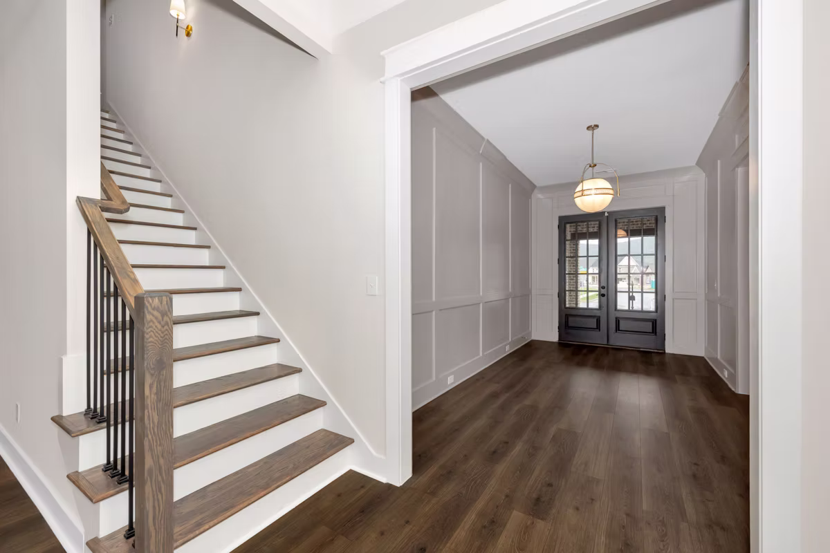 The Milo B plan is a spacious and highly adaptable four-bedroom, three-bathroom home designed to fit your lifestyle. From the inviting front porch, step into a wide foyer that immediately sets the tone for this impressive layout. To the left, two bedrooms with their own closets share a full bath, ideal for family or guests. Continue straight ahead and enter the heart of the home: a generous family room featuring a cozy fireplace and a view of the backyard that fills the space with natural light. This central gathering area opens to the kitchen and breakfast nook, creating a seamless flow for entertaining or everyday living. The kitchen offers high-quality cabinetry and an island that provides extra counter space, perfect for preparing meals for a crowd or hosting holiday dinners. From the breakfast area, step out onto the rear-covered porch for fresh air and outdoor relaxation. Completing the first floor is the master suite, a private retreat boasting a luxurious walk-in closet, dual vanities, and a separate shower and bathtub for ultimate comfort. Upstairs, discover a fourth bedroom with its own full bath and a sprawling bonus room that would be perfect for watching a movie marathon on a Sunday or watching your favorite team win a big game. With its thoughtful design and adaptable spaces, the Milo B delivers the perfect balance of comfort, style, and functionality.