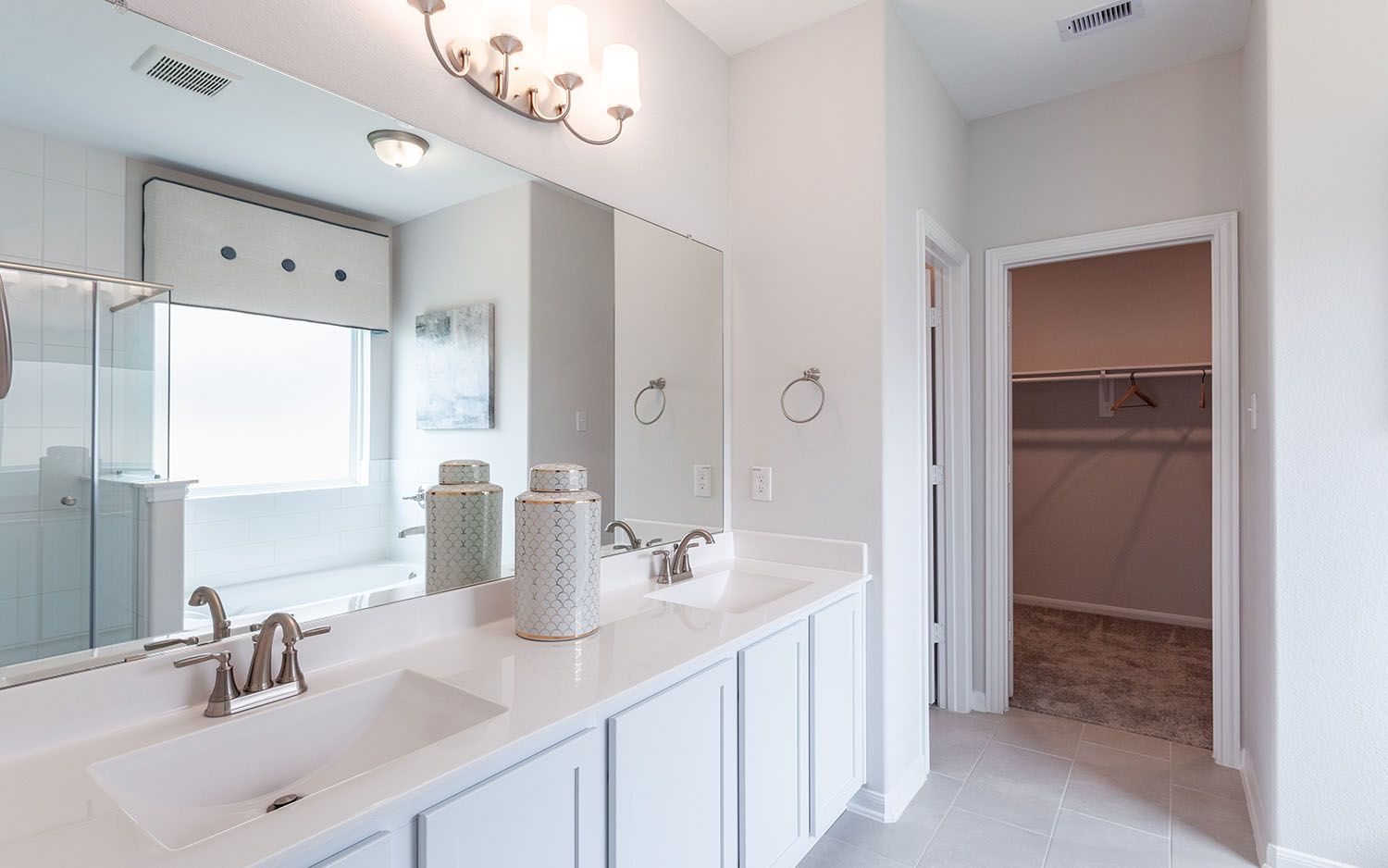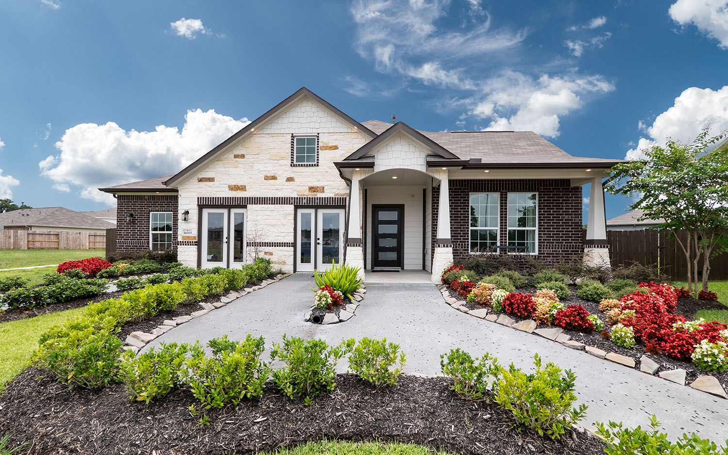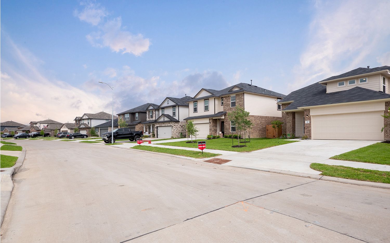 From Houston: Merge onto I-45 N, then take exit 48A to merge onto I-10 E toward Beaumont. Keep right to stay on I-10 E, then keep right at the fork to continue on US-90 E, following signs for Liberty. Use the right lane to merge onto S Lake Houston Pkwy, then take the US-90 E ramp to Uvalde Rd. Continue on US-90 E, then keep left. Take the exit toward Crosby and use the right lane to turn left onto US-90 BUS W. Continue straight onto FM 2100 N (pass by McDonald's on the right). Go past Crosby High School until it dead ends, then turn left. The model is located at 14307 Pecan Maple Dr with the red flag in front.
