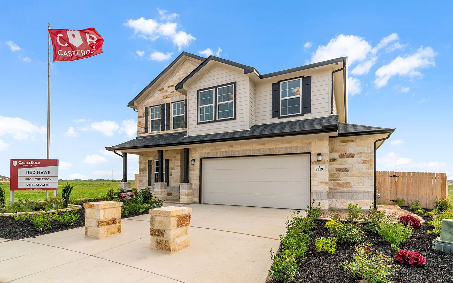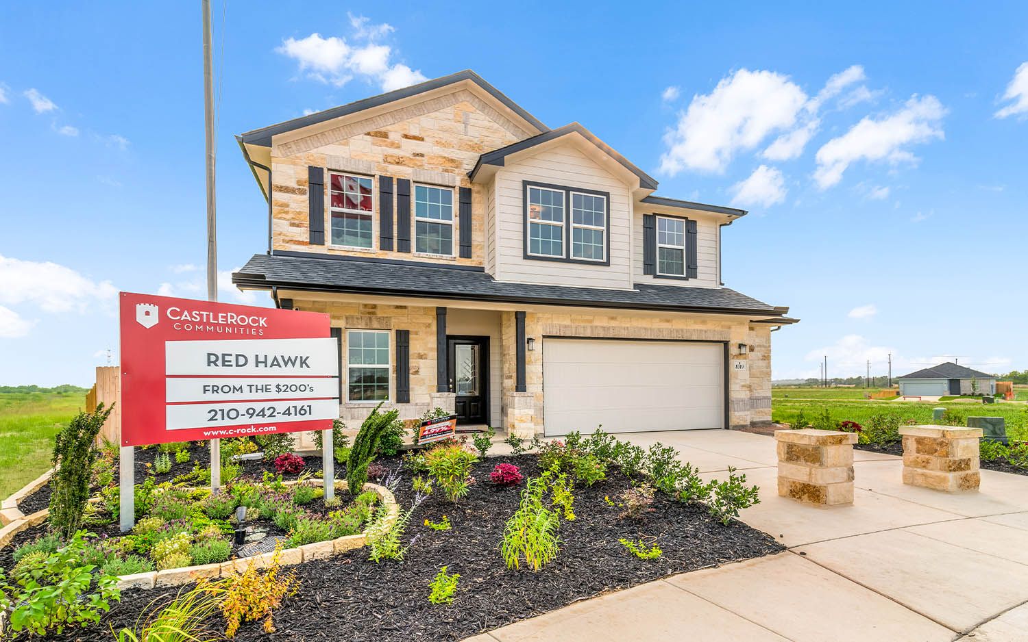 Red Hawk Landing is a newly developed community ideally located just southeast of San Antonio , offering the perfect balance of suburban tranquility and urban excitement. Situated just off the I-37 and I-410 corridors, this new neighborhood places you only 15 minutes from downtown San Antonio , putting world-class dining, shopping, and entertainment right at your fingertips. Whether you’re a first-time homebuyer , relocating for work , or looking for a new family home, Red Hawk Landing is the perfect destination. Take in the charm of the historic San Antonio Riverwalk , explore vibrant neighborhoods, or enjoy a day at the Alamo —all within easy reach of your new home. This stunning new home community offers a variety of modern floor plans from the highly sought-after Cobalt Series , crafted to suit every lifestyle and budget. Whether you’re looking for spacious open-concept living , a flexible home office , or a luxurious primary suite , Red Hawk Landing has the perfect home for you. Our homes are built with high-end finishes , energy-efficient features , and customizable options to reflect your unique taste. At CastleRock Communities , we understand that building your dream home is a big decision. That’s why we offer a seamless and transparent homebuilding process , helping you make informed choices every step of the way. From modern kitchens to premium flooring options , every detail of our homes is designed to enhance your lifestyle. For families, the neighborhood is in a prime location to access top-rated schools , parks, and recreational activities. Spend weekends enjoying family-friendly attractions or take advantage of nearby outdoor spaces for relaxation and adventure. Red Hawk Landing offers affordable, high-quality living, with homes that fit your needs and exceed your expectations. With a wide range of personalization options , we make owning a new home a reality. Don’t miss out on this incredible opportunity to join a vibrant community in one of San Antonio’s most desirable locations. Contact CastleRock Communities today and let us help you find the perfect home in Red Hawk Landing —where comfort, convenience, and quality await.