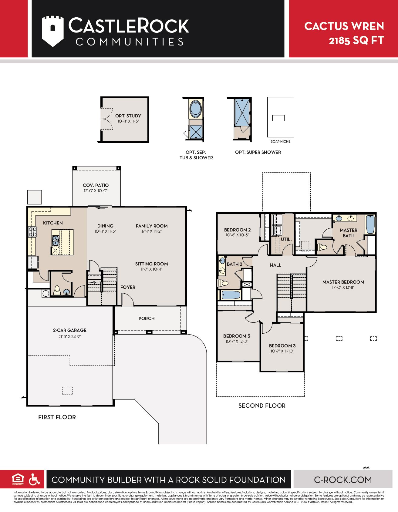 You'll be nothing but enchanted by all the many unique offerings and features that the Cactus Wren home has to offer. This floor plan welcomes you with the combined living areas residing on the main floor. The Cactus Wren plan offers both a family room and an adjacent sitting room providing optimal convenience for guests. The family room leads directly to the dining room, which opens to your spacious kitchen. Your kitchen is equipped with granite countertops, designer lighting, and a center island with plenty of counter space for you to enjoy. Completing the main floor is the 2-car garage, convenient powder bathroom, and access to the spacious covered patio. The second floor holds all 4 bedrooms, 2 full bathrooms, and a walk-in utility room. The large master bedroom provides abundant natural light through its 3 windows. The master bath has the option to upgrade to a separate tub and shower or a super shower with dual vanities! No doubt, this floor plan will generously accommodate any lifestyle, allowing you to live comfortably.