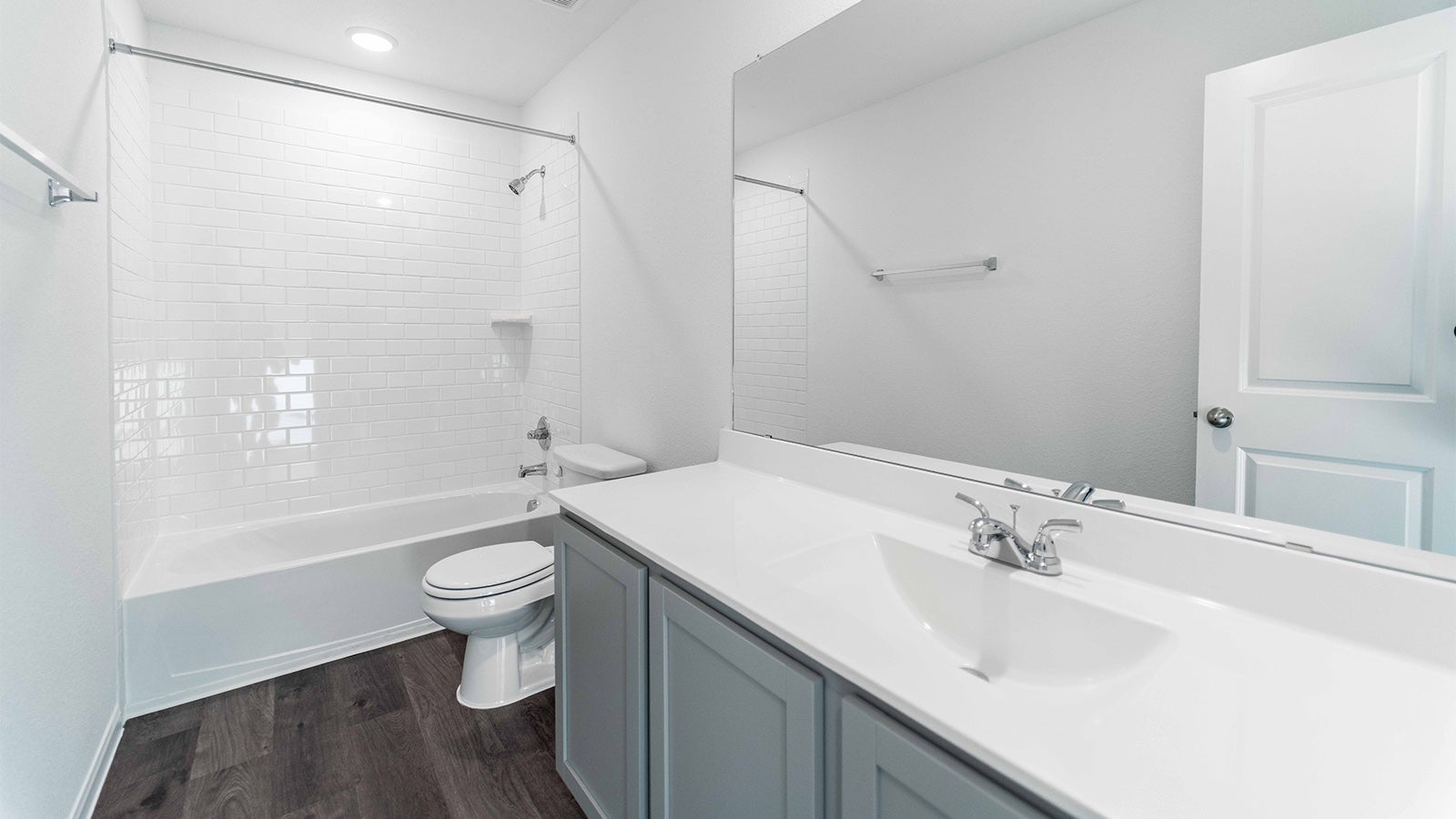 Boasting an open-concept layout consisting of four large bedrooms, and 2.5 bathrooms, the Hickory home is nothing short of practical! Entering the home, you are greeted by the foyer area and convenient downstairs powder room. You are then led to the central area of the home featuring the combined kitchen and dining area. The kitchen includes plenty of countertop space with an island, granite countertops, designer light fixtures, and industry-leading appliances. Facing the kitchen & dining area is the spacious family room with access to the backyard - if you'd love to enjoy a cup of coffee outside in the morning, opt to include a covered patio! Completing the first floor is the large master suite. The attached master bathroom includes a super shower, cultured marble countertops, as well as a huge walk-in closet. Upstairs resides the game room, perfect for the kids, three additional bedrooms with walk-in closets, and another full bathroom. With enough room to sprawl out, the Hickory plan is perfectly sized to accommodate most any sized family!