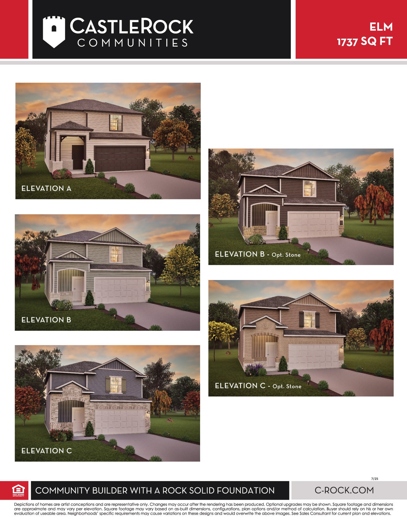 The Elm floor plan presents an open, two-story layout complete with three bedrooms, two and a half bathrooms, and a two-car garage. This home greets you with a spacious front porch in which you can relax with your morning coffee. Upon entering the home, you are met with stunning vinyl flooring and a foyer that leads to the combined family room and kitchen. On the way, you will find the convenient downstairs powder room equipped with a white pedestal sink and decorative mirror. The formal dining room is ideal for hosting guests, and the integrated kitchen opens up to the family room, so no one will have to miss out on a conversation! The large kitchen features plenty of counter space, granite countertops with an under-mount stainless steel sink and a ceramic tile backsplash, a kitchen island, flat-panel birch cabinets with 42" uppers, designer light fixtures, and a pantry. If you or the kids like to spend time outdoors, opt to include a covered patio! Completing the first floor is your expansive master suite including a divine master bathroom showcasing cultured marble countertops, LED down lighting, cabinetry that matches the kitchen, a super shower, and a massive walk-in closet. Right up the stairs resides the game room – a place the kids can call their own! Also upstairs is the walk-in utility room, a secondary bathroom, and two bedrooms with walk-in closets. This floor plan is uniquely designed for any lifestyle, maximizing every square foot. The vast amount of included features and design elements make this a highly desirable floor plan. You and your family will love living in the Elm floor plan.