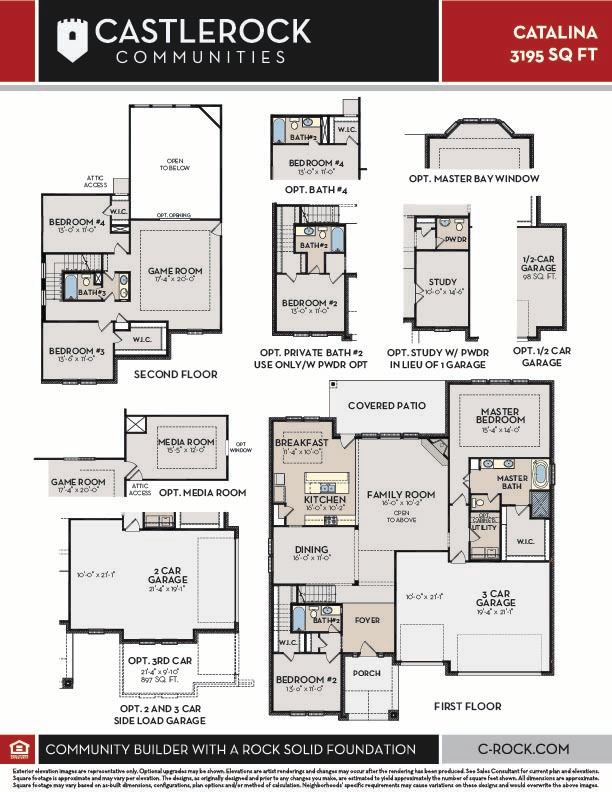 Boasting with space, this corner lot Catalina showcases an open-concept layout that the whole family is sure to love. With two bedrooms up and two down, you're able to spread out as much as you want. Entering from your front porch, you will come to find the foyer with direct access to the guest bedroom with a large walk-in closet with the full secondary bathroom just across from the bedroom. If you prefer, you can opt for the bathroom to be attached to the guest room! The foyer also brings you directly to your attractive formal dining room and sits adjacent to the two-story tall family room containing a magnificent fireplace, making this the ideal space for entertaining guests. Meanwhile, the spacious, integrated kitchen and breakfast areas provide great convenience for the whole family. The kitchen also boasts exclusive features like granite countertops, flat-panel birch cabinets, industry-leading appliances, and a walk-in pantry. With entry from the breakfast area, the sizable covered patio is perfect for relaxing days spent outdoors. Down the long corridor parallel to the family room, you are met with your walk-in utility room with the ability to add cabinets, as well as your secluded Master Bedroom with an optional bay window beaming with natural light. Your master bathroom includes two dual vanities with LED down lighting, a super shower and luxury bathtub, along with a substantially-sized walk-in closet. Head upstairs and you will be greeted by a large game room that's perfect for hosting game nights, as well as the remaining third and fourth bedrooms with walk-in closets and the third bathroom. You can also decide to include a fourth bathroom above the fourth bedroom. The Catalina home is complete with an enormous 3-car garage. Need a home office? Opt for a two-car garage instead and add a study room. If that wasn't enough, you could add a media room for your entire family to enjoy. The Catalina boasts a lot of space, so you'll stay comfortable no matter what!