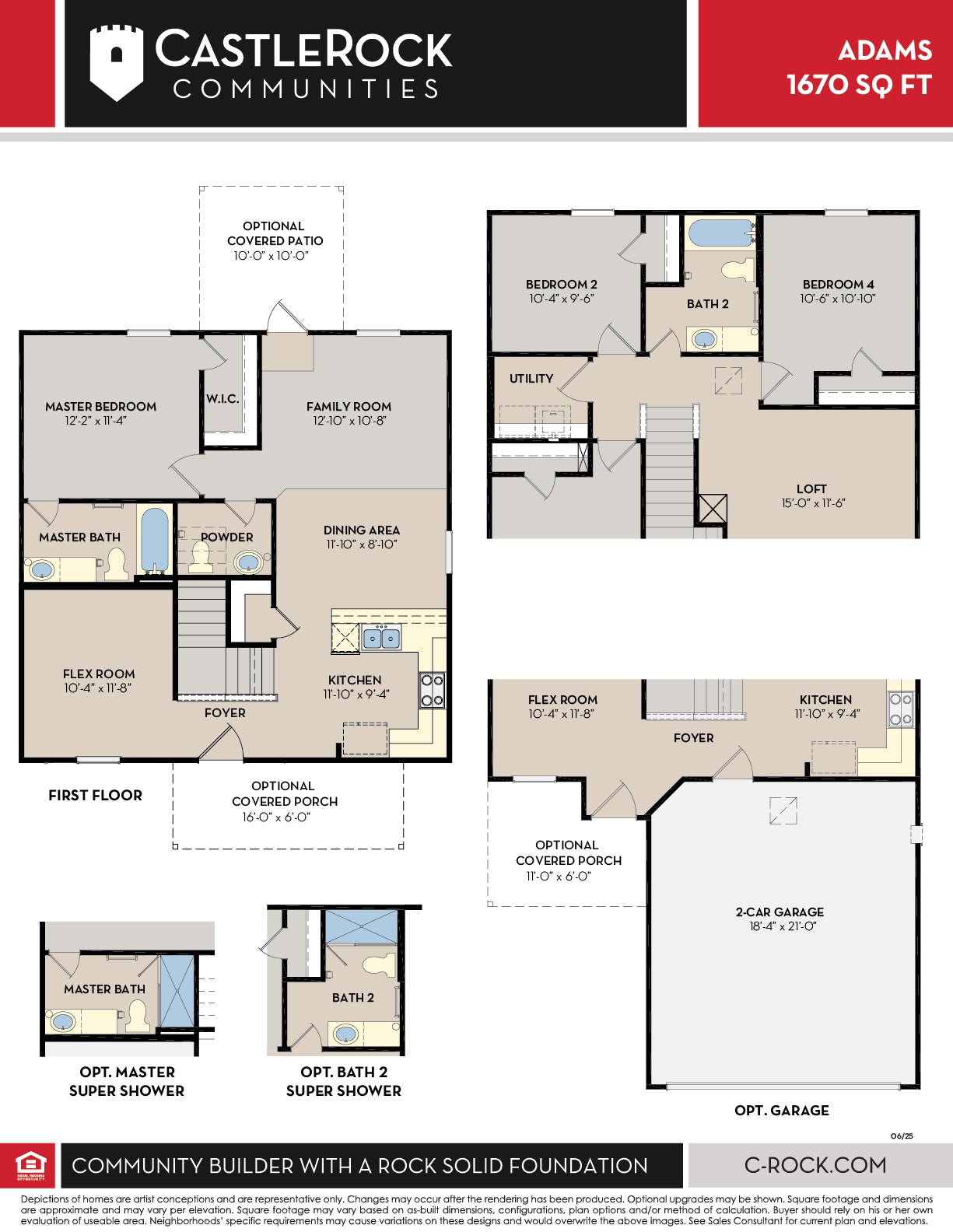 Step inside the thoughtfully designed Adams home! On the first floor, you are immediately greeted by a foyer and flex space that can be utilized as a home office, or a playroom - the options are endless! Your spacious kitchen opens into your dining area and family room and has a breakfast bar adding optimal convenience when dining. Across the hall is the convenient powder room, as well as the master suite, featuring designer lighting & fixtures, as well as a sizeable walk-in closet. For added luxury, opt to upgrade to a super shower! Upstairs, a loft space holds the best spot for movie or game nights. The second floor also contains three other bedrooms, a full bathroom with the ability to upgrade to a super shower, as well as a utility room. If you are looking to upgrade your home, you can add a covered back patio and covered front porch as well as a two-car garage! The open floorplan that the Adams offers is perfect for making your home welcoming and comfortable to all who enter.