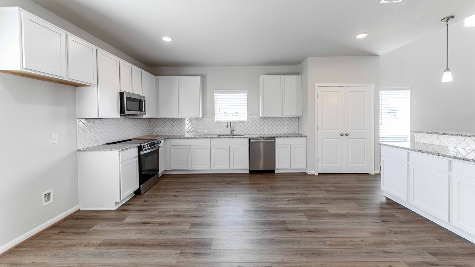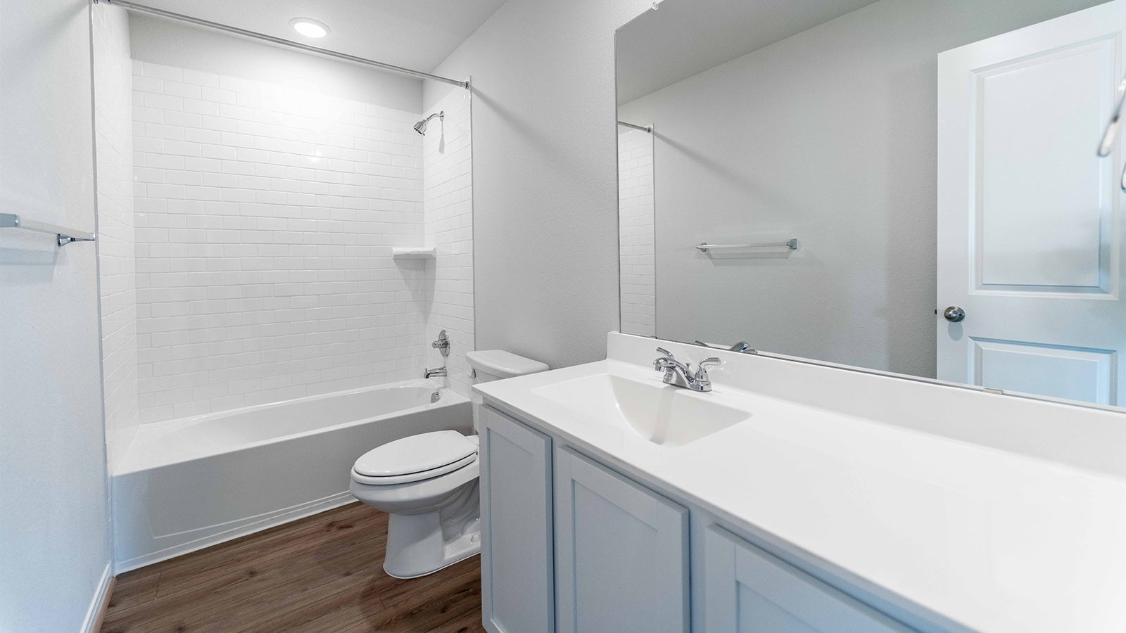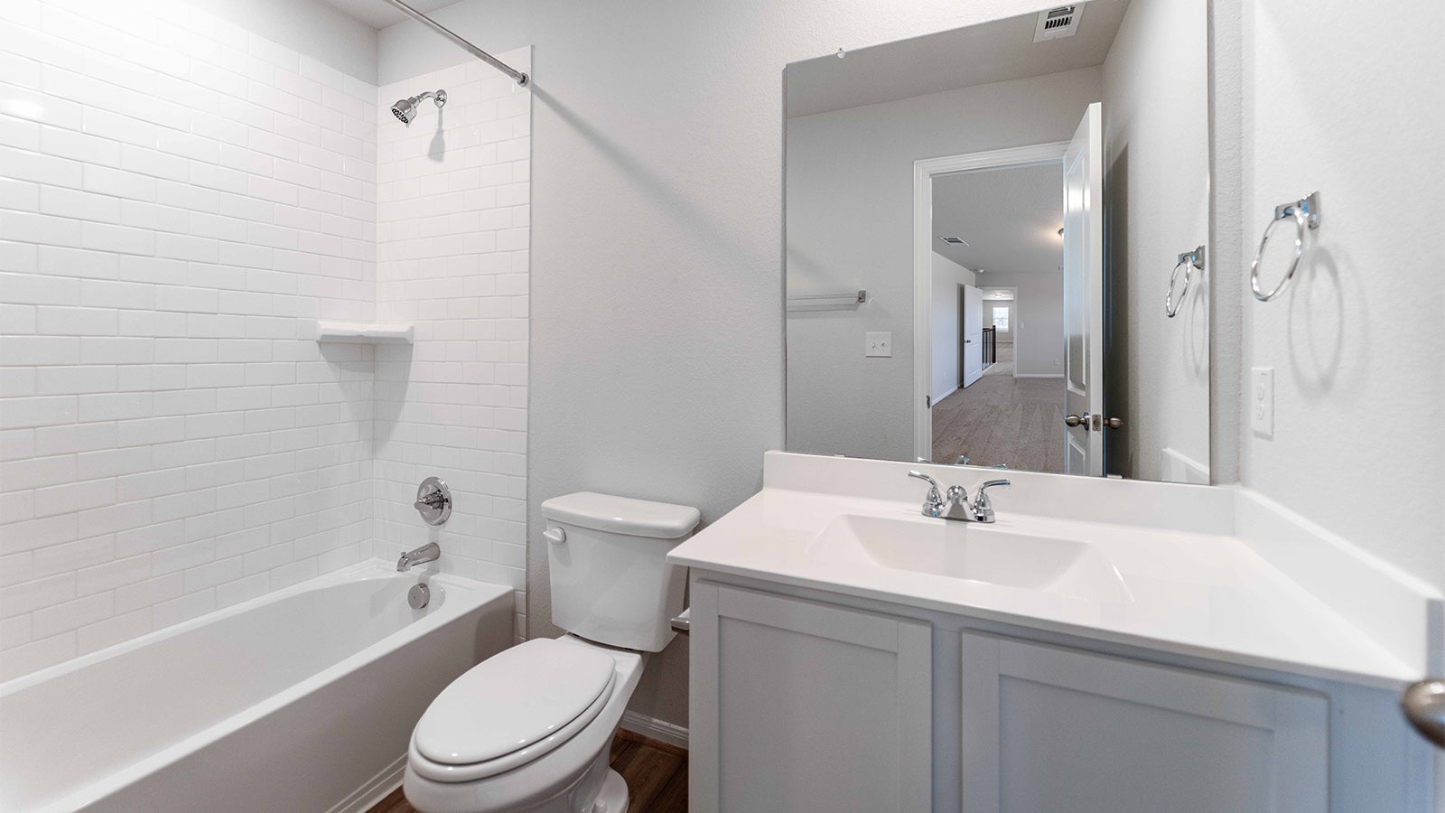 Every square foot is maximized with our Concho plan – the ideal home for the growing family. This 4-bedroom home offers space, flexibility and comfort. Entering your new home, you are met with a foyer leading to your secluded study room. If you are looking for a little more living space, opt to transform the study room into your fifth bedroom! Travel further down the hall and you will discover the entry to your walk-in utility room, the convenient downstairs powder room, as well as the entry to your two-car garage. Need a little more room for your tools or holiday decorations? Decide to tack on an extra half-car garage. Past the utility room, and you are led to the heart of the home - the open-concept, two-story family room adjoined by the oversized kitchen and breakfast area. The kitchen accommodates sleek granite countertops, flat-panel birch cabinets (with the option to add more), as well as a kitchen island! One of the most exclusive options this floor plan offers is the ability to add in an extended covered patio off the kitchen area. Talk about the perfect outdoor sanctuary! Finally, the first floor holds your private master suite with an elegant master bathroom. The master bathroom holds cultured marble countertops with the option of dual vanities, a shower/bathtub enclosure, and an expansive walk-in closet! If you are interested in taking the bathroom space to the next level you have the option to turn your bathtub into a super shower, or opt for a luxury tub with shower - both with standard dual vanities! Roam up the stairs to the second floor which is filled with three additional bedrooms, two full bathrooms and an oversized game room perfect for game nights with the family. In the Concho home, you will never have to sacrifice your space or comfort. There is something for the entire family to enjoy! With the copious amounts of included features and favorable options, you can bring your visions to life and will truly cherish your new CastleRock Concho home!