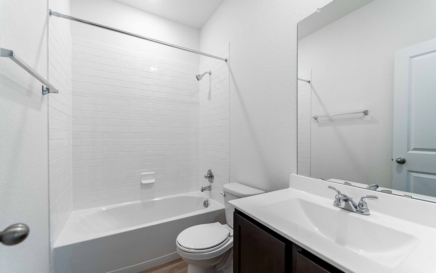 With enough space for the whole family, the Pecan floor plan will not disappoint. Upon entering your new home, you are greeted by a foyer area that is equipped with your convenient powder room, storage closet, and an entrance to your two-car garage. Needing more storage for tools, holiday decorations, or another car? Decide to upgrade to a two-and-a-half-car garage or even a three-car garage! Travel down the hallway where you are met with your expansive family room and dining room combination - perfect for entertaining guests for dinner parties, holidays, or any other occasion! Right off the living room lies your secondary and third bedrooms with the full secondary bathroom residing in between the two bedrooms. Past the dining area is your spacious kitchen area complete with access to your walk-in utility room and pantry, and contains sleek granite countertops, flat-panel birch cabinets, industry-leading appliances, and designer light fixtures that is sure to please any eye! Leading from the kitchen is access to your backyard with the option to include an extensive covered patio for you to enjoy backyard barbecues on. When it's time to rest, head over to your private master suite. Your master bathroom boasts cultured marble countertops, a large super shower, and a huge walk-in closet! The Pecan plan is perfect for most any lifestyle, no matter what phase of life you are in. Each CastleRock home is Energy Star Certified and is built with energy-efficient features that help keep you comfortable year-round. Features like low E3 cube windows, third-party inspected insulation, and high-efficiency lighting all work together to make sure you and your family are safe and comfortable throughout any season. Rest assured, you will cherish every moment made inside your lovely Pecan home. With the favorable options and exclusive features included in this floor plan, you will not regret choosing this home for your family.