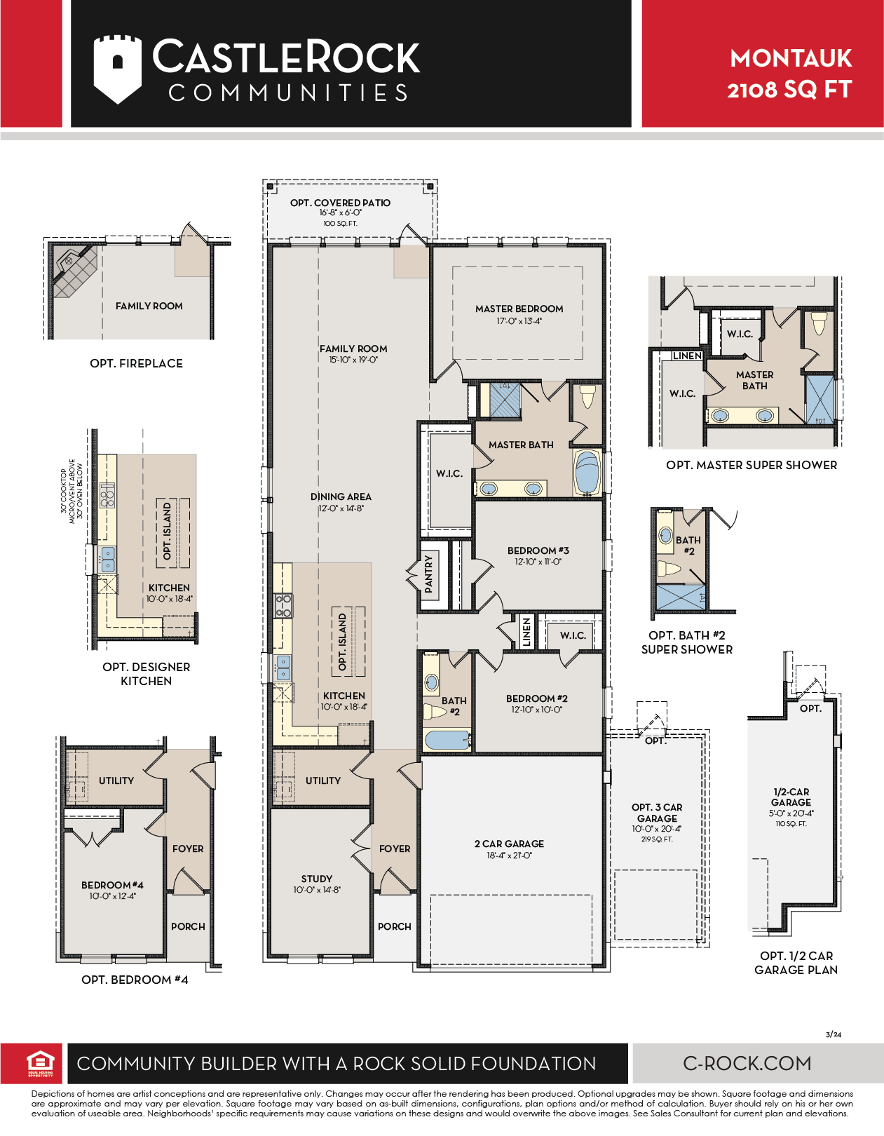 The charming layout of the Montauk plan is a well-designed, open concept masterpiece! Entering this home, you are greeted by the private study room - perfect for staying productive while working from home or for the kids to complete their homework. Walking down the foyer, you are granted access to your spacious walk-in utility room and the two-car garage. If you need the additional space for storing more supplies, tools or another vehicle, this floor plan offers the option of a two-and-a-half or three-car garage! At the heart of the home lies your beautiful kitchen and expansive dining room combined with the family room. Wow your guests with the beautiful optional fireplace. The open-concept layout of this plan makes this the perfect home for hosting gatherings of any size! Your kitchen comes complete with granite countertops, stainless steel appliances, designer light fixtures, and the option of having an island for more counterspace! The door in your family room leads you to your convenient optional covered patio, the ideal space for hosting backyard barbecues or relaxing outdoors with friends and family. When it's time to rest, the bedrooms are a short walk away. The secondary and third bedrooms, both containing walk-in closets, are located across the kitchen along with a linen closet and a full bathroom! Elevate your secondary bathroom by adding a super shower for your guests! Around the corner and across from the dining area is your secluded master retreat. Your wonderful master bathroom boasts double vanities with two sinks, a separate bathtub and shower, and a large walk-in closet. Just like with the secondary bathroom, the Montauk gives you the option of adding a super shower in place of the bathtub, should you choose. A home filled with exclusive features, attractive options, and tons of storage space - you cannot go wrong with the Montauk plan! Rest assured, you will love the freedom of space and privacy this dynamic floor plan offers you and your family.