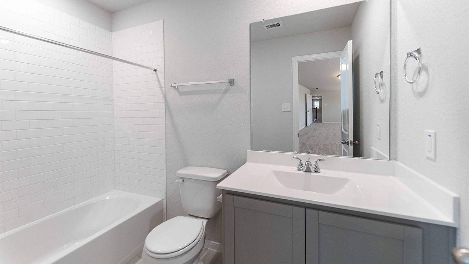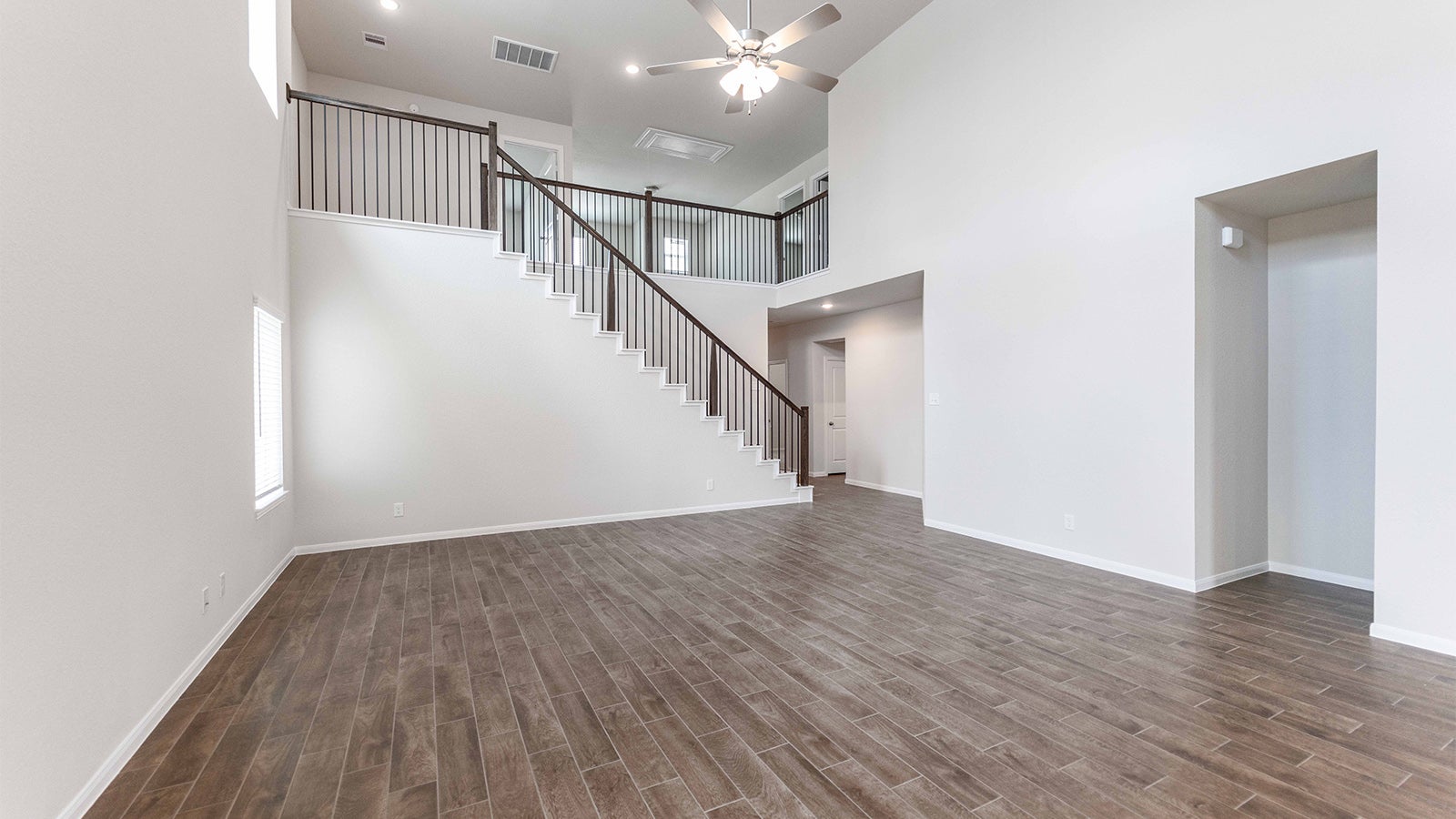 Every square foot is maximized with our Concho plan – the ideal home for the growing family. This 4-bedroom home offers space, flexibility and comfort. Entering your new home from your spacious porch, you are met with a foyer leading to your secluded study room. If you are looking for a little more living space, opt to transform the study room into your fifth bedroom! Travel further down the hall and you will discover the entry to your walk-in utility room and the convenient downstairs powder room. Need a little more room for your tools or holiday decorations? Luckily, the Concho plan bears a standard 2.5-car garage! Past the utility room, and you are led to the heart of the home - the open-concept, two-story family room adjoined by the oversized kitchen and breakfast area. The kitchen accommodates sleek granite countertops, flat-panel birch cabinets (with the option to add more), as well as a kitchen island! One of the most exclusive options this floor plan offers is the ability to add in an extended covered patio off the kitchen area. Talk about the perfect outdoor sanctuary! Finally, the first floor holds your private master suite with an elegant master bathroom. The master bathroom holds cultured marble countertops with the option of dual vanities, a shower/bathtub enclosure, and an expansive walk-in closet! If you are interested in taking the bathroom space to the next level you have the option to turn your bathtub into a super shower, or opt for a luxury tub with shower - both with standard dual vanities! Roam up the stairs to the second floor which is filled with three additional bedrooms, two full bathrooms and an oversized game room perfect for game nights with the family. In the Concho home, you will never have to sacrifice your space or comfort. There is something for the entire family to enjoy! With the copious amounts of included features and favorable options, you can bring your visions to life and will truly cherish your new CastleRock Concho home!