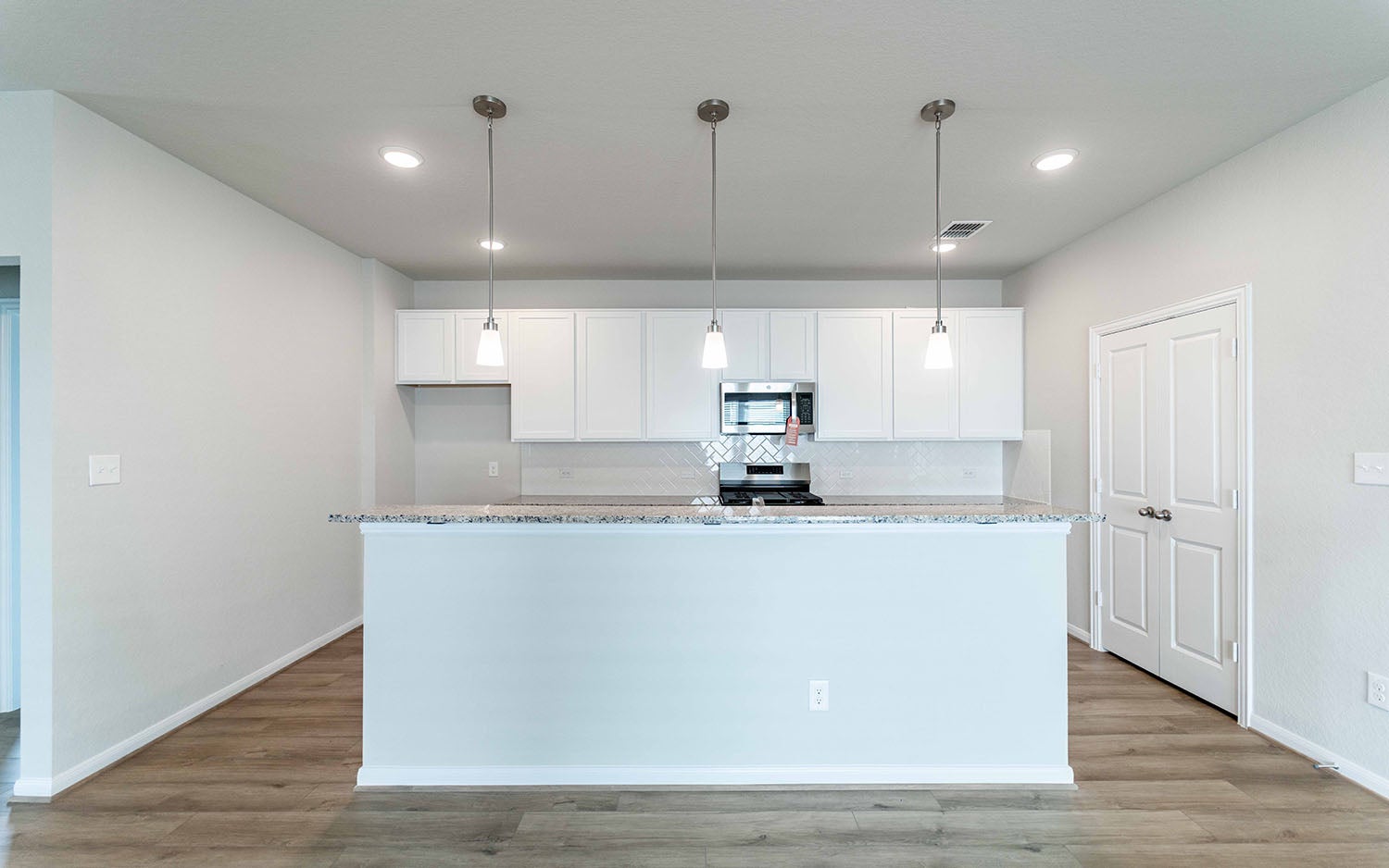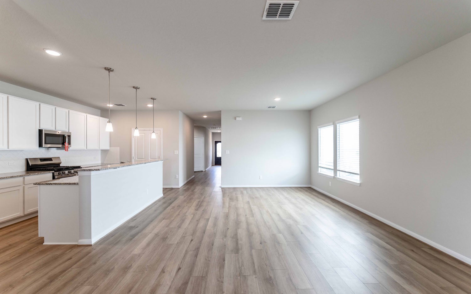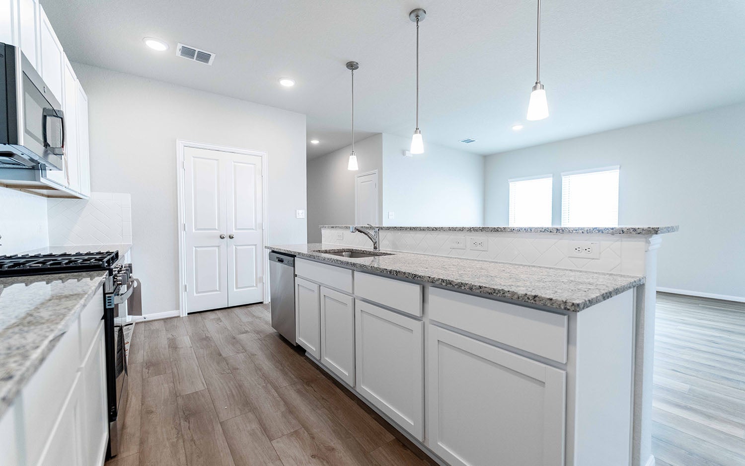 The exciting Pedernales floor plan boasts a four bedroom, two bathroom single-story home. Upon entering this outstanding home, you are met with a foyer area with access to your fourth bedroom at the front of the home. In need of a secluded work from home space or an area for the kids to do their homework? Transform the fourth bedroom in to a study room for your convenience. A little further down the hall and you will discover your third bedroom with the full secondary bathroom residing between the two bedrooms. You will also find access to your garage. If you are needing ample storage space, you are in luck! A two-and-a-half-car garage comes standard in this floor plan. Around the corner from the garage is your sizable walk-in utility room, as well as your second bedroom. At the heart of your home is the uniquely-designed combined family room and dining area that your friends and family are sure to enjoy. Never miss out on any conversations with guests, since the open-concept kitchen area opens up to the combined family room and dining area, making hosting guests for the holiday a breeze. Your kitchen comes fully equipped with ample counterspace featuring granite countertops with a ceramic tile backsplash, a kitchen island with the option to raise the bar for additional seating underneath, industry-leading appliances, and an oversized, walk-in pantry. You will love entertaining guests in this home! The door from your family room leads to your optional covered patio - perfect for relaxing outdoors or grilling out for your friends and family. Retreat to your master suite where you can relax in your master bathroom. The master bathroom is complete with a shower/tub enclosure, the option for dual vanities, as well as the option for two closets - one of them being a walk-in closet! If you want to enhance your master bathroom, opt to include a master luxury bath or a super shower featuring standard dual vanities instead. The opportunities in the Pedernales are limitless!