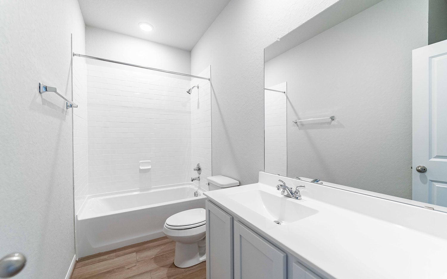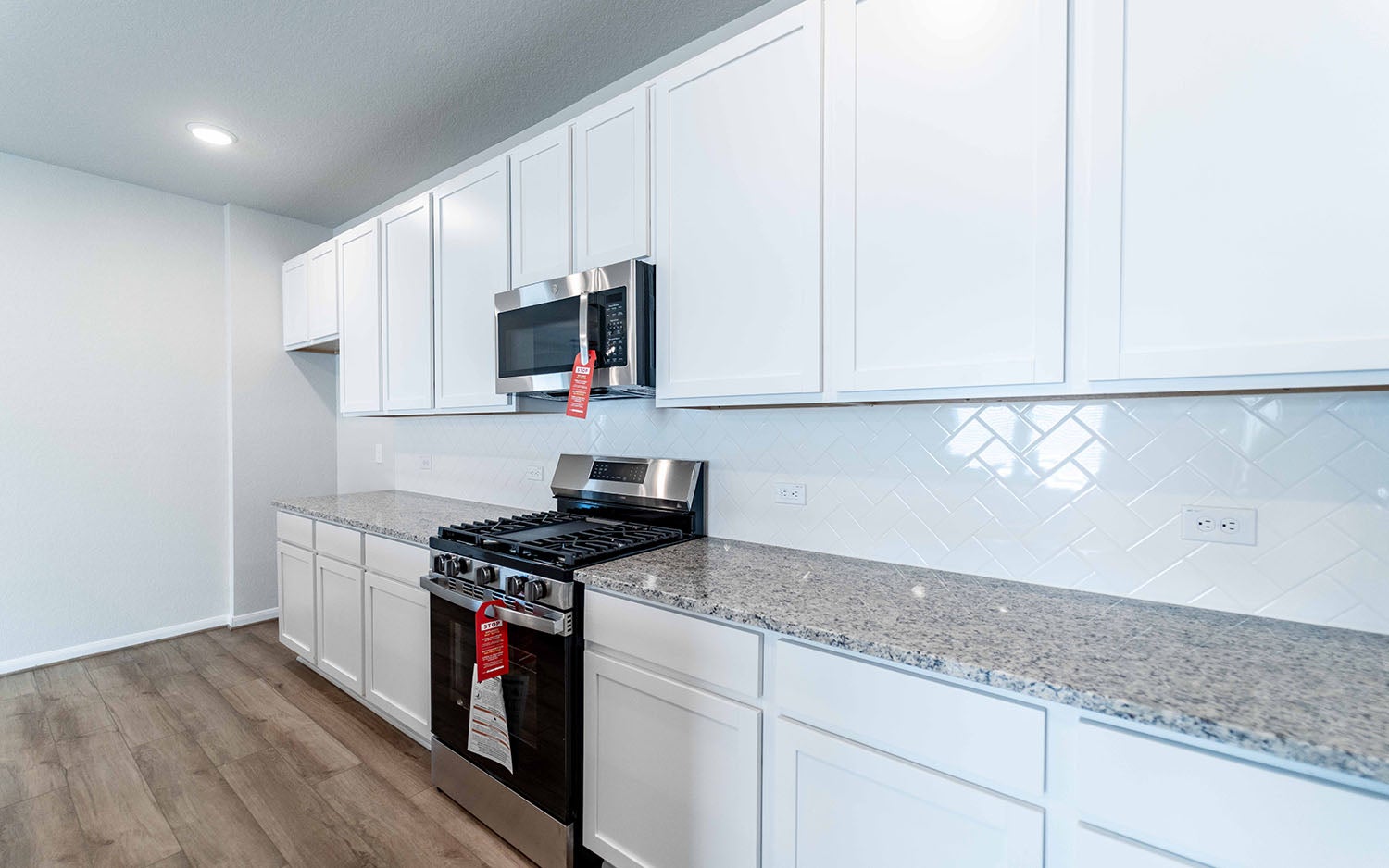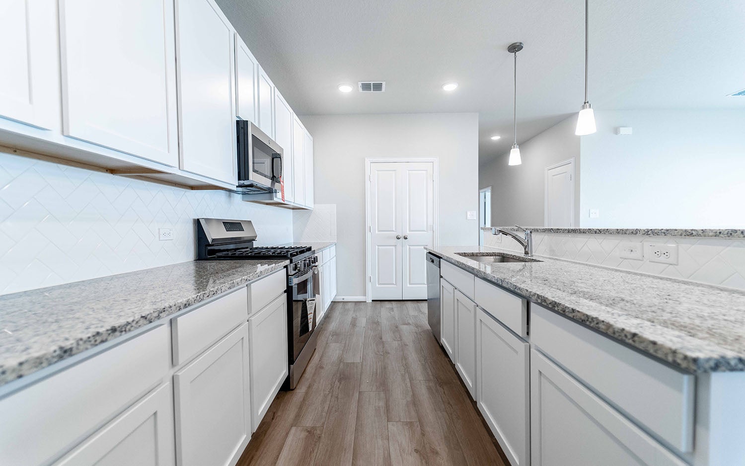 The exciting Pedernales floor plan boasts a four bedroom, two bathroom single-story home. Upon entering this outstanding home, you are met with a foyer area with access to your fourth bedroom at the front of the home. In need of a secluded work from home space or an area for the kids to do their homework? Transform the fourth bedroom in to a study room for your convenience. A little further down the hall and you will discover your third bedroom with the full secondary bathroom residing between the two bedrooms. You will also find access to your garage. If you are needing ample storage space, you are in luck! A two-and-a-half-car garage comes standard in this floor plan. Around the corner from the garage is your sizable walk-in utility room, as well as your second bedroom. At the heart of your home is the uniquely-designed combined family room and dining area that your friends and family are sure to enjoy. Never miss out on any conversations with guests, since the open-concept kitchen area opens up to the combined family room and dining area, making hosting guests for the holiday a breeze. Your kitchen comes fully equipped with ample counterspace featuring granite countertops with a ceramic tile backsplash, a kitchen island with the option to raise the bar for additional seating underneath, industry-leading appliances, and an oversized, walk-in pantry. You will love entertaining guests in this home! The door from your family room leads to your optional covered patio - perfect for relaxing outdoors or grilling out for your friends and family. Retreat to your master suite where you can relax in your master bathroom. The master bathroom is complete with a shower/tub enclosure, the option for dual vanities, as well as the option for two closets - one of them being a walk-in closet! If you want to enhance your master bathroom, opt to include a master luxury bath or a super shower featuring standard dual vanities instead. The opportunities in the Pedernales are limitless!