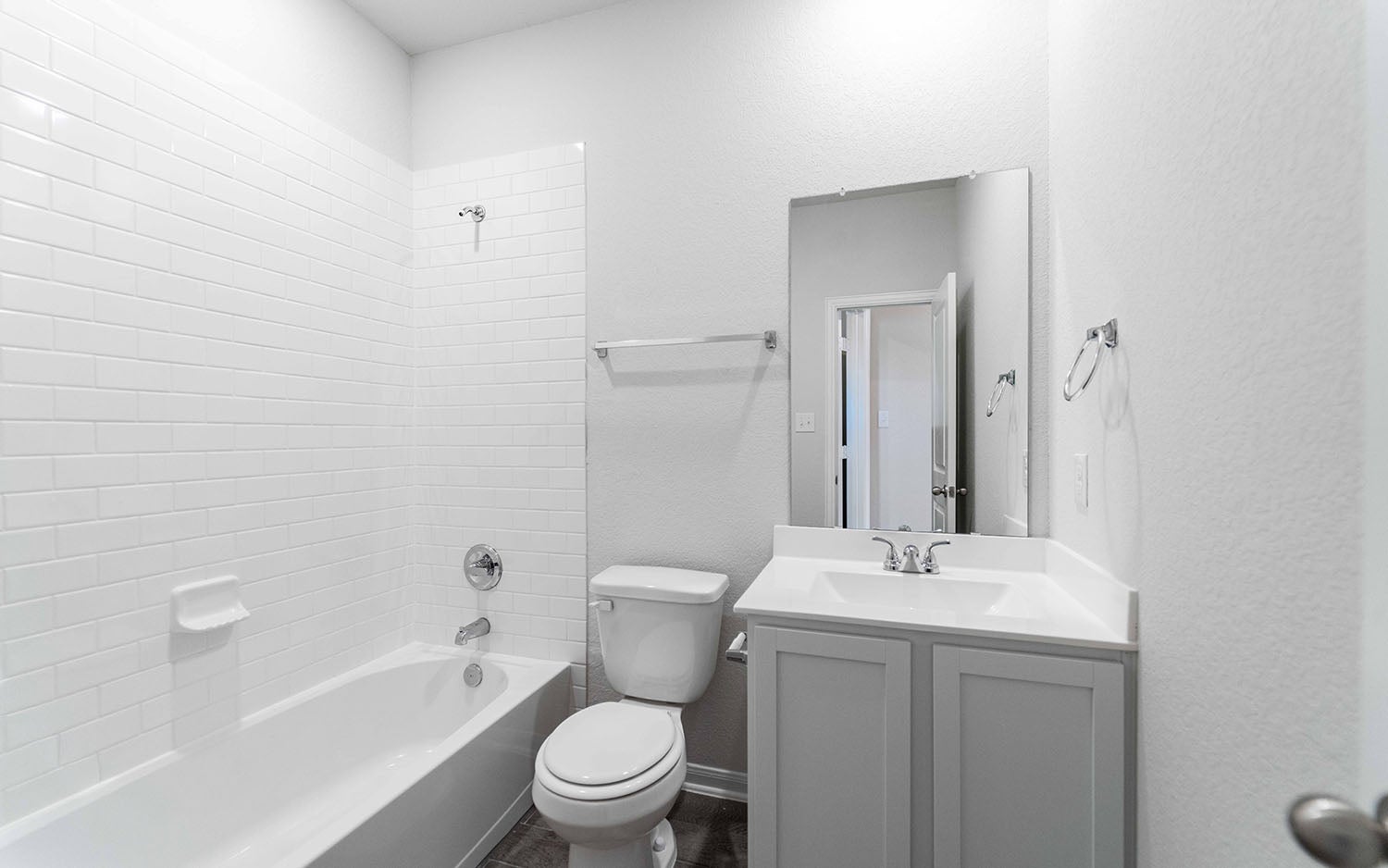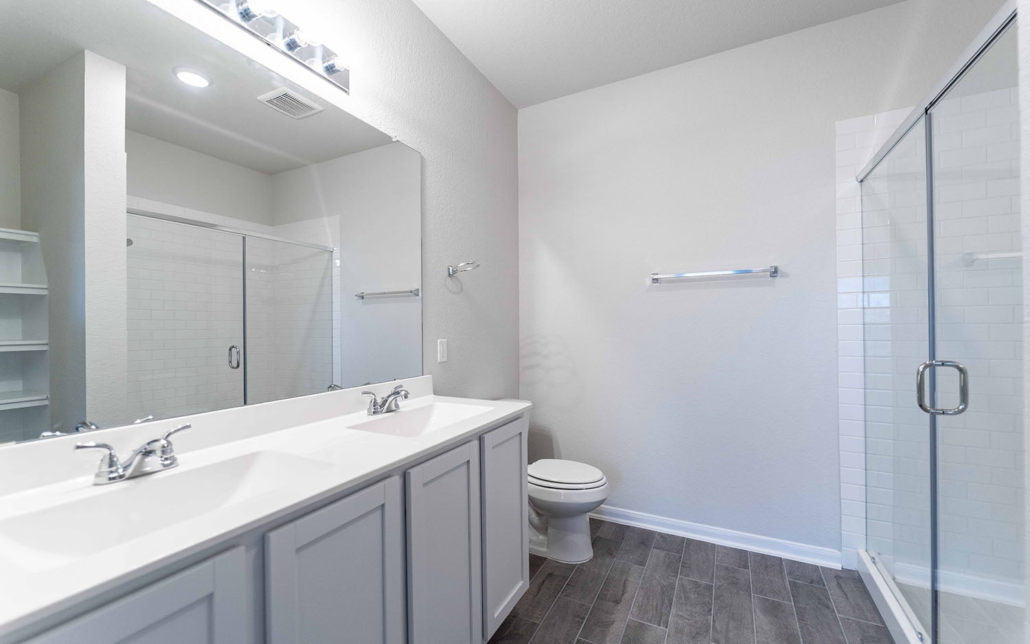 The Frio floor plan is as exciting for its features as it is for the tremendous value. A package of dynamite, this home boasts three bedrooms, two walk-in closets and two baths joined with a huge family room and a large kitchen/dining area. Upon entry of the home, you are met with access to your two-car garage. If you are needing the extra storage space, you are able to opt for an extra 1/2-car garage! You are then guided to the heart of the home - the sizable family room that faces the kitchen. This layout is ideal for hosting gatherings for all your friends and family. Opening up to the family room is your conveniently-designed kitchen and breakfast/dining room combination with entry to your walk-in utility room. The kitchen area is equipped with exclusive features like granite countertops, designer light fixtures, and flat-panel birch cabinets - these features alone are sure to please any crowd! Leading to your backyard from the breakfast/dining area, you can decide to include a covered patio if you like to get a breath of fresh air while being protected from the weather. The three large bedrooms are the perfect size for your family or guests when they come to visit. The second and third bedrooms are placed at the front of the home, with the third bedroom boasting a walk-in closet. The secondary bathroom lies conveniently between the two bedrooms. If you are looking to find the balance between work and play with a designated area to get things done, opt to transform the secondary bedroom into a study room! The option is yours. Lastly, the private master suite is secluded on the other end of the home and boasts a generously-sized master bathroom. The master bathroom is complete with cultured marble countertops with the option for dual vanities, a shower/bathtub enclosure, and a massive walk-in closet for you to enjoy! Upgrade your master bath to a master luxury bathtub with shower or an oversized super shower instead. You will cherish living in your Frio home!