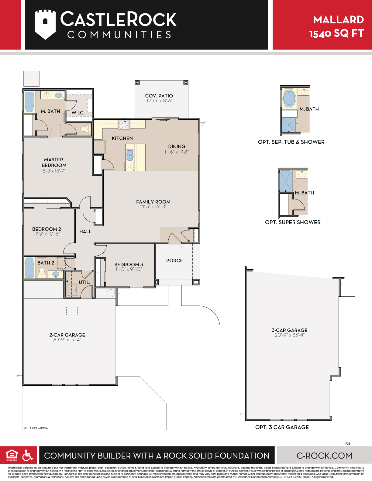 The functional Mallard floor plan invites you with its functional, open-concept layout. The family room welcomes you to the shared dining room and kitchen area, perfect for hosting guests in your home. You also have access to your covered patio through the dining area. Down the hall, you are met with the walk-in utility room and the 2-car garage. If you need additional space, you can opt for the 3-car garage instead! You then are met with the three bedrooms, and secondary bathroom. The master suite features an ensuite bath that allows the options for dual vanities, a separate tub and shower, or a super shower. The Mallard is the perfect floor plan is the ideal floor plan for those who value comfortability & openness.