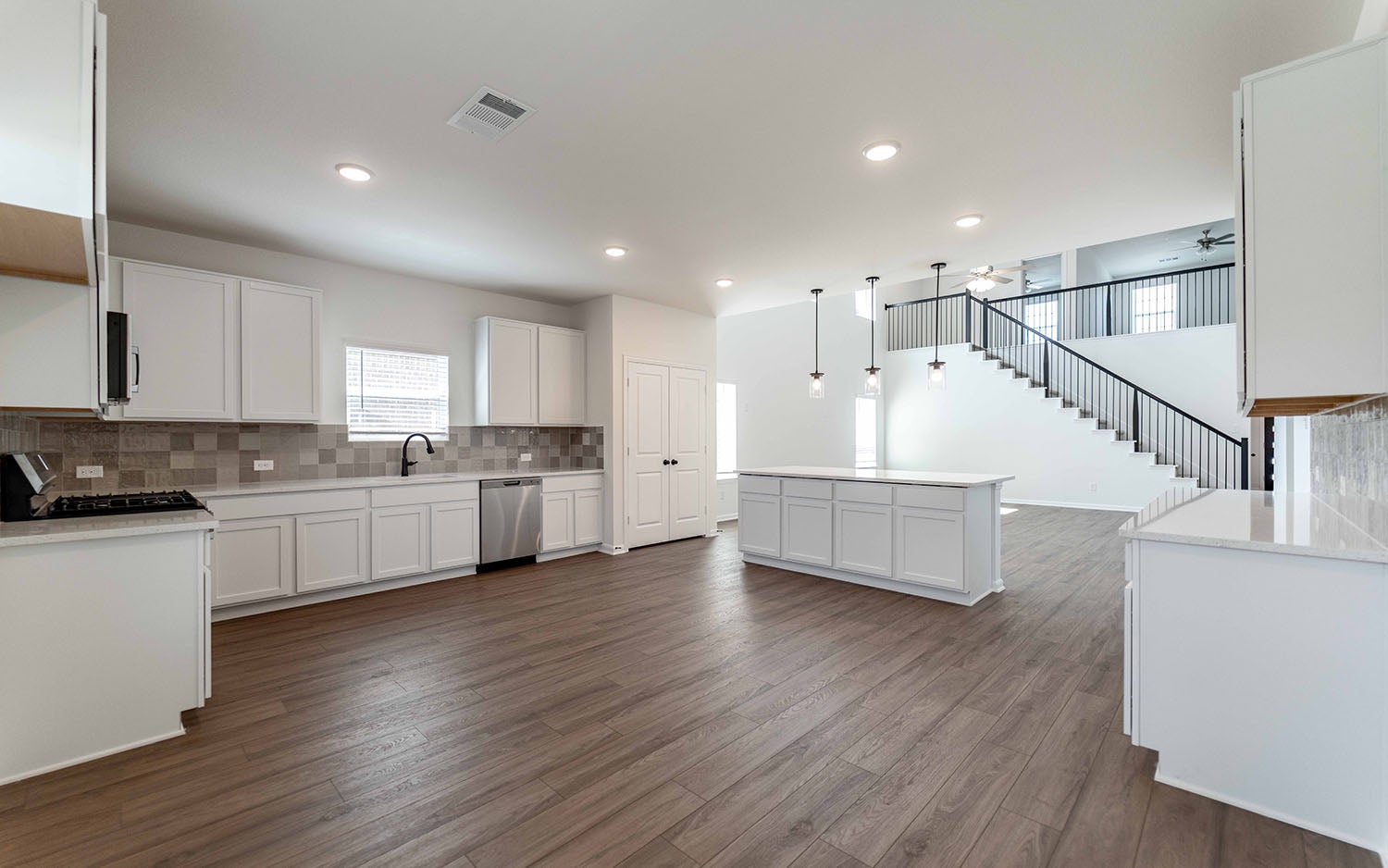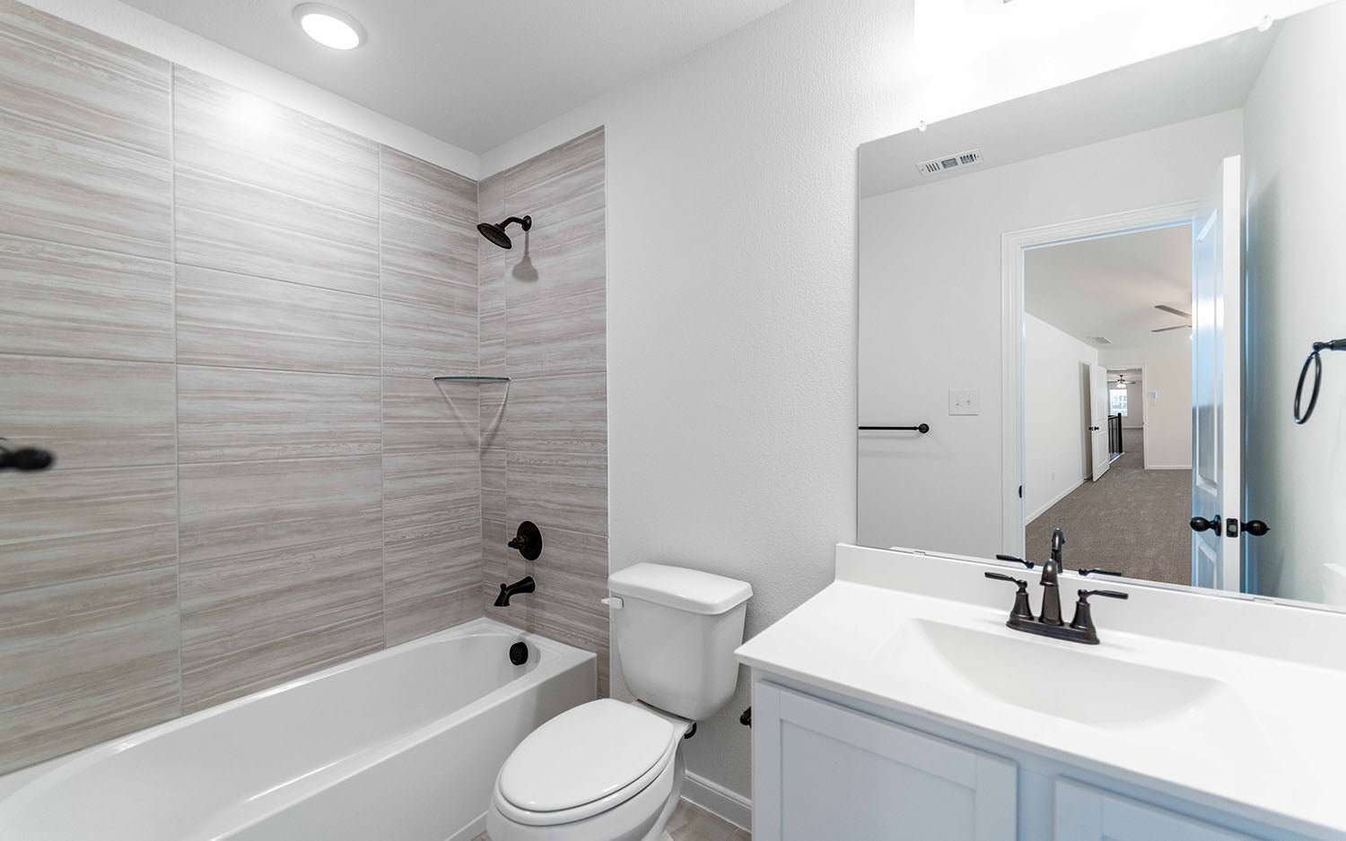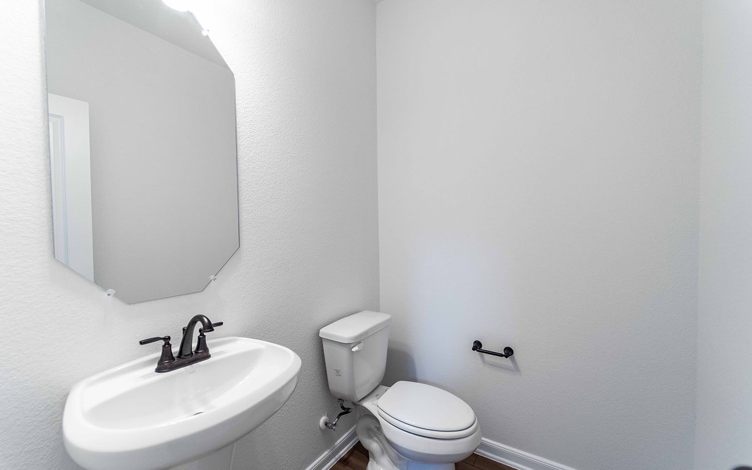 Every square foot is maximized with our Concho plan – the ideal home for the growing family. This 4-bedroom home offers space, flexibility and comfort. Entering your new home from your spacious porch, you are met with a foyer leading to your secluded study room. If you are looking for a little more living space, opt to transform the study room into your fifth bedroom! Travel further down the hall and you will discover the entry to your walk-in utility room and the convenient downstairs powder room. Need a little more room for your tools or holiday decorations? Luckily, the Concho plan bears an optional 2.5-car garage! Past the utility room, and you are led to the heart of the home - the open-concept, two-story family room adjoined by the oversized kitchen and breakfast area. The kitchen accommodates sleek granite countertops, flat-panel birch cabinets (with the option to add more), as well as a kitchen island! One of the most exclusive options this floor plan offers is the ability to add in an extended covered patio off the kitchen area. Talk about the perfect outdoor sanctuary! Finally, the first floor holds your private master suite with an elegant master bathroom. The master bathroom holds cultured marble countertops with the option of dual vanities, a shower/bathtub enclosure, and an expansive walk-in closet! If you are interested in taking the bathroom space to the next level you have the option to turn your bathtub into a super shower, or opt for a luxury tub with shower - both with standard dual vanities! Roam up the stairs to the second floor which is filled with three additional bedrooms, two full bathrooms and an oversized game room perfect for game nights with the family. In the Concho home, you will never have to sacrifice your space or comfort. There is something for the entire family to enjoy! With the copious amounts of included features and favorable options, you can bring your visions to life and will truly cherish your new CastleRock Concho home!