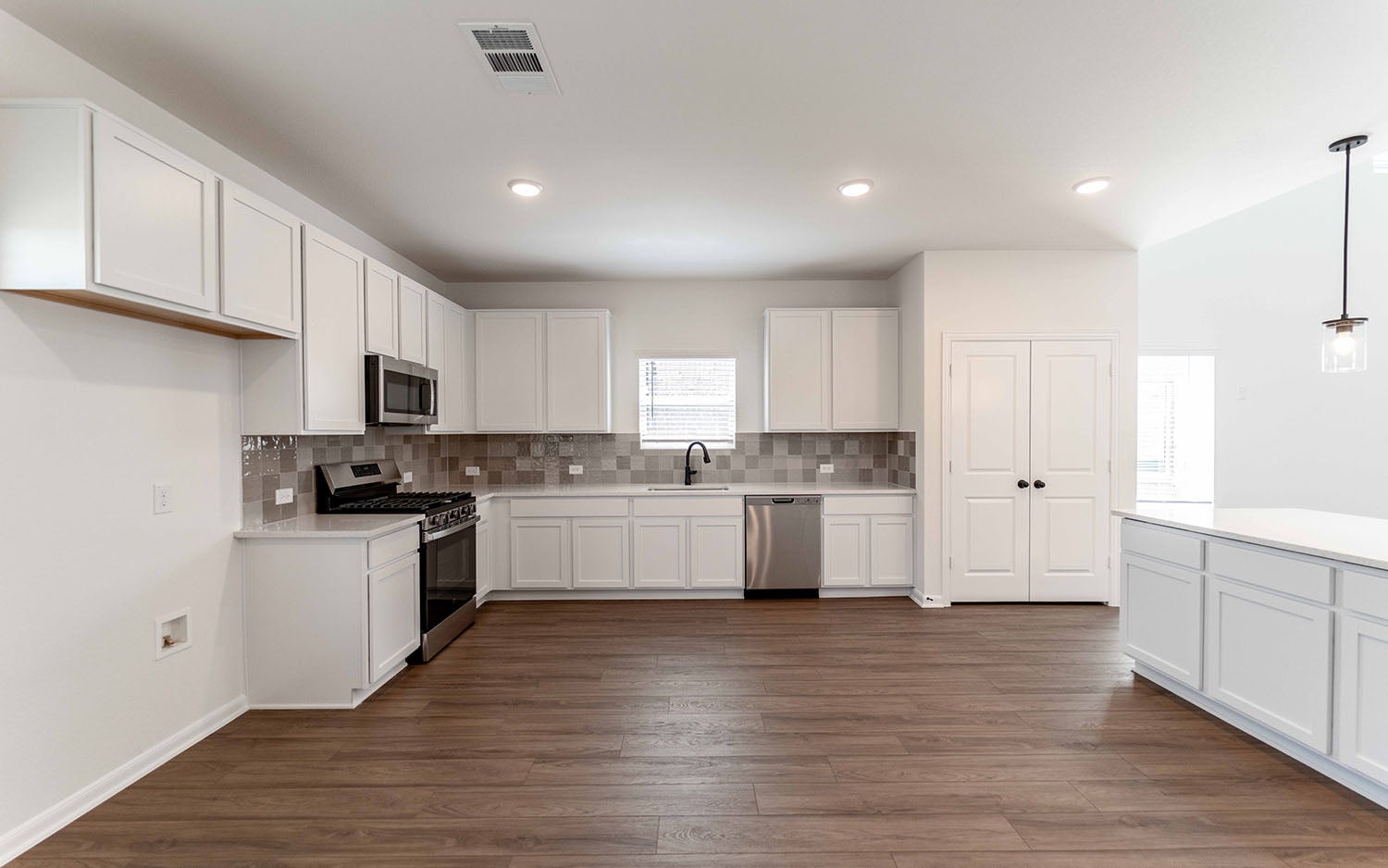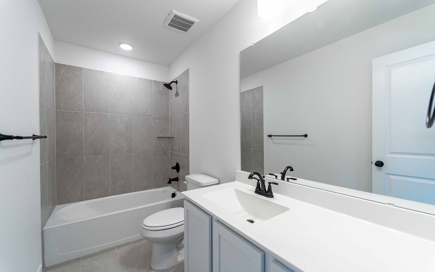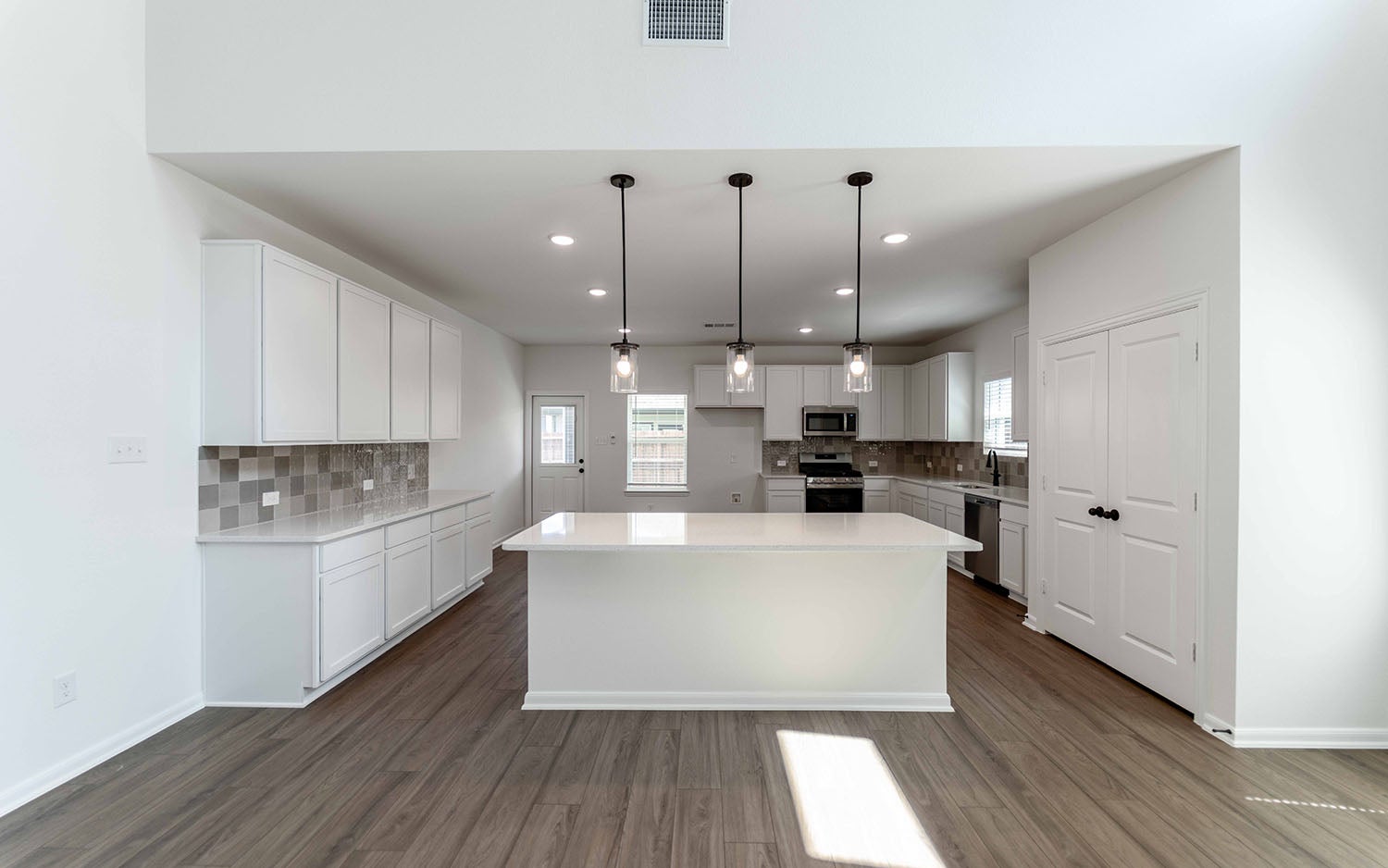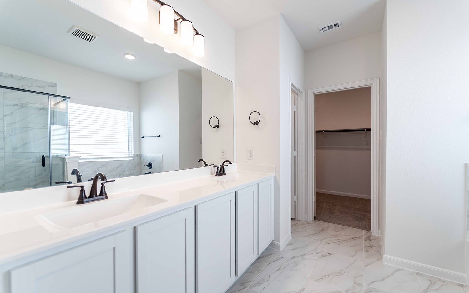 Every square foot is maximized with our Concho plan – the ideal home for the growing family. This 4-bedroom home offers space, flexibility and comfort. Entering your new home from your spacious porch, you are met with a foyer leading to your secluded study room. If you are looking for a little more living space, opt to transform the study room into your fifth bedroom! Travel further down the hall and you will discover the entry to your walk-in utility room and the convenient downstairs powder room. Need a little more room for your tools or holiday decorations? Luckily, the Concho plan bears an optional 2.5-car garage! Past the utility room, and you are led to the heart of the home - the open-concept, two-story family room adjoined by the oversized kitchen and breakfast area. The kitchen accommodates sleek granite countertops, flat-panel birch cabinets (with the option to add more), as well as a kitchen island! One of the most exclusive options this floor plan offers is the ability to add in an extended covered patio off the kitchen area. Talk about the perfect outdoor sanctuary! Finally, the first floor holds your private master suite with an elegant master bathroom. The master bathroom holds cultured marble countertops with the option of dual vanities, a shower/bathtub enclosure, and an expansive walk-in closet! If you are interested in taking the bathroom space to the next level you have the option to turn your bathtub into a super shower, or opt for a luxury tub with shower - both with standard dual vanities! Roam up the stairs to the second floor which is filled with three additional bedrooms, two full bathrooms and an oversized game room perfect for game nights with the family. In the Concho home, you will never have to sacrifice your space or comfort. There is something for the entire family to enjoy! With the copious amounts of included features and favorable options, you can bring your visions to life and will truly cherish your new CastleRock Concho home!