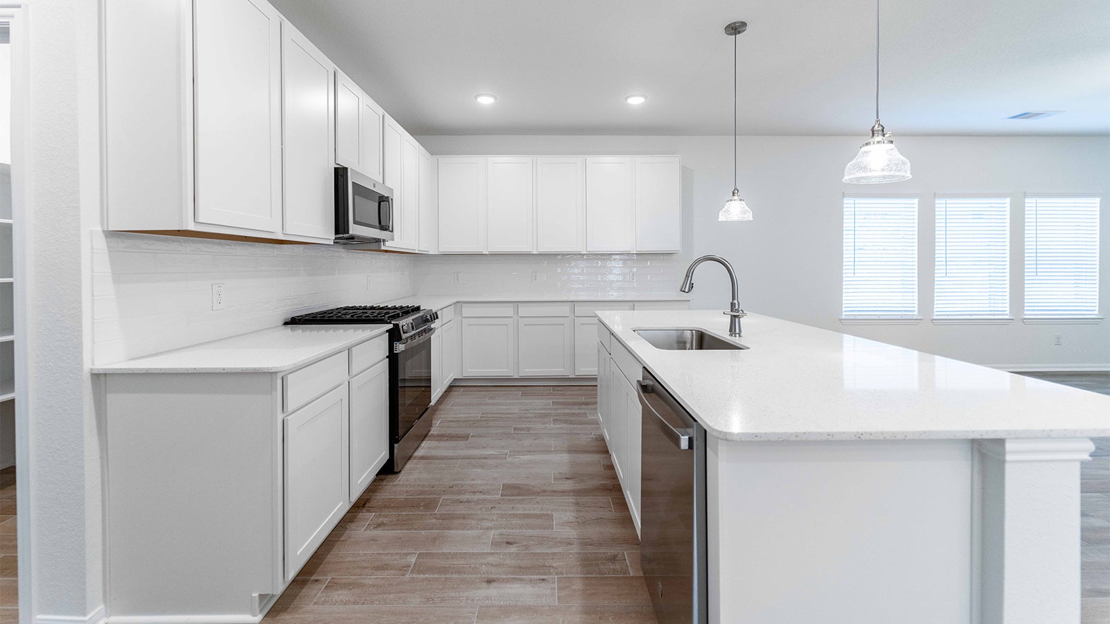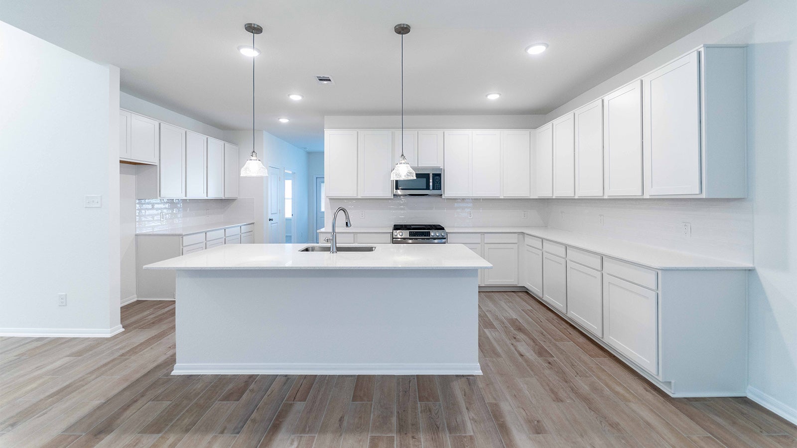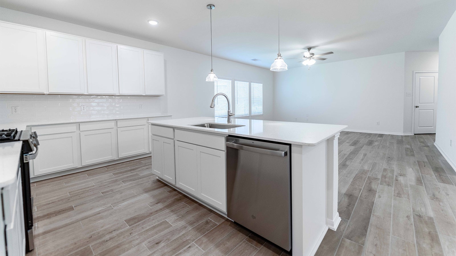 The gorgeous Sabine floor plan is a one-story home with an ideal layout that will suit most any lifestyle. Entering this lovely home, you are met with the second and third bedrooms, each boasting convenient walk-in closets, as well as entry to the full secondary bath residing right beside the third bedroom. Also at the front of the home is entrance to your two-car garage. If you are needing more space to store tools or holiday decorations, opt to include an extra five feet, making it a two-and-a half car garage. Down the hall lies the massive family room, formal dining room, and the huge kitchen - this entire living area is perfect for hosting dinner parties and family gatherings of any size! Your kitchen is equipped with ample counterspace featuring granite countertops, convenient kitchen island for more counterspace, industry-leading appliances, as well as an oversized pantry with your walk-in utility room just around the corner. Facing the utility room is your secluded home office - a private nook for the kids to finish their homework. If you love relaxing outdoors or grilling out for family and friends, you will love having an optional covered patio to experience those activities. Privacy is no worry when it comes to the master bedroom and bathroom at the back of the home. Your master bathroom includes cultured marble countertops with the option of dual vanities, a shower/bathtub enclosure, as well as a large walk-in closet! Elevate your master bathroom style and functionality by replacing the standard shower/bathtub enclosure with a luxury bath or super shower instead! The Sabine gives you plenty of unique opportunities to be able to personalize your home how you have always imagined. In the Sabine plan, you will appreciate the convenient, open-concept layout that gives you the perfect amount of space, no matter what stage of life you are going through. If you are looking for an accommodating, flexible floor plan for your family, then the Sabine is for you!