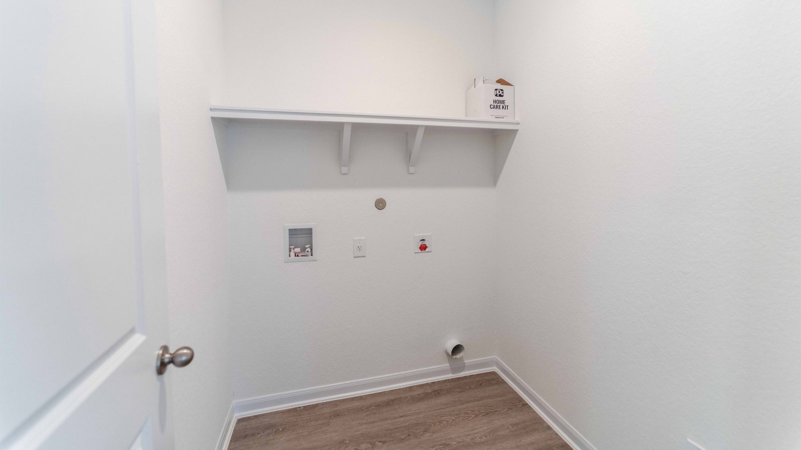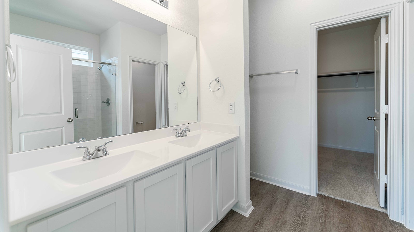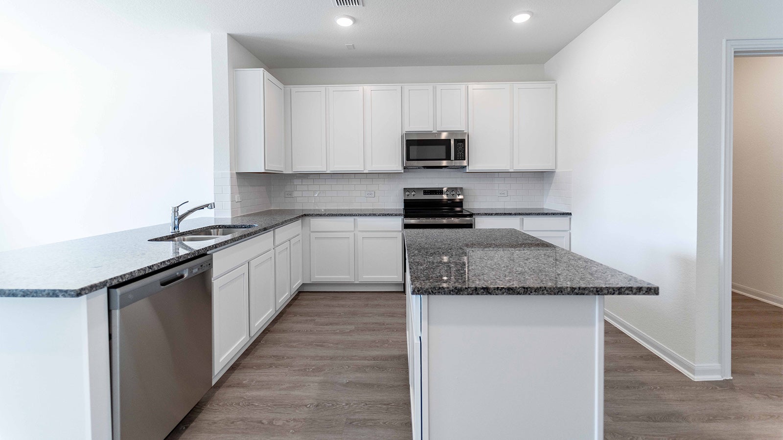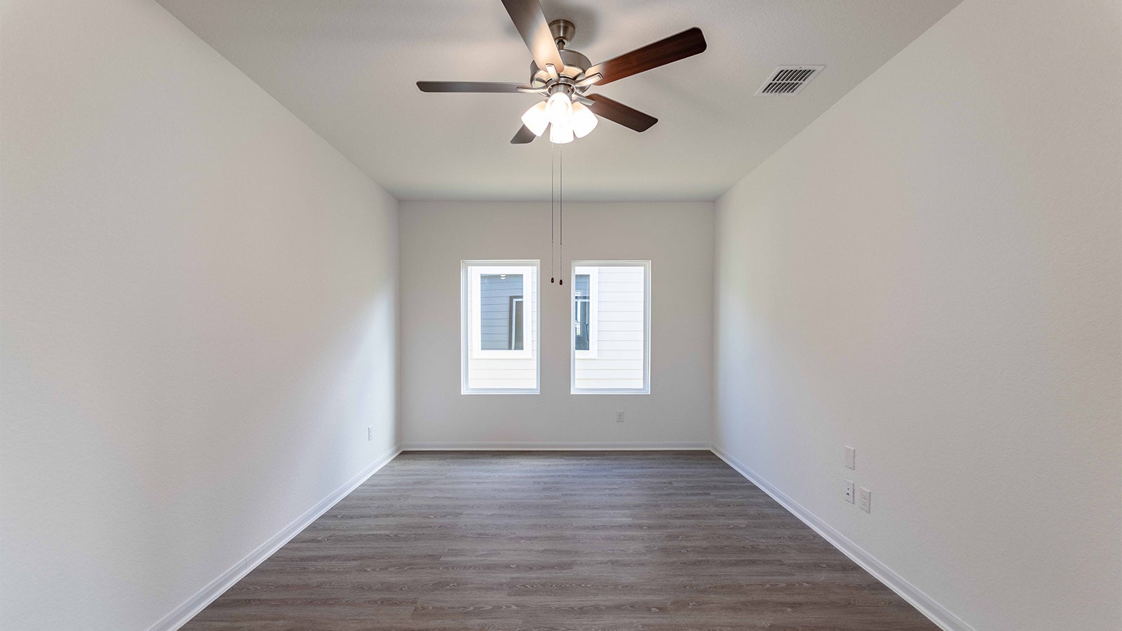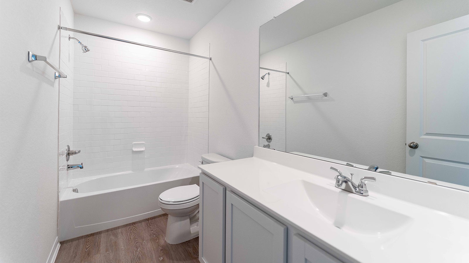 The delightful Ash floor plan is a sprawling, two-story design that is full of character. The exterior of the home is just as beautiful as the interior since the home will have a two-tone paint selection, and an exclusive landscaping package including shrubs, a caliper oak tree, and a yard that is fully sodded. Entering from your front porch, you are greeted by an elegant foyer with vinyl plank flooring that your two-car garage lies beside. Across the foyer is your convenient powder bathroom featuring a white pedestal sink and decorative mirror that flows right into your open-concept family room. The massive family room is perfect for entertaining guests and is boasting with ample amount of space. The smell of fresh cookies baking can be experienced from the family room, since the kitchen is opened up facing the living area. The expansive kitchen area is completed with granite countertops, beautiful flat-panel birch cabinets, designer light fixtures, and industry-leading appliances. You will love having the ability to install a kitchen island in the center of the kitchen, if you are needing more counter space. Speaking of more space, your oversized walk-in pantry will come in handy when you need to store all your food, spices, and dog treats. Integrating with your kitchen is your welcoming formal dining space with entry to your backyard in the corner of the room. Giving your backyard added value, you have the option of including a sizable covered patio! Adjacent to your formal dining room is the large Master Bedroom. Leading off the bedroom is your gorgeous master bathroom complete with cabinetry that matches your kitchen selections, cultured marble bath countertops, LED down lighting, and a super shower. Up the stairs, you will come across a large gameroom that is ideal for family game nights, as well as three additional bedrooms, and a secondary full bathroom. The Ash floor plan is sure to fit most any family lifestyle.