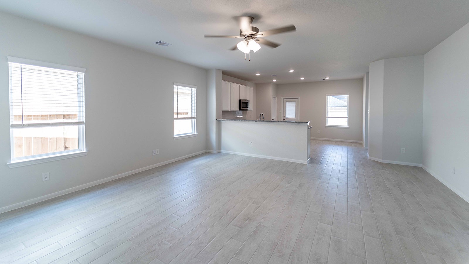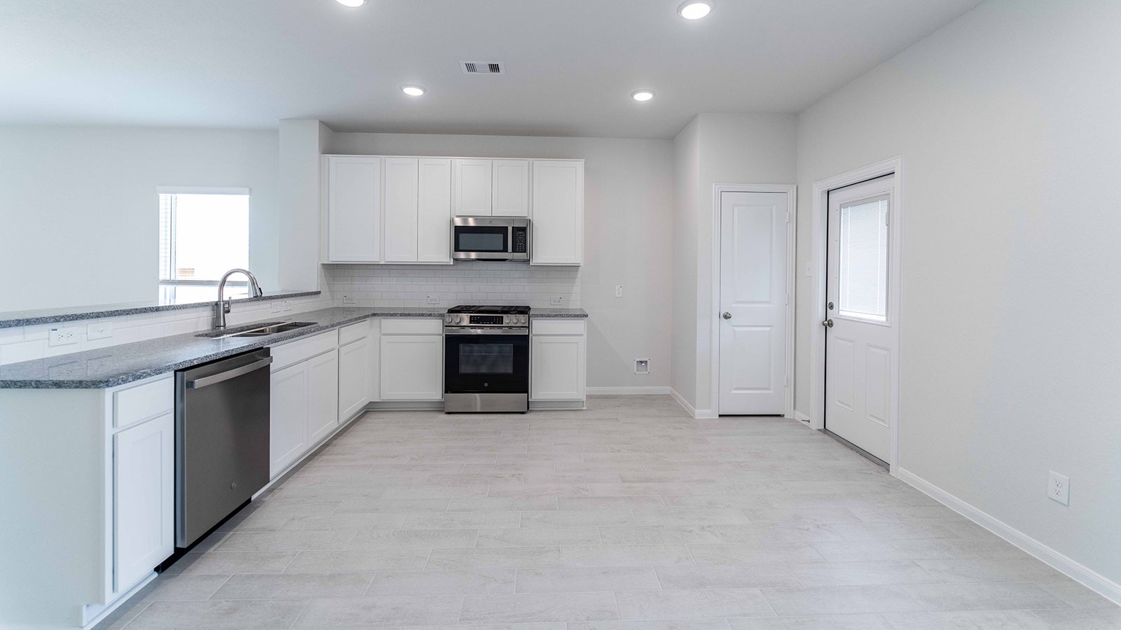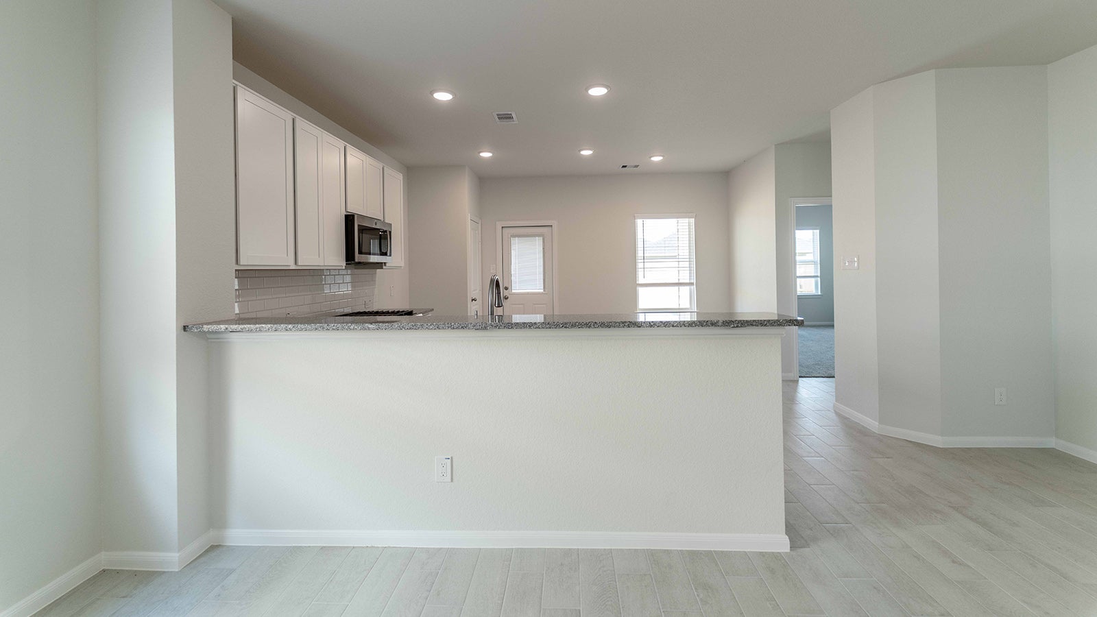 The Comal floor plan is a well-designed, three-bedroom and two-bathroom home that has a ton of character. The exterior of the home is a beautiful brick structure, with the option to swap the brick for stone. Upon entry, you are greeted by the combined flex space and family room. The flex space allows for either a fourth bedroom, a private study, a formal dining area, a quaint game room, or anything your heart desires. The spacious kitchen/breakfast area and massive family room are perfect for entertaining gatherings of any size! On the right side of the home, you are met with the walk-in utility room with access to your two-car garage, along with the second and third bedrooms. Residing in the middle of the two bedrooms is the full secondary bathroom complete with a shower/bathtub enclosure, single vanity, and a linen closet. Facing the large family room is the extensive kitchen and breakfast area boasting sleek granite countertops, flat-panel birch cabinets, industry-leading appliances, and an undermount stainless steel sink with a ceramic tile backsplash. Do you wish to be able to relax in your backyard while being protected from the weather? Opt to include an exclusive covered patio! Next to the breakfast/kitchen combination area are two more linen closets, and the entry to your Master bedroom and bathroom with a huge walk-in closet. Retreat to your master bathroom that includes the option of double vanities, a shower/bathtub enclosure, and an additional linen closet. If you want to add an extra flair to your master bathroom, decide to switch out the shower/bathtub enclosure for a luxury bathtub or a master super shower - both including double vanities. The Comal floor plan has just the right amount of space for your whole family to feel comfortable. The abundant opportunities that you are able to accomplish to enhance your home, as well as the flowing, open-concept layout are just a few reasons why you will love living in your new CastleRock Comal home!