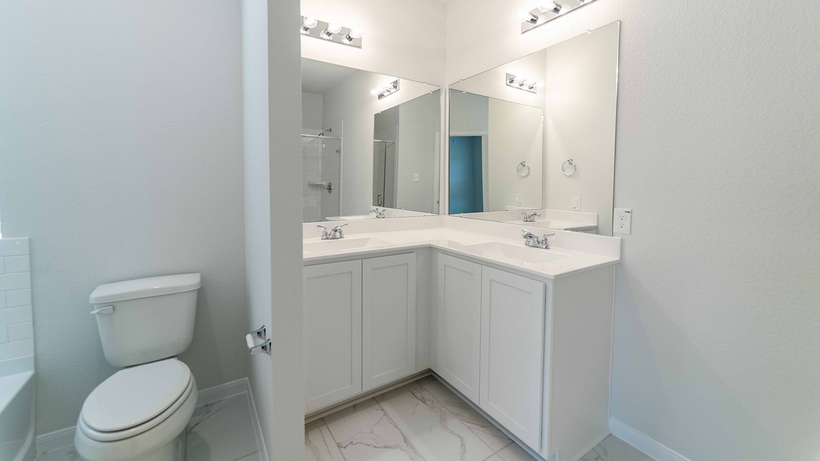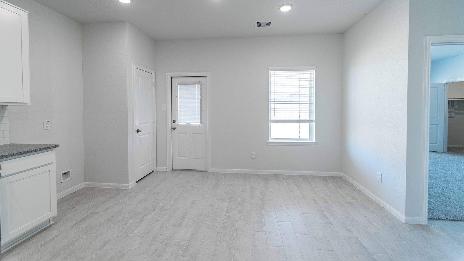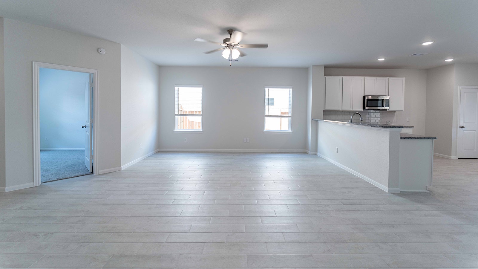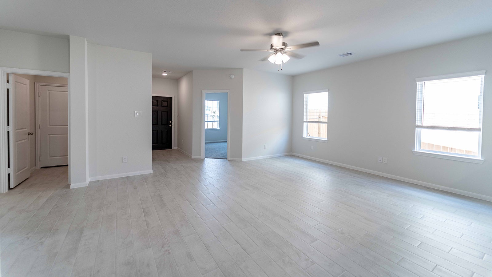 The Comal floor plan is a well-designed, three-bedroom and two-bathroom home that has a ton of character. The exterior of the home is a beautiful brick structure, with the option to swap the brick for stone. Upon entry, you are greeted by the combined flex space and family room. The flex space allows for either a fourth bedroom, a private study, a formal dining area, a quaint game room, or anything your heart desires. The spacious kitchen/breakfast area and massive family room are perfect for entertaining gatherings of any size! On the right side of the home, you are met with the walk-in utility room with access to your two-car garage, along with the second and third bedrooms. Residing in the middle of the two bedrooms is the full secondary bathroom complete with a shower/bathtub enclosure, single vanity, and a linen closet. Facing the large family room is the extensive kitchen and breakfast area boasting sleek granite countertops, flat-panel birch cabinets, industry-leading appliances, and an undermount stainless steel sink with a ceramic tile backsplash. Do you wish to be able to relax in your backyard while being protected from the weather? Opt to include an exclusive covered patio! Next to the breakfast/kitchen combination area are two more linen closets, and the entry to your Master bedroom and bathroom with a huge walk-in closet. Retreat to your master bathroom that includes the option of double vanities, a shower/bathtub enclosure, and an additional linen closet. If you want to add an extra flair to your master bathroom, decide to switch out the shower/bathtub enclosure for a luxury bathtub or a master super shower - both including double vanities. The Comal floor plan has just the right amount of space for your whole family to feel comfortable. The abundant opportunities that you are able to accomplish to enhance your home, as well as the flowing, open-concept layout are just a few reasons why you will love living in your new CastleRock Comal home!