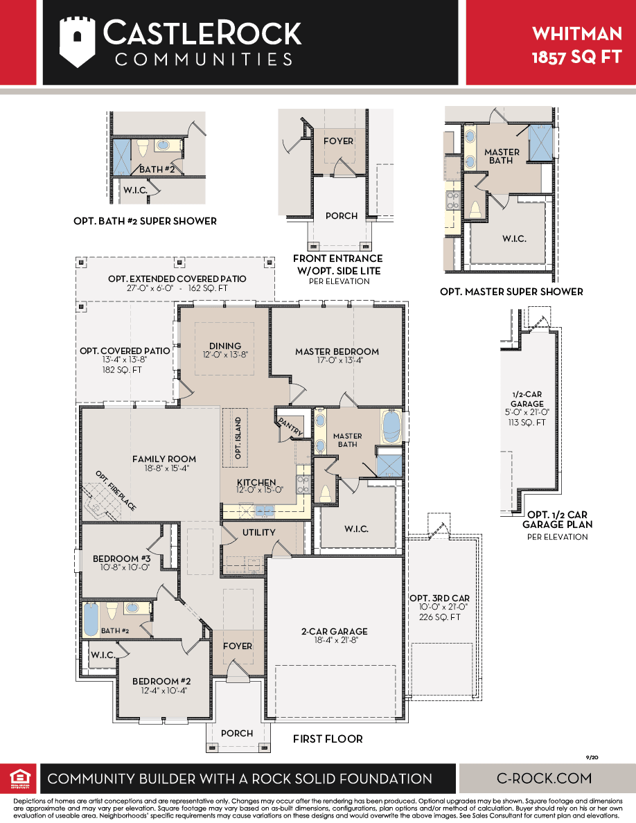 The marvelous Whitman floor plan is a uniquely-designed home filled with desirable options and included features that the whole family will enjoy. Entering this home, you are welcomed by a hallway leading to your second bedroom, the third bedroom with a walk-in closet, and a full secondary bathroom residing conveniently between the two bedrooms. Give your bathroom an upgrade by switching out your tub for a super shower. Down the hall is access to your huge walk-in utility room granting you access to your two-car garage. If you like more storage space to keep necessary tools, supplies, holiday decorations, or another vehicle, the Whitman plan offers you the opportunity to swap your two-car standard garage for a two-and-a-half or three-car garage instead. At the end of the hallway is your inviting family room, with the option to include a stylish fireplace, if you choose. Facing the family room is your spacious kitchen area with the combined dining area. The open-concept layout that the Whitman home showcases is perfect for hosting gatherings of any size for any occasion. Your guests will never miss out on the fun! Your kitchen area will catch all of your guests' eyes with its granite countertops, birch cabinets, an oversized pantry, and the option for a kitchen island if you are needing additional counterspace. Head out the door in your dining room to your large optional covered patio - the ideal space for those who love spending time outdoors with friends and family. Opposite to your dining room is your master suite with three windows letting optimal natural light shine through. Your master bathroom consists of cultured marble countertops with dual vanities, a bathtub with stand alone shower, and a massive walk-in closet. Elevate the look of your master bathroom by switching out your tub and shower for a super shower, if you prefer. The option is yours. There's something for everyone in this home. Personalize your Whitman home how you've always envisioned!