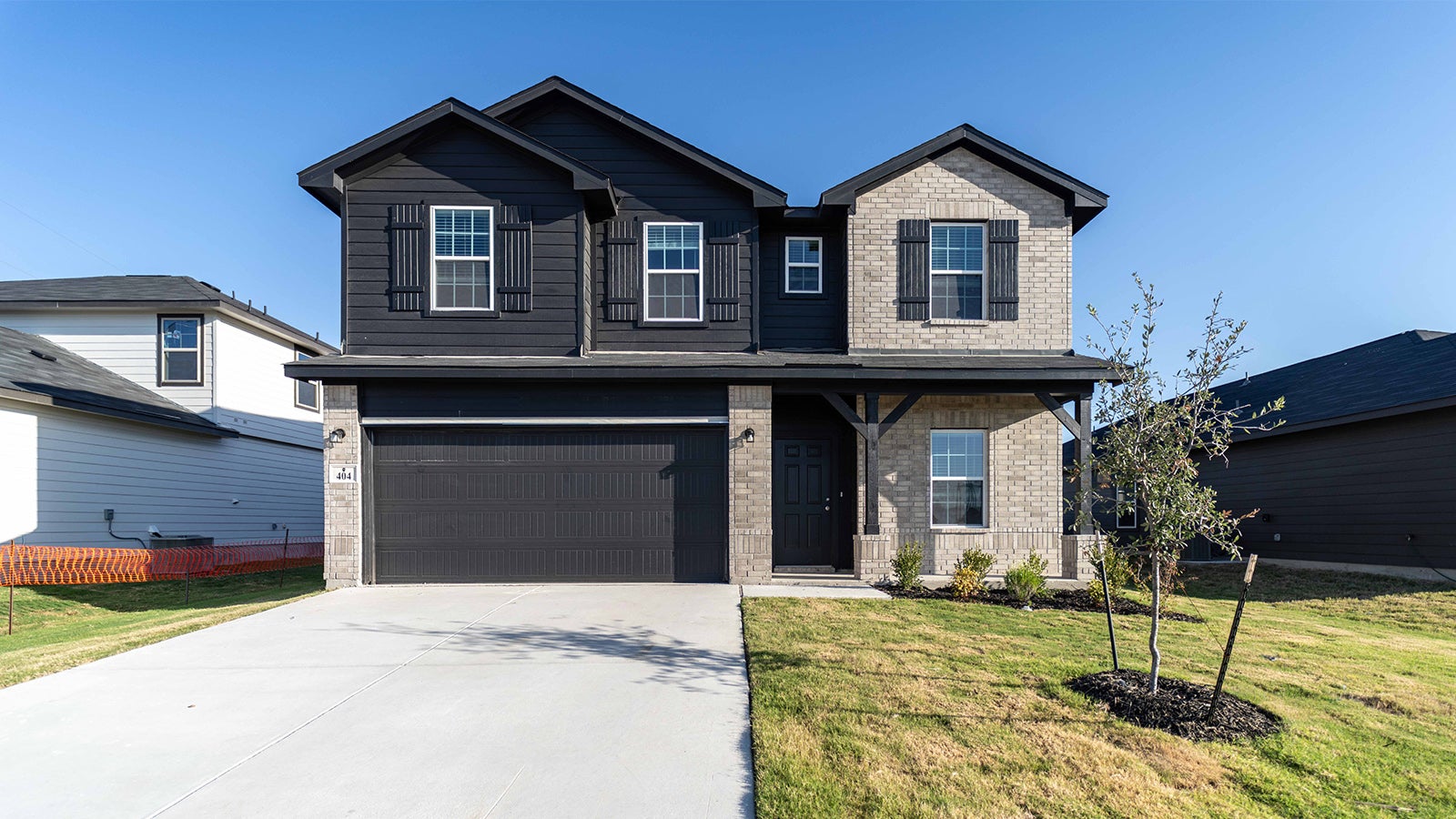 Every square foot is maximized with our Concho plan – the ideal home for the growing family. This 4-bedroom home offers space, flexibility and comfort. Entering your new home from your spacious porch, you are met with a foyer leading to your secluded study room. If you are looking for a little more living space, opt to transform the study room into your fifth bedroom! Travel further down the hall and you will discover the entry to your walk-in utility room and the convenient downstairs powder room. Need a little more room for your tools or holiday decorations? Luckily, the Concho plan bears a standard 2.5-car garage! Past the utility room, and you are led to the heart of the home - the open-concept, two-story family room adjoined by the oversized kitchen and breakfast area. The kitchen accommodates sleek granite countertops, flat-panel birch cabinets (with the option to add more), as well as a kitchen island! One of the most exclusive options this floor plan offers is the ability to add in an extended covered patio off the kitchen area. Talk about the perfect outdoor sanctuary! Finally, the first floor holds your private master suite with an elegant master bathroom. The master bathroom holds cultured marble countertops with the option of dual vanities, a shower/bathtub enclosure, and an expansive walk-in closet! If you are interested in taking the bathroom space to the next level you have the option to turn your bathtub into a super shower, or opt for a luxury tub with shower - both with standard dual vanities! Roam up the stairs to the second floor which is filled with three additional bedrooms, two full bathrooms and an oversized game room perfect for game nights with the family. In the Concho home, you will never have to sacrifice your space or comfort. There is something for the entire family to enjoy! With the copious amounts of included features and favorable options, you can bring your visions to life and will truly cherish your new CastleRock Concho home!