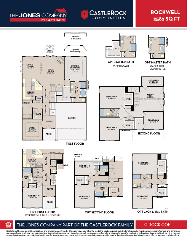 Style and functionality are not lacking in the Rockwell home. With its spacious 2,582 sq. ft. layout, this 4-bedroom, 2.5-bath residence is designed to cater to the needs of most any lifestyle. As you step inside, you'll be greeted by a convenient, secluded study providing the perfect space for those who work from home or need a dedicated space to study or read. At the heart of the home is a comfortable great room, casual dining room, and a well-appointed kitchen. The kitchen includes designer lighting, industry-leading appliances and ample cabinet space to store all your essentials. Completing the first floor is an impressive master suite. This retreat features a standard trey ceiling, with the option to extend it by 2 feet for added grandeur. The master suite also boasts a bay window, allowing natural light to flood in and create a serene atmosphere. The luxurious master bath offers the option to include a freestanding tub and a spacious 5'-0" shower for a spa-like experience. Moving upstairs, you'll find additional bedrooms and baths designed with comfort in mind. Each bedroom comes with a walk-in closet for generous storage space. The second floor also features linen storage throughout and an unfinished storage area for all your organizational needs. If you're looking for even more customization options, the Rockwell home has you covered. Add an optional walk-in closet to Bedroom #4 or include an extra bath on the second floor. Plus, there's an optional finished bonus room that can serve as a game room, craft room, or even an additional bedroom. With its thoughtful design and flexible layout, the Rockwell caters to your unique lifestyle, a home designed to exceed your expectations and elevate your lifestyle.