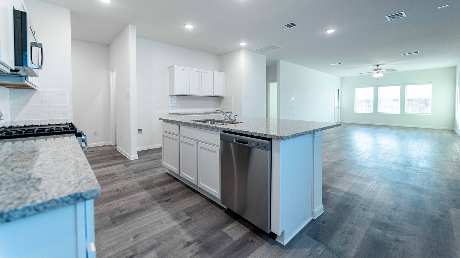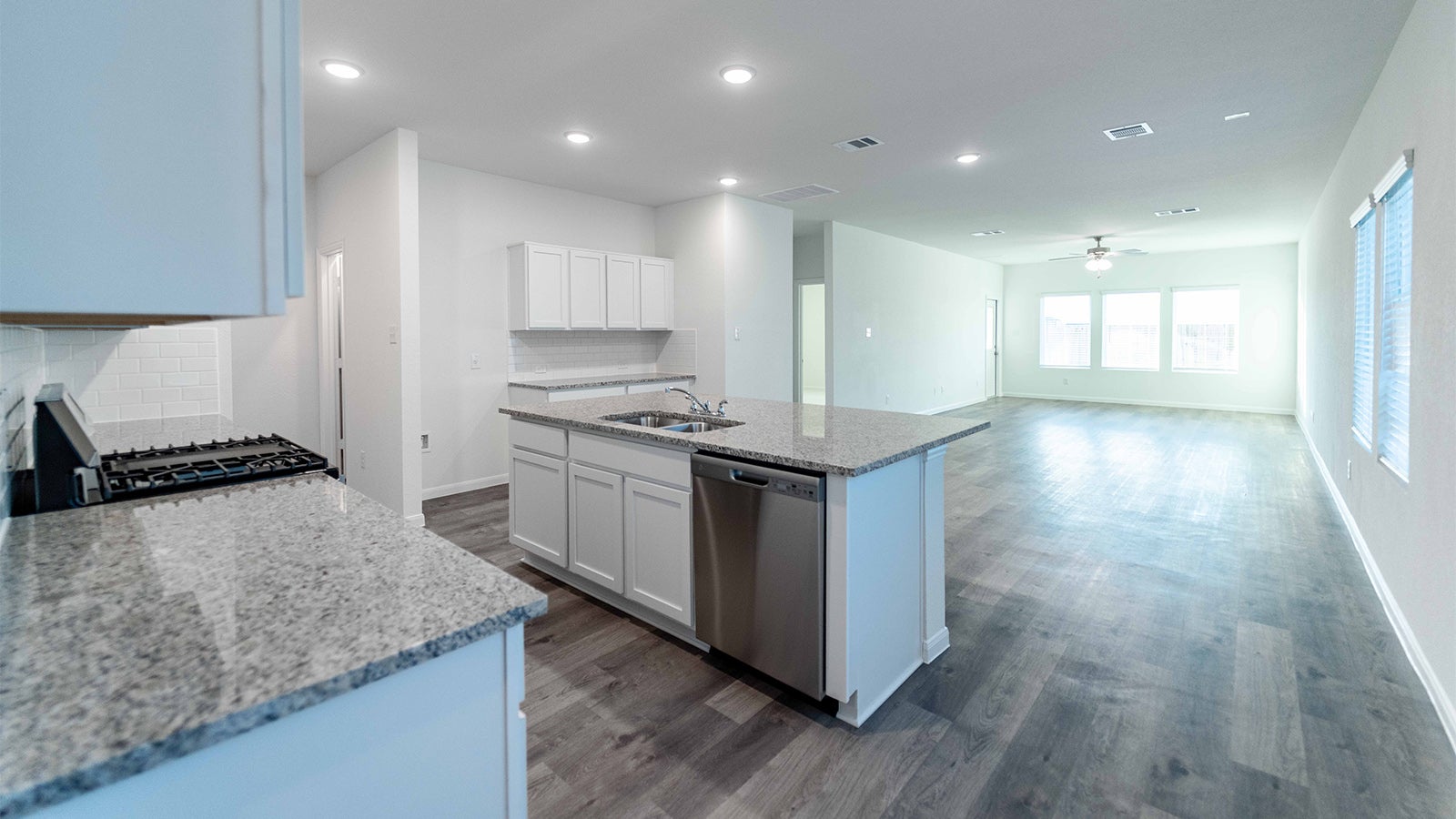 Boasting an open-concept layout consisting of four large bedrooms, and 2.5 bathrooms, the Hickory home is nothing short of practical! Entering the home, you are greeted by the foyer area and convenient downstairs powder room. You are then led to the central area of the home featuring the combined kitchen and dining area. The kitchen includes plenty of countertop space with an island, granite countertops, designer light fixtures, and industry-leading appliances. Facing the kitchen & dining area is the spacious family room with access to the backyard - if you'd love to enjoy a cup of coffee outside in the morning, opt to include a covered patio! Completing the first floor is the large master suite. The attached master bathroom includes a super shower, cultured marble countertops, as well as a huge walk-in closet. Upstairs resides the game room, perfect for the kids, three additional bedrooms with walk-in closets, and another full bathroom. With enough room to sprawl out, the Hickory plan is perfectly sized to accommodate most any sized family!
