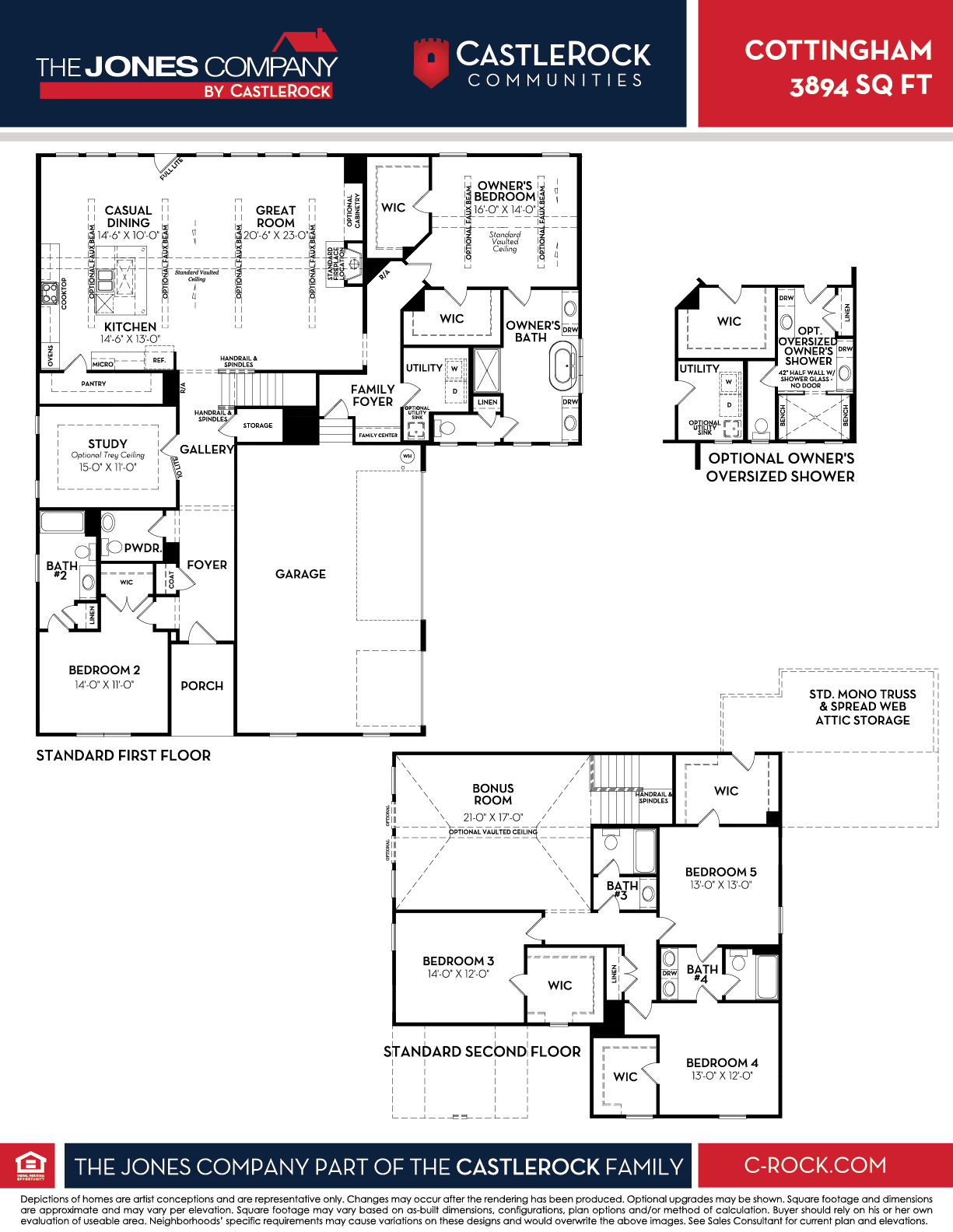 The Cottingham floor plan is a charming sanctuary that your family is sure to love! Upon entering, you'll be captivated by the spaciousness and sophistication of this stunning home. Enter through the welcoming foyer and be greeted by a convenient bedroom and bathroom, as well as the powder room and secluded study. Through the gallery, you are met with a gorgeous great room, a versatile space with vaulted ceilings, a beautiful fireplace, and abundant natural light for your enjoyment. Open to the great room is the spacious kitchen and casual dining area that seamlessly blend to create a space that's as functional as it is beautiful. With sleek countertops, industry-leading appliances, and ample storage space, the kitchen is a chef's dream come true. At the end of the day, retreat to your master suite that includes standard vaulted ceilings, separate dual vanities, a freestanding tub, and two walk-in closets! Upstairs, a spacious bonus room offers additional living space. The upstairs is also accompanied by three additional bedrooms, all with sizable walk-in closets, and two more bathrooms. Rest assured, you’ll enjoy every minute of living in the Cottingham home, where every detail is designed with your utmost comfort and enjoyment in mind.