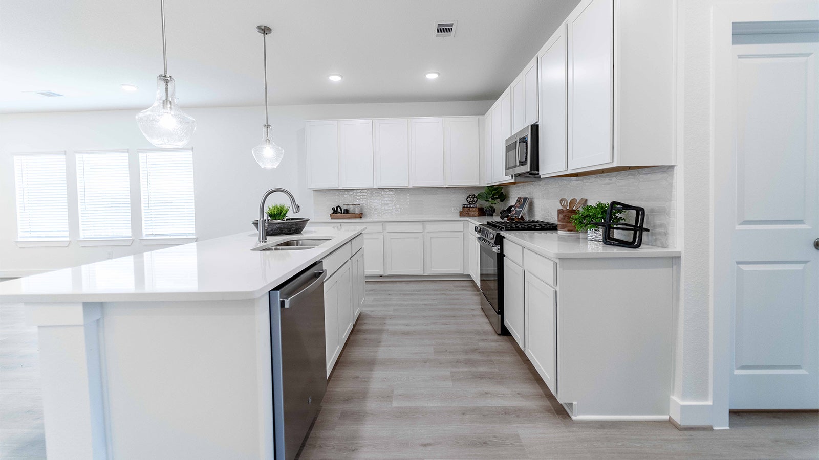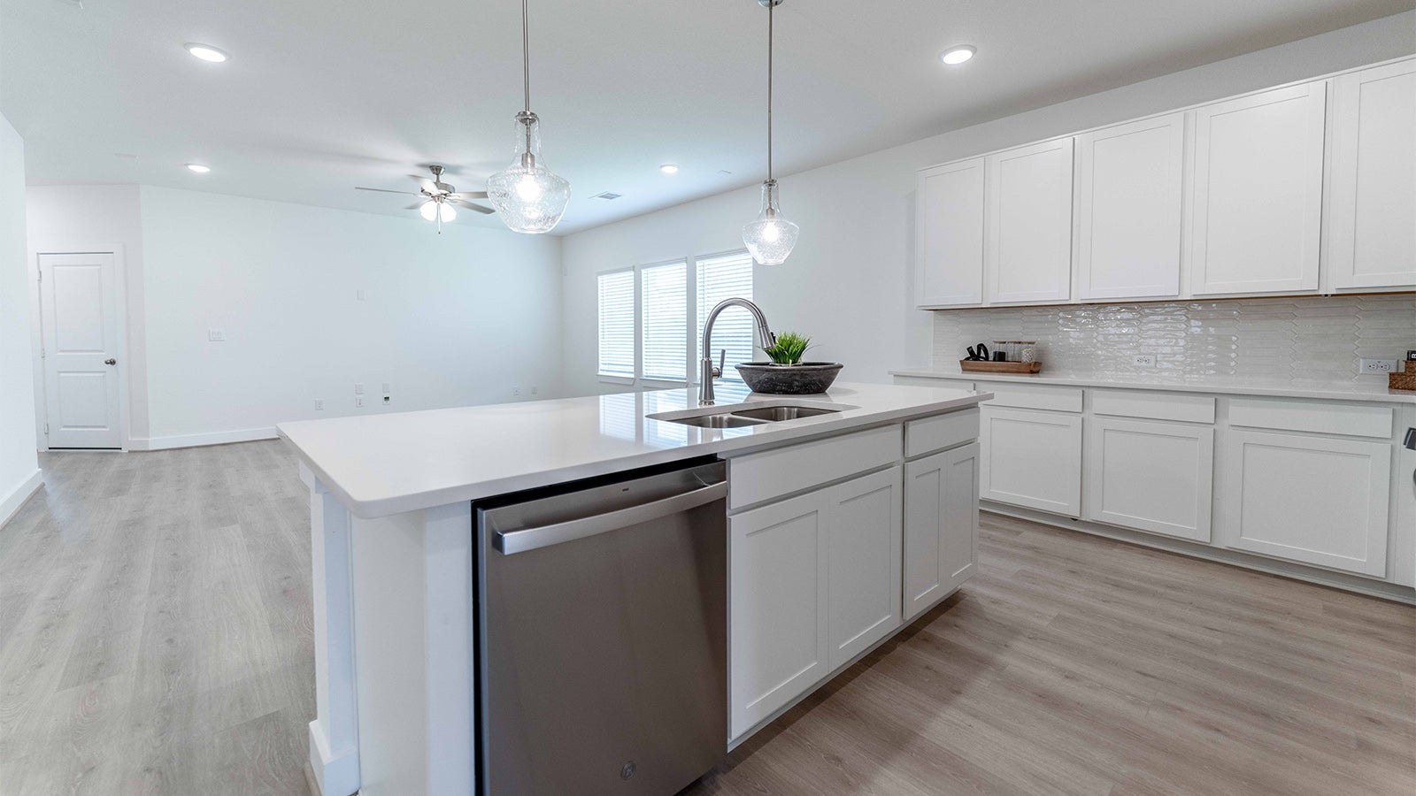 The gorgeous Sabine floor plan is a one-story home with an ideal layout that will suit most any lifestyle. Entering this lovely home, you are met with the second and third bedrooms, each boasting convenient walk-in closets, as well as entry to the full secondary bath residing right beside the third bedroom. Also at the front of the home is entrance to your two-car garage. If you are needing more space to store tools or holiday decorations, opt to include an extra five feet, making it a two-and-a half car garage. Down the hall lies the massive family room, formal dining room, and the huge kitchen - this entire living area is perfect for hosting dinner parties and family gatherings of any size! Your kitchen is equipped with ample counterspace featuring granite countertops, convenient kitchen island for more counterspace, industry-leading appliances, as well as an oversized pantry with your walk-in utility room just around the corner. Facing the utility room is your secluded home office - a private nook for the kids to finish their homework. If you love relaxing outdoors or grilling out for family and friends, you will love having an optional covered patio to experience those activities. Privacy is no worry when it comes to the master bedroom and bathroom at the back of the home. Your master bathroom includes cultured marble countertops with the option of dual vanities, a shower/bathtub enclosure, as well as a large walk-in closet! Elevate your master bathroom style and functionality by replacing the standard shower/bathtub enclosure with a luxury bath or super shower instead! The Sabine gives you plenty of unique opportunities to be able to personalize your home how you have always imagined. In the Sabine plan, you will appreciate the convenient, open-concept layout that gives you the perfect amount of space, no matter what stage of life you are going through. If you are looking for an accommodating, flexible floor plan for your family, then the Sabine is for you!