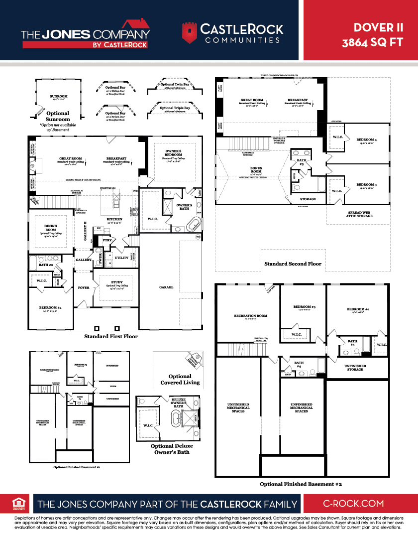 Welcome to the Dover II floor plan, where luxury and functionality meet to create the ultimate living experience. With four spacious bedrooms and three and a half bathrooms, this exquisite home offers ample space for families of all sizes to thrive. Step inside and you’ll be met with the study, providing a quiet space for productivity, as well as the formal dining room, perfect for enjoying meals with family and friends. At the heart of the home is the open-concept, two-story great room with standard vaulted ceilings, a cozy fireplace, and abundant natural light creating a welcoming atmosphere for gatherings. The gourmet kitchen boasts spacious countertops, industry-leading appliances, and a center island, making meal preparation even more enjoyable! Adjacent to the kitchen, the breakfast area, also with vaulted ceilings, provides the perfect spot to enjoy casual meals or morning coffee. Two bedrooms reside downstairs including the master suite. The master suite is complete with a spa-like ensuite bathroom and expansive walk-in closet, providing a serene sanctuary to unwind at the end of the day. If you prefer, you can upgrade the master bathroom to include a freestanding tub and walk-in shower instead! Other downstairs options include a sunroom, covered patio, bay windows, and a finished basement. Upstairs, a versatile bonus room awaits and overlooks the great room, offering endless possibilities for entertainment or relaxation. Two more bedrooms, each with walk-in closets, also reside upstairs, as well as a third bathroom and sizeable storage closet. With The Dover II, every detail is designed to exceed your expectations and elevate your lifestyle. You won’t be disappointed with this home!