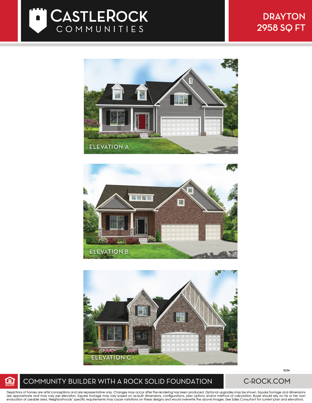 The Drayton floor plan combines elegance and functionality designed to fit most lifestyles. With four spacious bedrooms and two and a half bathrooms, this stunning home offers an open-concept layout that’s practical and comfortable. Step inside and be greeted by the two-story foyer that leads you directly to the formal dining room, where you can host many memorable dinners and special celebrations. Need a space for studying or working? Swap the formal dining for a study instead! Down the hall is the spacious great room, where you can entertain with style with its soaring ceilings, natural light, and optional fireplace to create a warm and inviting atmosphere for gatherings of any size. The breakfast nook and kitchen are designed for both convenience and style. Gorgeous countertops, industry-leading appliances, and an island make meal preparation a delight, with an adjacent breakfast nook. The Drayton offers several different options available when it comes to creating your dream kitchen. At the end of the day, retreat to the grand master suite, complete with a private ensuite bathroom with dual vanities, a separate tub and shower, and a walk-in closet. If you like, you have the option of separating the vanities, adding a 5-ft shower, or adding a tile tub deck – the choice is yours! A flexible bonus room awaits upstairs, offering an optional vaulted ceiling with endless possibilities for customization as a media room, playroom, or whatever you decide. Three more bedrooms, each with walk-in closets, reside upstairs, as well as an additional bathroom, and two walk-in storage closets. You can also include an optional Jack & Jill bathroom between bedroom #2 and bedroom #3, should you choose to do so. There are plenty of included features and attractive options inside the Drayton home. Rest assured, you will love the flexibility and comfort this home has to offer.