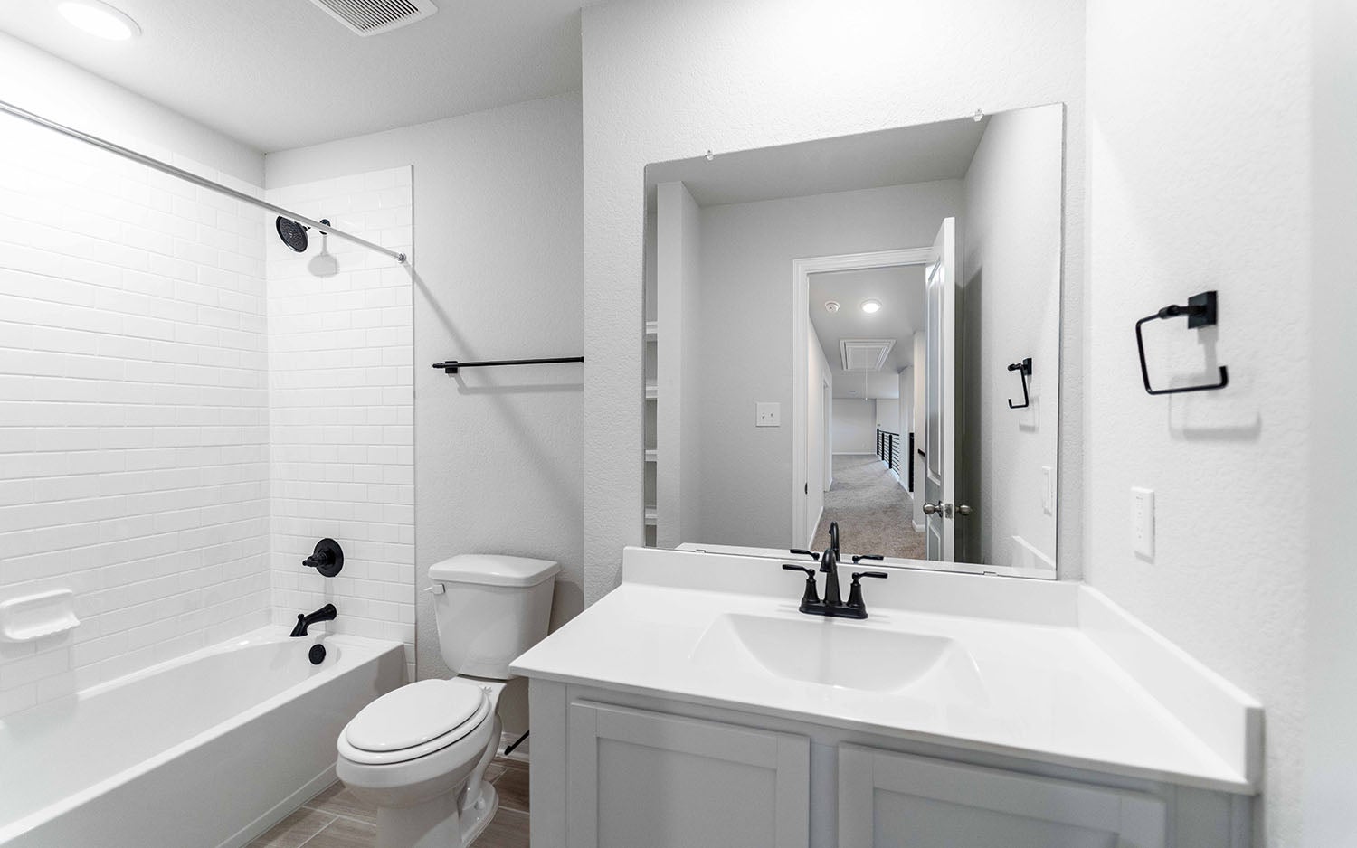 The wonderful, two-story Rio Grande home features an open-concept layout that is ideal for most any lifestyle. Upon entry, you are met with a private study room, a walk-in utility room, a closet, and access to your two-car garage. If you need extra storage space to store holiday decorations, tools, or even another car, opt to tack on an additional five feet for a two-and a half car garage or a full three-car garage! You are soon met with the soul of the home - the massive family room with two-story ceilings serving as the perfect place for entertaining, as well as the conjoined kitchen and breakfast area providing optimal convenience. The kitchen is fully equipped with sleek granite countertops, flat-panel birch cabinets, and industry-leading appliances. If you desire more counterspace, you have the option of including a kitchen island or extra cabinets! The high bar in the kitchen is ideal for the kids to eat breakfast in the mornings, and opens up to the family room, full embracing the open-concept feel. For the outdoor enthusiast, this home has the option of a spacious extended covered patio in the backyard. Head across the kitchen where you will discover the convenient downstairs powder room, and the secluded master suite. Your master bathroom is complete with cultured marble countertops, the option for dual vanities, and a large walk-in closet. Upgrade the master bathroom by opting for a luxury bathtub with stand alone shower or a master super shower instead! Follow up the stairs and you will come across an expansive game room, perfect for hosting family game nights, as well as the three remaining bedrooms with the second bedroom boasting a walk-in closet. The full secondary bath also sits upstairs in between the third and fourth bedrooms. As you can see, the Rio Grande floor plan can be personalized to fit your idea of your dream home the way you have always imagined. With the extensive features and options available, you cannot go wrong with the Rio Grande!