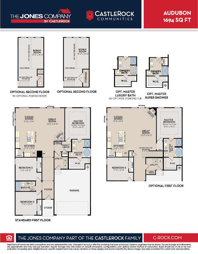 Simplicity meets cozy charm inside the Audubon floor plan! Offering a perfect blend of comfort and style, the Audubon is sure to please. As you step through the front door, you're greeted by the foyer that leads directly into the secondary and third bedrooms, with the secondary bathroom between the two rooms. Down the hall lies the inviting ambiance of the open-concept great room, where natural light shines through expansive windows, creating a bright and airy atmosphere. This versatile space is ideal for entertaining guests or simply unwinding after a long day. Facing the great room is the kitchen and casual dining space. The kitchen is complete with a convenient walk-in pantry, beautiful countertops, and industry-leading appliances that make meal preparation a breeze. Adjacent to the kitchen is the casual dining room, where every meal becomes a cherished moment shared with loved ones. Finally, the master suite boasts a luxurious ensuite bathroom, providing a private sanctuary for rejuvenation and self-care by including dual vanities, a separate tub and shower, and a walk-in closet. Need more space? Opt to include a bonus room with additional storage or powder room upstairs for your convenience! With three spacious bedrooms, two full bathrooms, and a two-car garage providing secure parking and additional storage space, the Audubon floor plan offers everything you need.