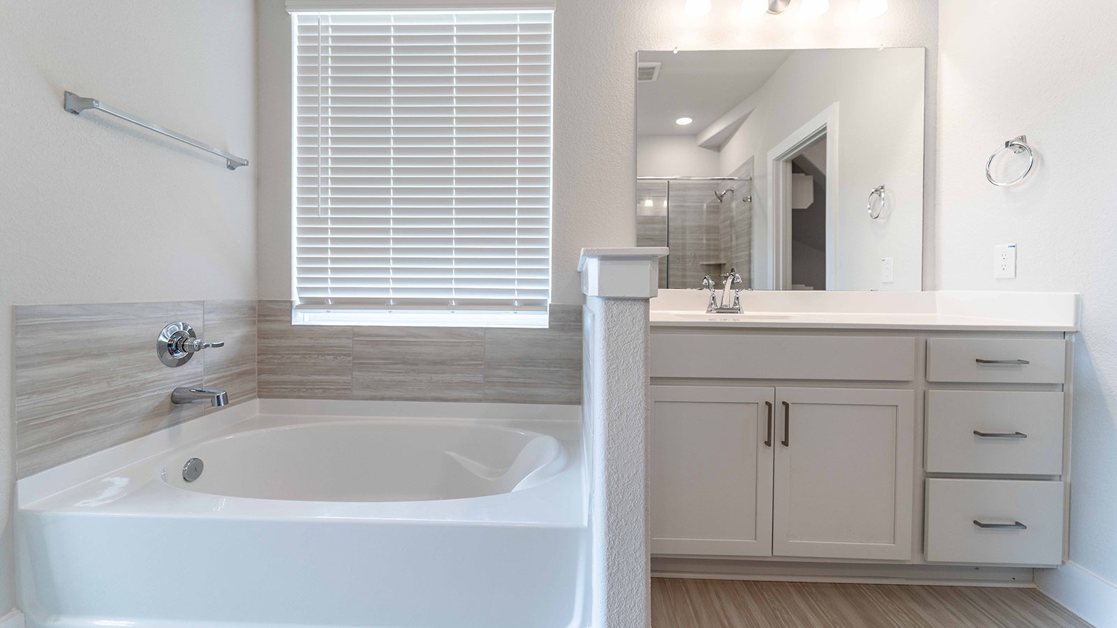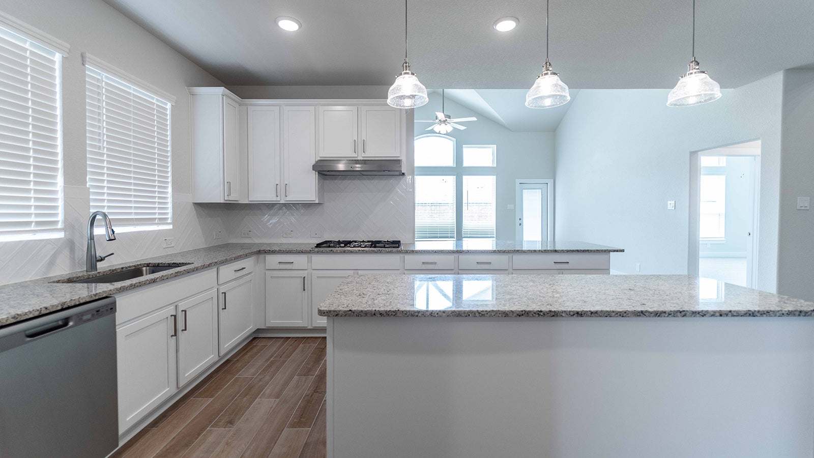 A contemporary design with traditional elements, the San Marcos plan offers a unique layout that suits most any lifestyle. As soon as you enter this elegant home, you are met with the convenient downstairs powder room, a walk-in utility room, and a beneficial computer niche that connects to your spacious kitchen. You are also met with your two-car garage that you have the ability of transforming into a two-and a half -car or three-car garage providing excellent storage space. Amidst your elegant staircase is the curved dining area that adds a custom feel to this innovative design. Across from the unique dining space is the kitchen featuring granite countertops, a walk-in pantry room, a raised bar perfect for when the kids eat breakfast each morning, as well as the option for a kitchen island if you are needing additional counterspace. The kitchen opens up into the massive family room, creating a great space for entertaining gatherings of any size for any occasion. If you crave quality time spent outdoors, the San Marcos plan offers you the option of a huge, covered patio that your whole family and friends can enjoy. Completing the first floor is your secluded master suite. Your master bathroom is complete with separated dual vanities with cultured marble countertops, a bathtub, a stand-alone shower, and an enormous walk-in closet. Enhance your master bathroom by including a super shower instead of a bathtub! Wander up the stairs, where you will find a perfectly sized game room for the kids to have a sanctuary of their own or host game nights with friends. Each bedroom has a unique quality that gives them optimal value. The second bedroom is the largest allows a third bathroom if you prefer, the third bedroom boasts a convenient sitting area/flex space, and the fourth bedroom sits secluded from the others right beside the game room. Between the third and fourth bedrooms is the secondary full bathroom with the option for dual vanities. You will love the San Marcos!