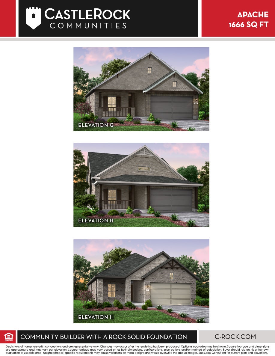 If you are looking for a classic floor plan, with just the right amount of options - our Apache plan is the home for you. Upon entering the home, you are greeted by a private study room with a door. Not interested in having a work space? Not to worry - transform the study into a fourth bedroom for when your friends and family come to visit you. Toward the start of the home and close to the private study (or the fourth bedroom) are the second and third bedrooms with the secondary bathroom being just across the way. With the secondary bathroom, you have the option of turning your bath tub/shower combination into a super shower! Beyond the wall of the secondary bath is the spacious two-car garage, where you have the ability to make it a three-car garage if you decide. Further down toward the back of the home, you will come across your state-of-the-art kitchen consisting of granite countertops, flat-panel birch cabinets, and the option to install a kitchen island giving you ample amount of counter space. Facing the kitchen is your combined dining room and family room areas. Never miss out on a moment with friends and family since the living area is an open-concept layout. Adding the flair and, of course, warmth to your family room, you can choose to have a fireplace installed. Not only does it keep you warm, but it certainly is that added touch that would elevate your home's style! The opportunities do not stop there. Your other options include a large covered patio in your backyard, perfect for sitting an enjoying your coffee in the mornings or barbecuing, and windows in your family room showing off natural light. Finally, the Apache home features a large master bedroom complimented by an equally impressive walk-in closet. Inside the master bathroom you will find double vanities, an expansive bathtub and a shower. If you want your bathroom to feel like an oasis, opt to turn your bathtub into a super shower! You deserve to feel relaxed and pampered in your new home.