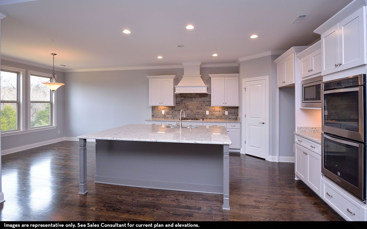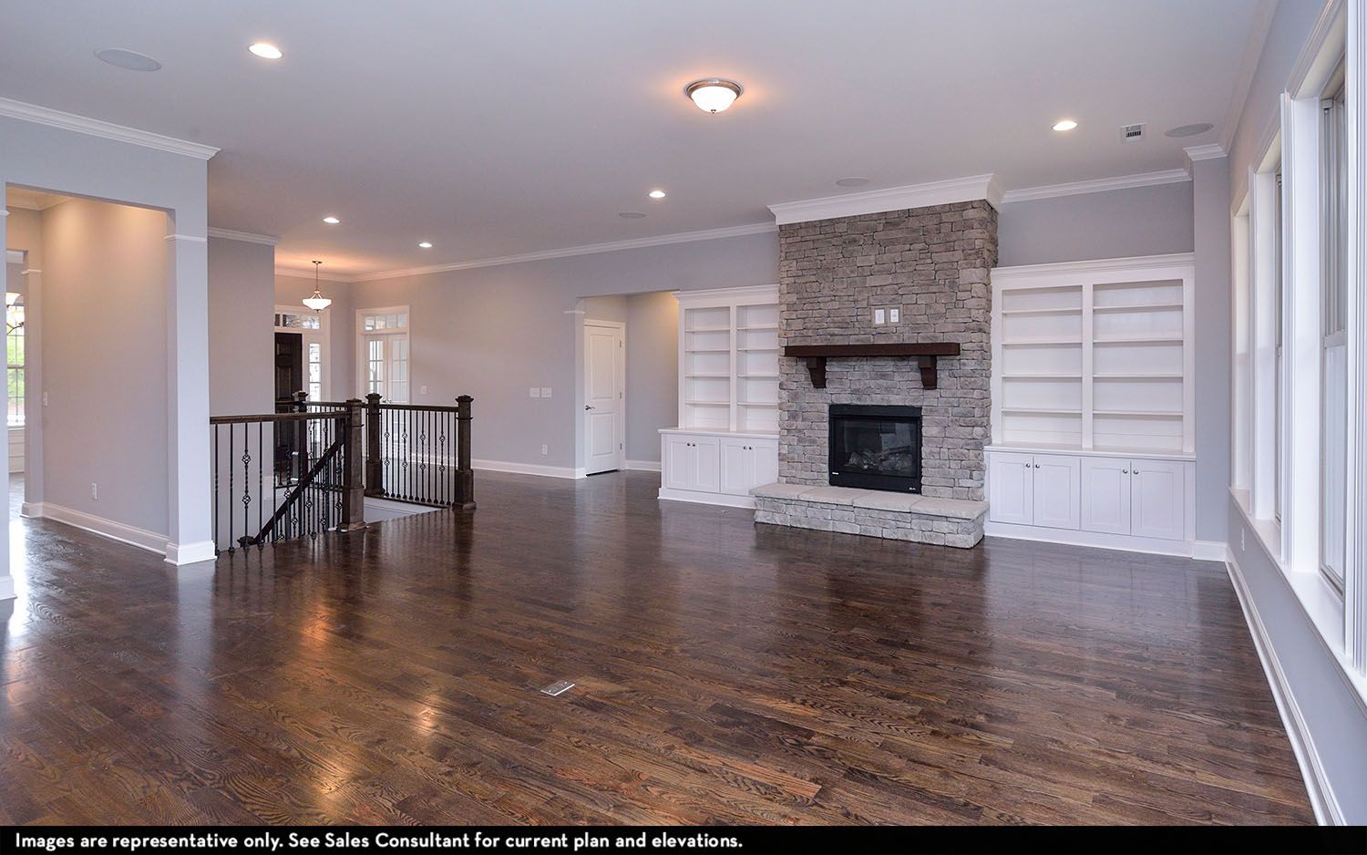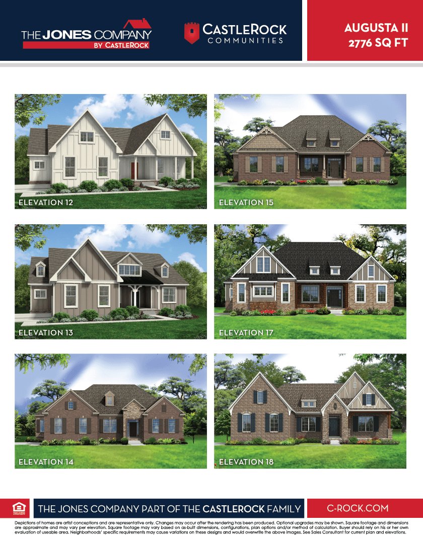 Welcome home to the Augusta II floor plan, where comfort and convenience await around every corner. Boasting captivating features and options, the Augusta II is not only practical but stunning! When you step through the front door, you are met with the formal dining room and the secluded study. If you need an additional bedroom, you can choose to swap the study for an extra bedroom and bathroom! The spacious great room has soaring ceilings, a cozy fireplace, and abundant natural light creating an inviting atmosphere for gathering with friends and family. Conveniently, the kitchen and breakfast nook lie adjacent to the great room, so no one has to miss out on the fun! The kitchen contains beautiful countertops, designer light fixtures, industry-leading appliances, and a generous island, providing the perfect setting for culinary creativity. Through the breakfast nook, step outside to the covered patio, where you can relax and unwind while enjoying the serene views of the surrounding landscape. You can also opt to expand the covered living space and include a fireplace or close it in for a sunroom or hearth room – the option is yours! At the end of the day, escape to the tranquility of three spacious bedrooms, including a lavish master suite complete with a spa-like ensuite bathroom and expansive walk-in closet. Transform your master bathroom into a deluxe bath with a walk-in shower and freestanding tub, if you prefer! The options don’t stop there – an upstairs bonus room, powder room, or additional bathroom also is an option, as well as a finished basement! With a spacious, open-concept layout, a variety of options, and a three-car garage, the Augusta II floor plan offers the perfect combination of luxury, comfort, and functionality.
