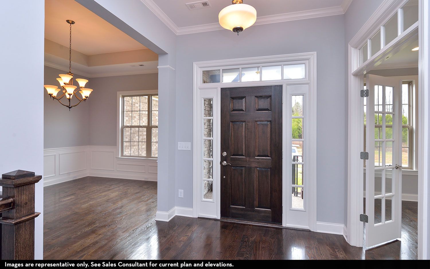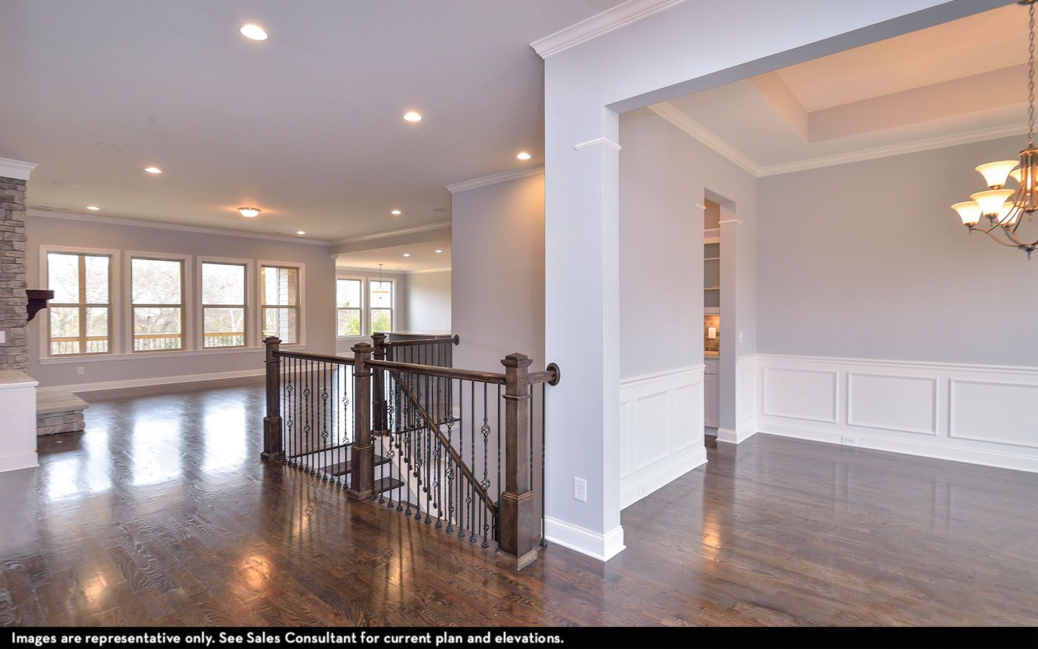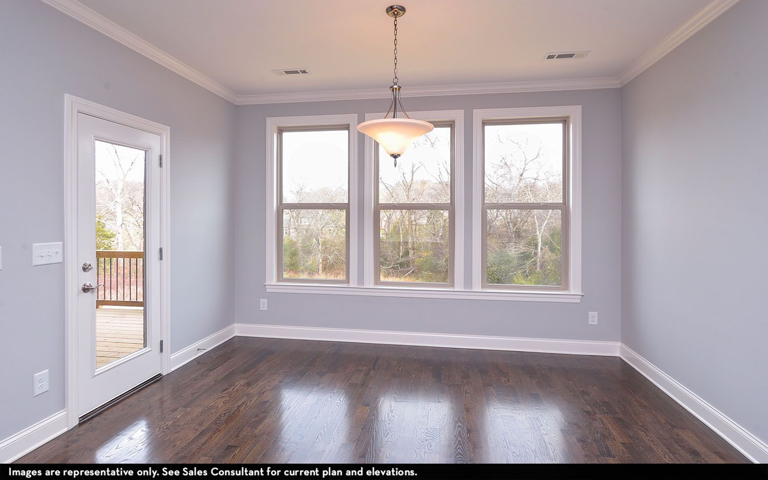 Welcome home to the Augusta II floor plan, where comfort and convenience await around every corner. Boasting captivating features and options, the Augusta II is not only practical but stunning! When you step through the front door, you are met with the formal dining room and the secluded study. If you need an additional bedroom, you can choose to swap the study for an extra bedroom and bathroom! The spacious great room has soaring ceilings, a cozy fireplace, and abundant natural light creating an inviting atmosphere for gathering with friends and family. Conveniently, the kitchen and breakfast nook lie adjacent to the great room, so no one has to miss out on the fun! The kitchen contains beautiful countertops, designer light fixtures, industry-leading appliances, and a generous island, providing the perfect setting for culinary creativity. Through the breakfast nook, step outside to the covered patio, where you can relax and unwind while enjoying the serene views of the surrounding landscape. You can also opt to expand the covered living space and include a fireplace or close it in for a sunroom or hearth room – the option is yours! At the end of the day, escape to the tranquility of three spacious bedrooms, including a lavish master suite complete with a spa-like ensuite bathroom and expansive walk-in closet. Transform your master bathroom into a deluxe bath with a walk-in shower and freestanding tub, if you prefer! The options don’t stop there – an upstairs bonus room, powder room, or additional bathroom also is an option, as well as a finished basement! With a spacious, open-concept layout, a variety of options, and a three-car garage, the Augusta II floor plan offers the perfect combination of luxury, comfort, and functionality.