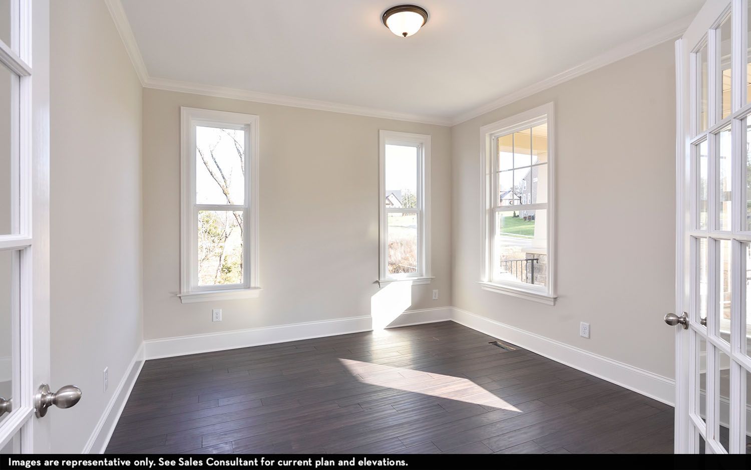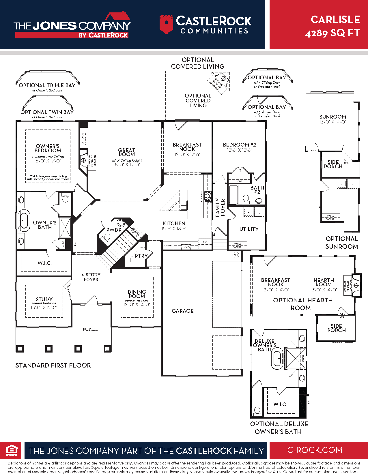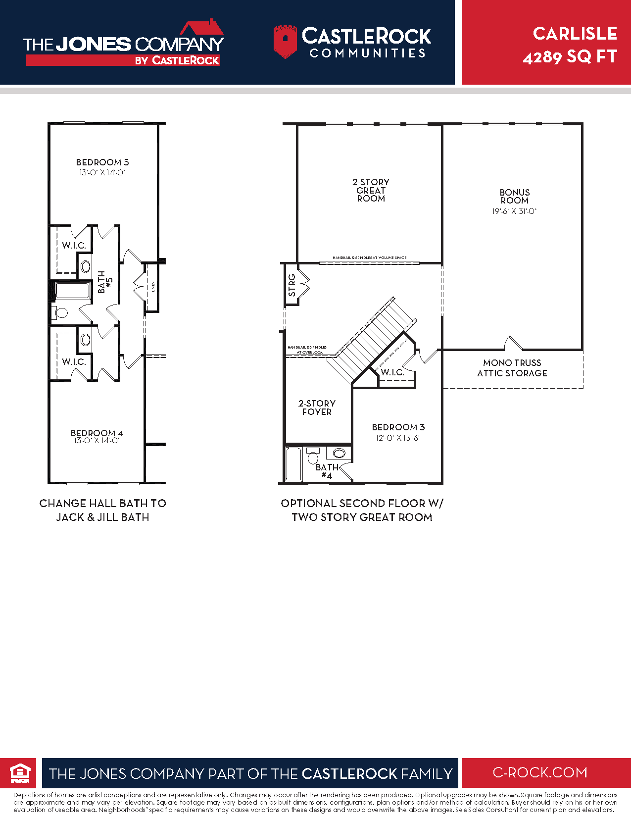 The enchanting Carlisle floor plan boasts luxury and functionality, creating the ultimate living experience. Enter through the home from the expansive front porch, and you’ll be met with a grand, 2-story foyer that flows seamlessly to the secluded study and formal dining room. Down the hall, past the convenient butler’s pantry and powder room, lies the spacious great room, with 10-ft tall ceilings, a beautiful fireplace, and abundant natural light, making this the perfect space for your gatherings with family and friends. Open to the great room is the sizable kitchen and breakfast nook. The kitchen comes stocked with top-notch appliances, designer light fixtures, gorgeous countertops, and an island providing ample counter space. Adjacent to the kitchen is the cozy breakfast nook, perfect for enjoying casual meals with loved ones. For those who like to enjoy the outdoors, you can opt to include a covered living area right off the breakfast nook! Completing the first floor is the secondary bedroom and bathroom, as well as the luxurious master suite including separate dual vanities, a freestanding tub, a walk-in shower, and a large walk-in closet. Upstairs, a spacious bonus room and loft provide additional living space for entertainment or relaxation. There is also three additional bedrooms, two bathrooms, and storage space available upstairs. The options in the Carlisle home are plentiful! Downstairs, you can swap Bedroom #2 for a hearth room or sun room, while upstairs, you can opt for a larger bonus room, a secondary master suite, or a media room. For those wanting a separate space to call their own, opt to include a finished basement with a recreation room, additional bedrooms, and bathrooms. Rest assured, you can personalize the Carlisle home the way you have always imagined.