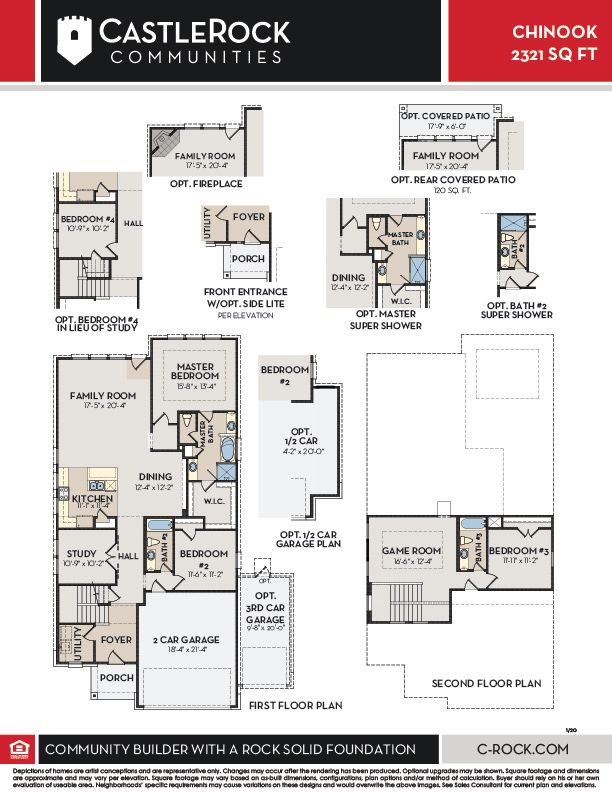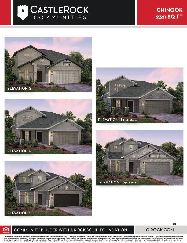 The Chinook floor plan has everything you need and more! This unique plan boasts an ideal layout of two stories, three bedrooms with three bathrooms. The exterior of this home is just as beautiful as the layout of the interior with an exclusive landscaping package offered, as well as the option to have a stone elevation versus brick. When you enter the home, you are immediately greeted by the walk-in utility room and stairs leading to the second floor. Across from the stairway, you will discover the guest bedroom with the full secondary bathroom residing just beside the bedroom. With the secondary bedroom, you can opt for a super shower. Next to the staircase is the private study room, where you can work in peace and escape the busyness of the combined dining, kitchen, and family room. If you desire, you can opt to transform your study room into a fourth bedroom. The kitchen features granite countertops, industry-leading appliances, birch cabinets, designer light fixtures, and plenty of room in your pantry to store all of your necessary items. Adjacent to the kitchen is the welcoming dining room attached with the large family room with an optional fireplace and access to an optional covered patio. This combination of rooms and covered patio proves to be the perfect layout for gatherings with friends and family. Just beyond the dining room and family room combination lies the master bedroom equipped with three windows for optimal natural light to stream inside. Accompanied with the master bedroom is the master bathroom holding dual separate vanities, a bathtub, as well as a stand alone shower and a generously-sized walk-in closet. If you prefer, you can decide to swap the bath for a large super shower instead! Upstairs, you are met with a gameroom the kids will love, joined by the third bedroom and bathroom. The Chinook home is complete with a two-car garage that you are able to alter to include another half-car or turn it into a three-car garage.