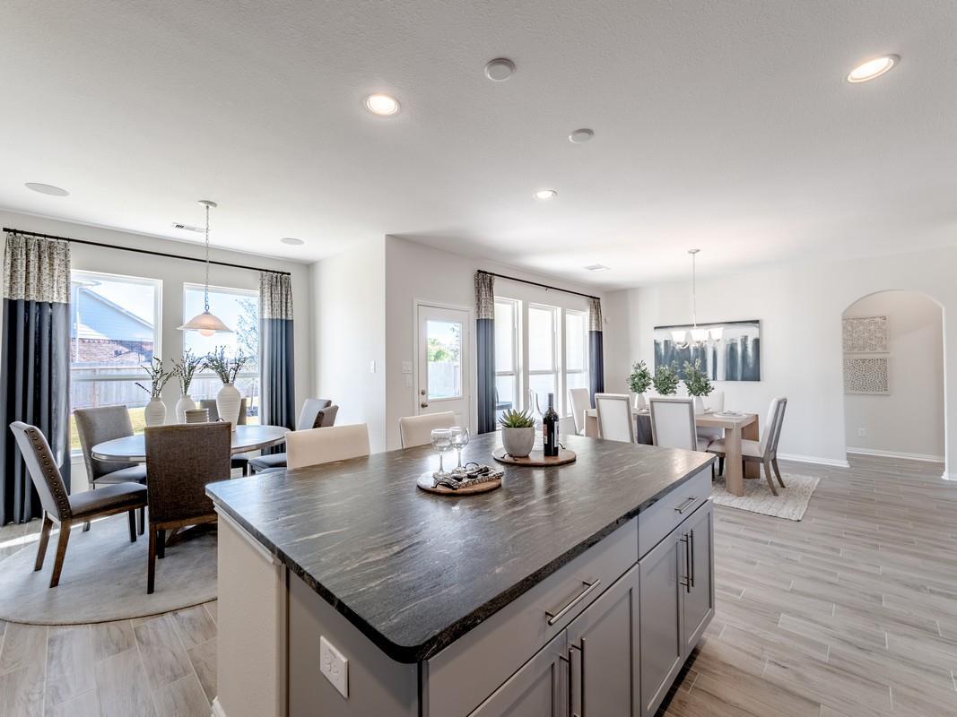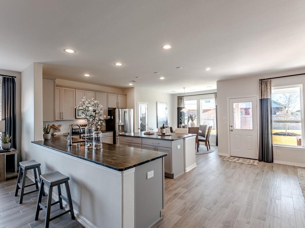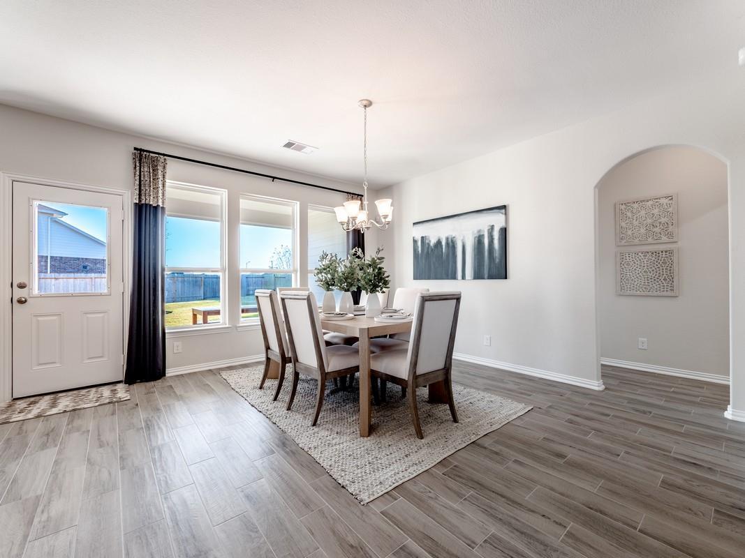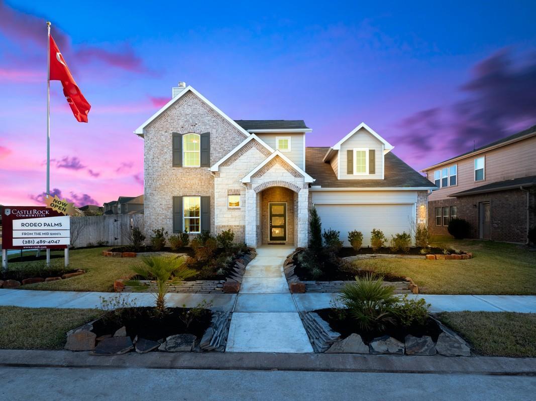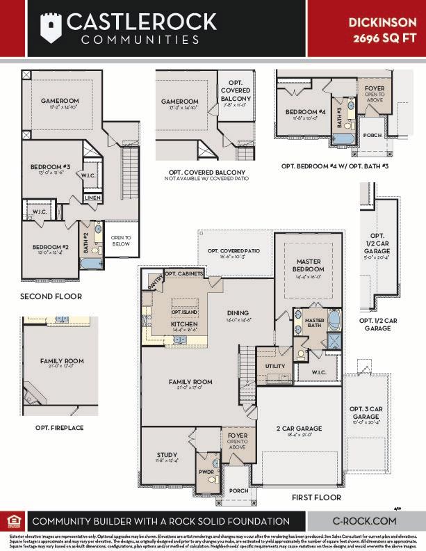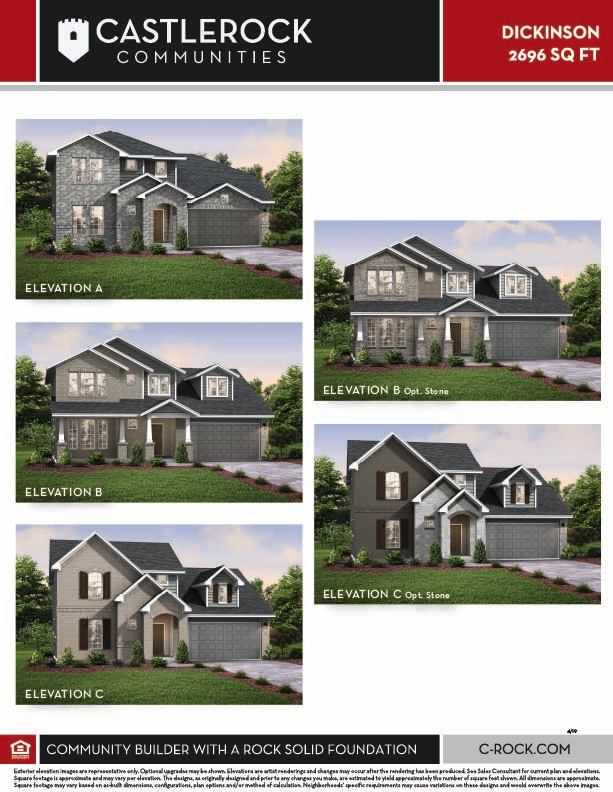 This beautiful, open-concept, two-story Dickinson home has just what you need with the space to accommodate anything you desire. Upon entry, the first floor greets you with a convenient powder room and a private study room which you can transform into a fourth bedroom/third bathroom if you intend on hosting guests overnight. You also come across the entry to your two-car garage which you have the option of extending five extra feet for more storage space, or an extra ten feet to fit a third vehicle! You are then led to the massive family room with the option to put in a stylish fireplace with the combined dining area, and a spacious kitchen that is perfect for entertaining gatherings of any size. Your kitchen consists of attractive features like granite countertops, birch cabinets, industry-leading appliances, and a walk-in pantry! In the kitchen, you have options of including a kitchen island or extra cabinets for additional countertop space. Through the kitchen is access to your optional covered patio or a covered balcony off the upstairs game room. Either option is something unique that the entire family can enjoy. Around the corner from the combined family room and dining area are your walk-in utility room and your secluded master suite. Your master bedroom boasts three windows for optimal natural light, while your master bathroom features cultured marble countertops with dual vanities, a bathtub with stand alone shower, and a huge walk-in closet. Head upstairs where you will find a hallway to the large game room perfect for family game nights, as well as a linen closet, and the two remaining bedrooms - both including large walk-in closets. The secondary bathroom also resides upstairs next to the secondary bedroom. Having enough space is no problem in this plan! The considerable amount of favorable options and exclusive included features present in the CastleRock Dickinson home certainly allows you to bring your dream home visions to life.