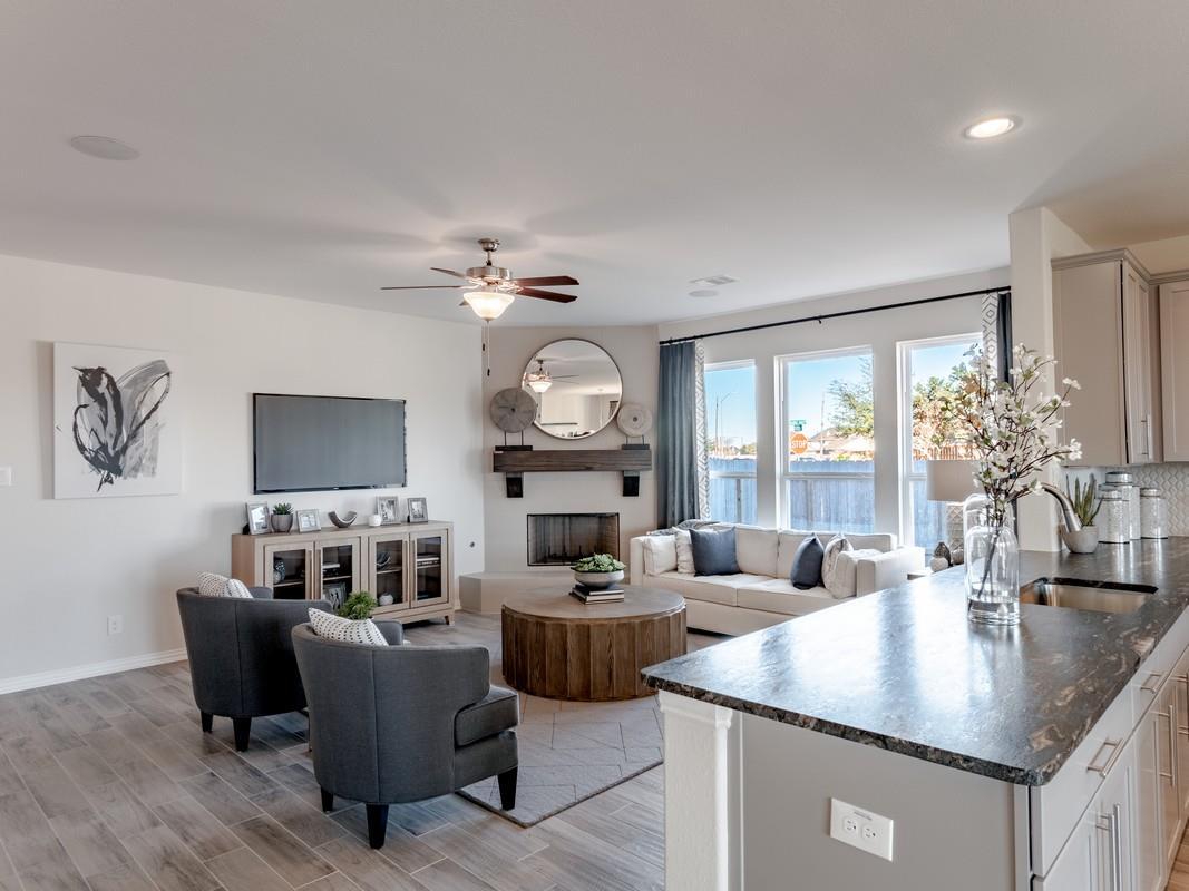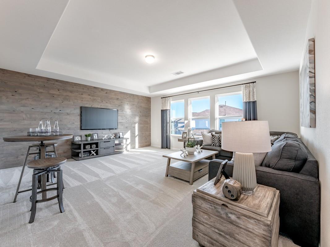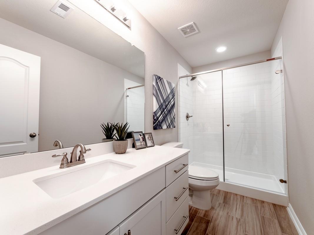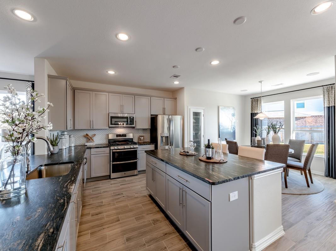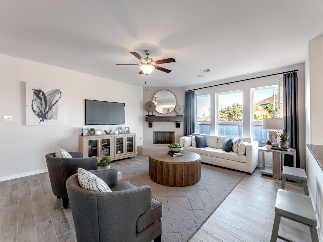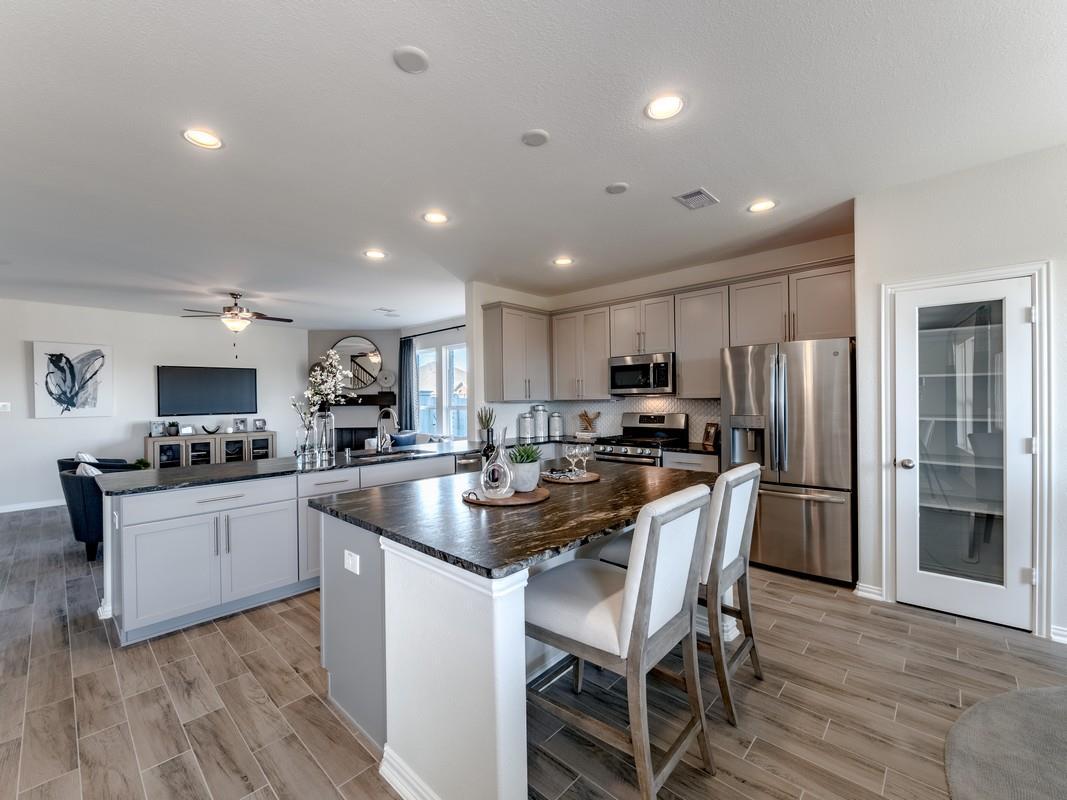 This beautiful, open-concept, two-story Dickinson home has just what you need with the space to accommodate anything you desire. Upon entry, the first floor greets you with a convenient powder room and a private study room which you can transform into a fourth bedroom/third bathroom if you intend on hosting guests overnight. You also come across the entry to your two-car garage which you have the option of extending five extra feet for more storage space, or an extra ten feet to fit a third vehicle! You are then led to the massive family room with the option to put in a stylish fireplace with the combined dining area, and a spacious kitchen that is perfect for entertaining gatherings of any size. Your kitchen consists of attractive features like granite countertops, birch cabinets, industry-leading appliances, and a walk-in pantry! In the kitchen, you have options of including a kitchen island or extra cabinets for additional countertop space. Through the kitchen is access to your optional covered patio or a covered balcony off the upstairs game room. Either option is something unique that the entire family can enjoy. Around the corner from the combined family room and dining area are your walk-in utility room and your secluded master suite. Your master bedroom boasts three windows for optimal natural light, while your master bathroom features cultured marble countertops with dual vanities, a bathtub with stand alone shower, and a huge walk-in closet. Head upstairs where you will find a hallway to the large game room perfect for family game nights, as well as a linen closet, and the two remaining bedrooms - both including large walk-in closets. The secondary bathroom also resides upstairs next to the secondary bedroom. Having enough space is no problem in this plan! The considerable amount of favorable options and exclusive included features present in the CastleRock Dickinson home certainly allows you to bring your dream home visions to life.