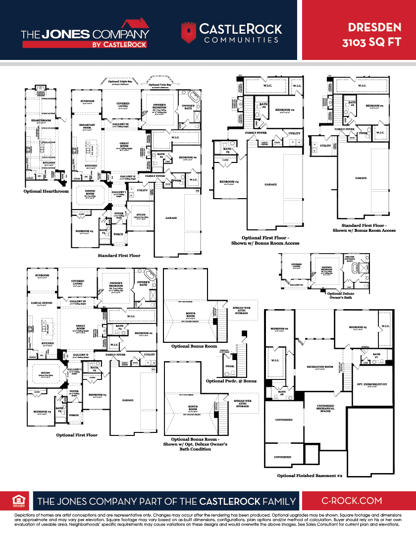 Welcome to the Dresden floor plan, where luxury and comfort intertwine to create the perfect retreat for modern living. Boasting three spacious bedrooms and three and a half bathrooms, this well-designed home offers a sizeable layout, ideal for most lifestyles. Inside, you’re met with the elegant formal dining room, perfect for hosting intimate dinners or festive gatherings. Escape to the tranquility of the secluded study, providing a quiet space to work or unwind. Wander through the gallery, where you’ll be greeted by the open-concept great room, kitchen, and breakfast area, where each space seamlessly flows, creating a warm and inviting atmosphere for gatherings with family and friends. Whip up culinary delights in the fabulous kitchen, equipped with beautiful countertops, industry-leading appliances, designer light fixtures, and spacious cabinets. Adjacent to the kitchen, the breakfast area and connecting sunroom offers the perfect spot to enjoy casual meals or morning coffee. The sunroom offers an additional space to soak in the sunlight and enjoy gorgeous views of the surrounding landscape. If a hearth room is more your style, you can opt to swap out the sunroom! Step outside onto the covered patio, where you can relax and enjoy the outdoors in any weather. The Dresden floor plan has many options that can suit your lifestyle needs, such as a bonus room, finished basement, deluxe master bathroom, bay windows, and more! With a three-car garage providing ample space for vehicles and storage, the Dresden floor plan has a convenient and flexible layout that is designed to meet your needs.