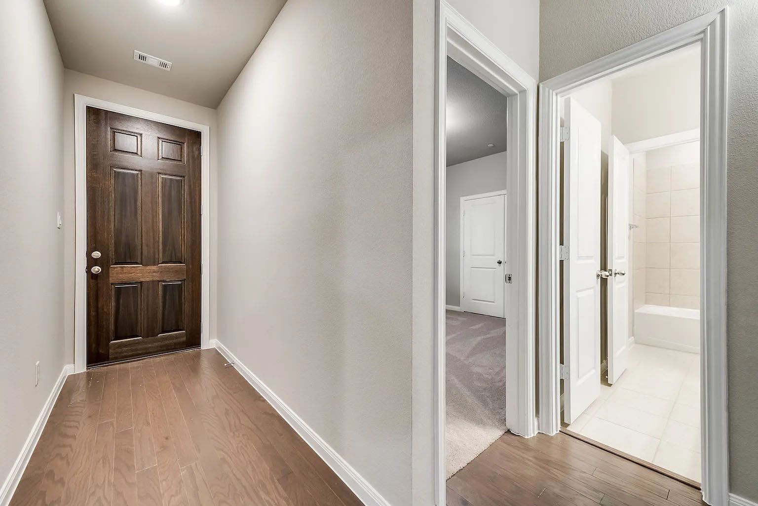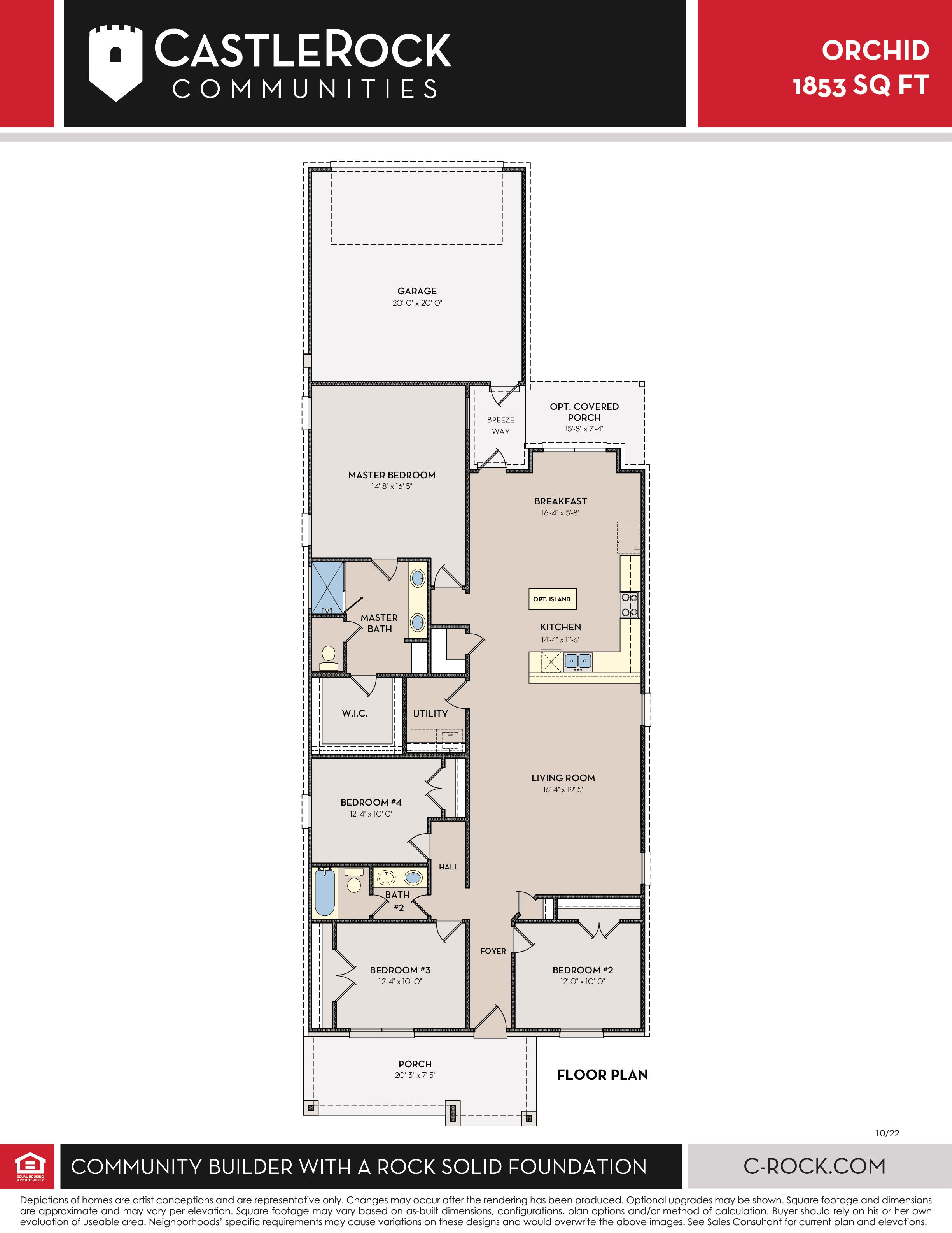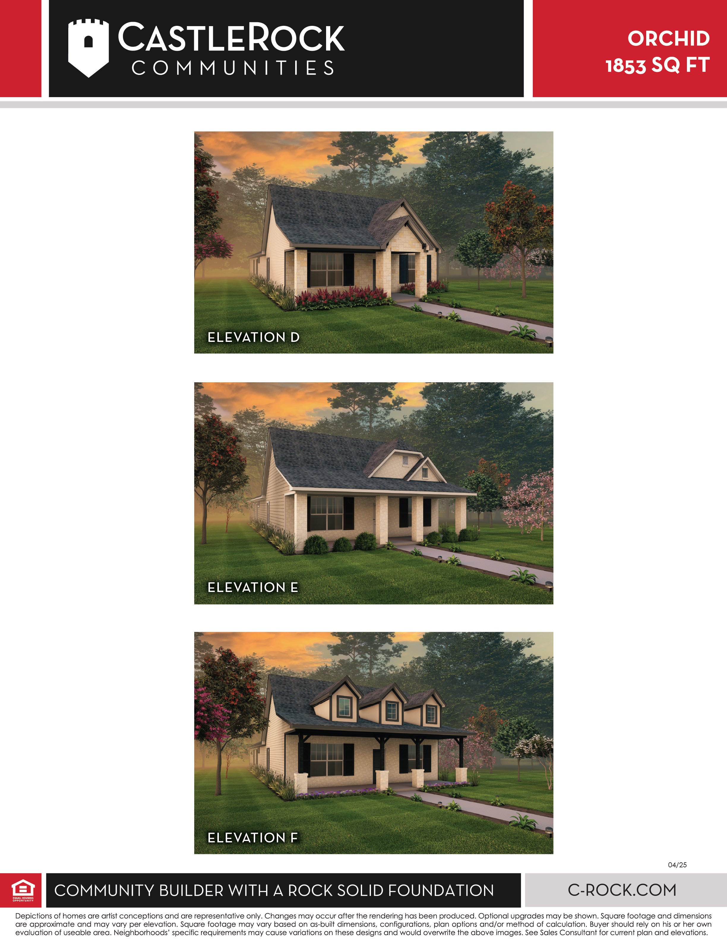 The stunning, low-maintenance Orchid plan welcomes you with a sprawling, open-concept floor plan perfect for any lifestyle. Offering a picturesque curb appeal, the Orchid presents a spacious front porch with four gorgeous columns, perfect for sipping your coffee in the mornings, chatting with the neighbors, or watching the kids playing in the front yard - the options are limitless! Entering your new home, you are met with the foyer area and access to your second, third, and fourth bedrooms, as well as the full secondary bathroom residing in between the third and fourth bedroom for optimal convenience for your guests. Just across the foyer is your large, open family room that is perfect for hosting gatherings of any size. Your convenient walk-in utility room also faces the family room. Opening up to the family room is your adjoined kitchen and breakfast area, a functional area that is ideal for most any family. Your kitchen comes complete with sleek granite countertops accompanied by a ceramic tile backsplash, flat-panel birch cabinets, a walk-in pantry, and a kitchen island for more counter space! Leading off the breakfast room is entry to your spacious backyard with the option to include a covered patio and breezeway leading to your two-car garage. When it's time to relax, head over to your secluded master bedroom complete with cultured marble countertops boasting double vanities, a luxurious super shower, and a sizable walk-in closet. With energy-efficient features like low E3 cube windows, a 16 SEER HVAC system, third-party inspected insulation, and high-efficiency light fixtures, you are sure to stay comfortable in your home year-round. Just as beautiful as the flower itself, the Orchid plan will accommodate you and your family's needs the way you have always imagined. Whether you decide to utilize the options available, or relish in the possibilities the original plan has to offer, you will cherish each moment spent with your loved ones in this home.