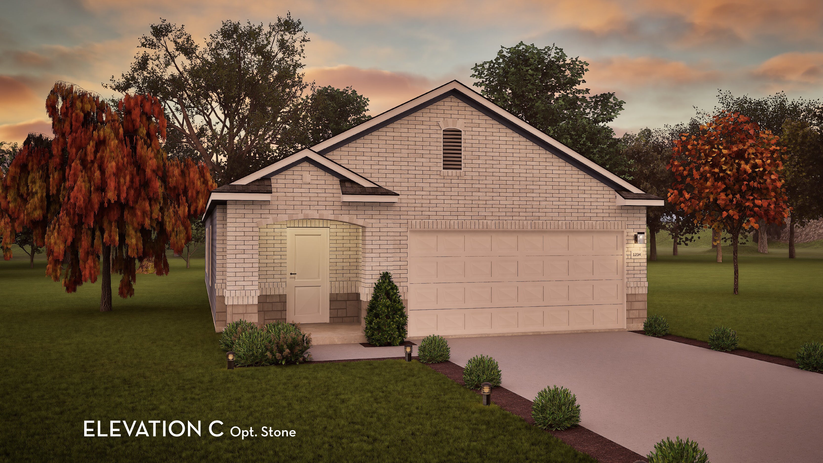 With enough space for the whole family, the Pecan floor plan will not disappoint. Upon entering your new home, you are greeted by a foyer area that is equipped with your convenient utility room, storage closet, and an entrance to your two-car garage. Needing more storage for tools, holiday decorations, or another car? Decide to upgrade to a two-and-a-half-car garage or even a three-car garage! Travel down the hallway where you are met with your expansive family room and dining room combination - perfect for entertaining guests for dinner parties, holidays, or any other occasion! Right off the living room lies your secondary and third bedrooms with the full secondary bathroom residing in between the two bedrooms. Past the dining area is your spacious kitchen area complete with access to your pantry, and contains sleek granite countertops, flat-panel birch cabinets, industry-leading appliances, and designer light fixtures that is sure to please any eye! Leading from the kitchen is access to your backyard with the option to include an extensive covered patio for you to enjoy backyard barbecues on. When it's time to rest, head over to your private master suite. Your master bathroom boasts cultured marble countertops, a large super shower, and a huge walk-in closet! The Pecan plan is perfect for most any lifestyle, no matter what phase of life you are in. Each CastleRock home is Energy Star Certified and is built with energy-efficient features that help keep you comfortable year-round. Features like low E3 cube windows, third-party inspected insulation, and high-efficiency lighting all work together to make sure you and your family are safe and comfortable throughout any season. Rest assured, you will cherish every moment made inside your lovely Pecan home. With the favorable options and exclusive features included in this floor plan, you will not regret choosing this home for your family.