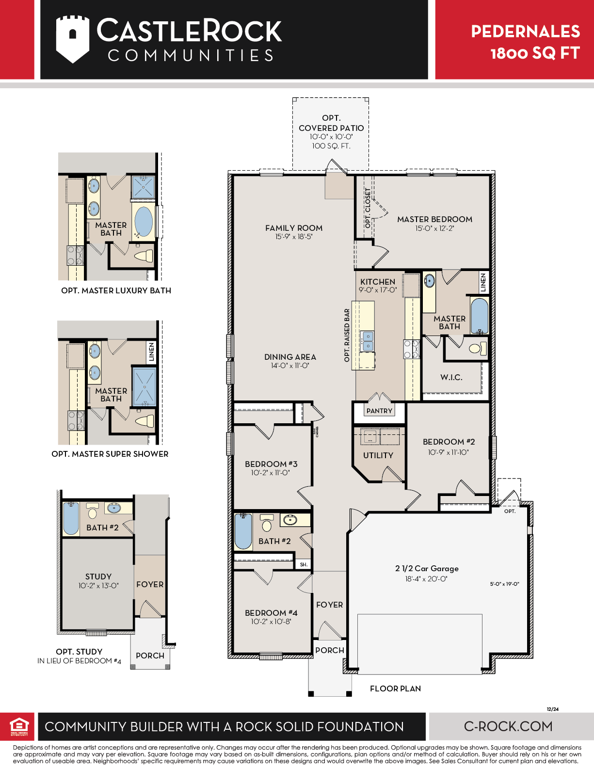 The exciting Pedernales floor plan boasts a four bedroom, two bathroom single-story home. Upon entering this outstanding home, you are met with a foyer area with access to your fourth bedroom at the front of the home. In need of a secluded work from home space or an area for the kids to do their homework? Transform the fourth bedroom in to a study room for your convenience. A little further down the hall and you will discover your third bedroom with the full secondary bathroom residing between the two bedrooms. You also will find the entry to your 2.5-car garage. Around the corner from the garage is your sizable walk-in utility room, as well as your second bedroom. At the heart of your home is the uniquely-designed combined family room and dining area that your friends and family are sure to enjoy. Never miss out on any conversations with guests, since the open-concept kitchen area opens up to the combined family room and dining area, making hosting guests for the holiday a breeze. Your kitchen comes fully equipped with ample counterspace featuring granite countertops with a ceramic tile backsplash, a kitchen island with the option to raise the bar for additional seating underneath, industry-leading appliances, and an oversized, walk-in pantry. You will love entertaining guests in this home! The door from your family room leads to your optional covered patio - perfect for relaxing outdoors or grilling out for your friends and family. Retreat to your master suite where you can relax in your master bathroom. The master bathroom is complete with a shower/tub enclosure, the option for dual vanities, as well as the option for two closets - one of them being a walk-in closet! If you want to enhance your master bathroom, opt to include a master luxury bath or a super shower featuring standard dual vanities instead. The opportunities in the Pedernales are limitless!