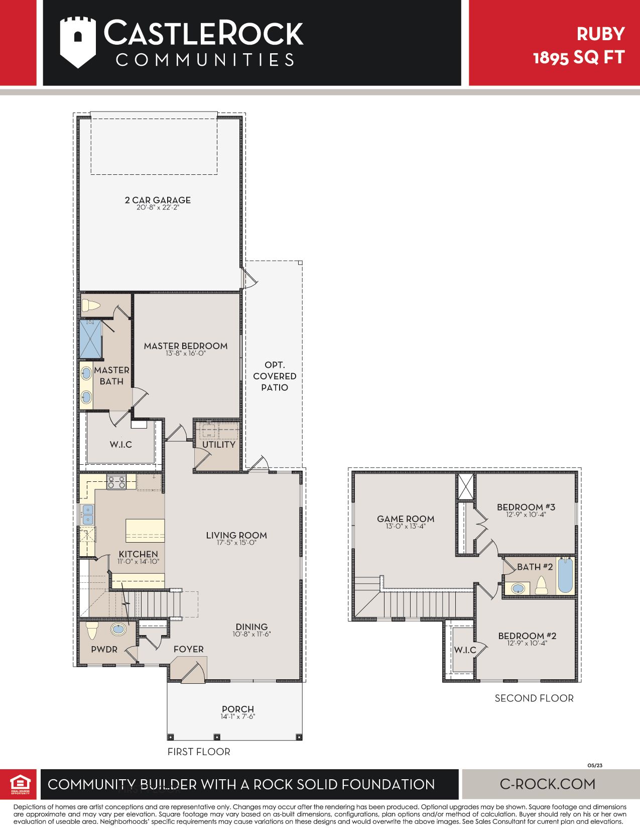 The fabulously designed Ruby floor plan is for the family that wants it all. This beautiful three-bedroom, two-and a half bath home features a spacious front porch, perfect for drinking your morning coffee or lounging in a rocking chair. Upon entering the home, you are greeted by the welcoming dining room and the massive family room combination, along with the convenient downstairs powder room and extra storage closet. The conjoined family and dining areas reside directly adjacent to the open-concept kitchen, making this the perfect space for gatherings of any size for any occasion! Your kitchen boasts outstanding features such as granite countertops, flat-panel birch cabients, industry-leading appliances, as well as an oversized walk-in pantry. You even have the option of including a kitchen island, should you need more counter space. From your family room, you are granted access to your backyard which has the option of including a covered patio leading directly to your two-car garage! Make your way to the back of the home, where the secluded master suite resides. Your elegant master bathroom holds cultured marble countertops, the option for dual vanities, and a large walk-in closet. Enhance your master bathroom by upgrading to a master super shower with standard dual vanities instead! The opportunities are limitless with the Ruby floor plan. Head upstairs and you will discover a huge gameroom that the kids will love, as well as the two remaining bedrooms while the second bedroom boasts a walk-in closet. The full secondary bathroom lies in between both bedrooms for the kids' or your guests' convenience. The Ruby plan has just enough space for your family to live comfortably and flexibly as there are enough options and amenities that the entire family will enjoy. Rest assured, with the Ruby plan, you will cherish each moment with all of the space and opportunities you have. Explore the possibilities to personalize your Ruby home the way you have always envisioned.