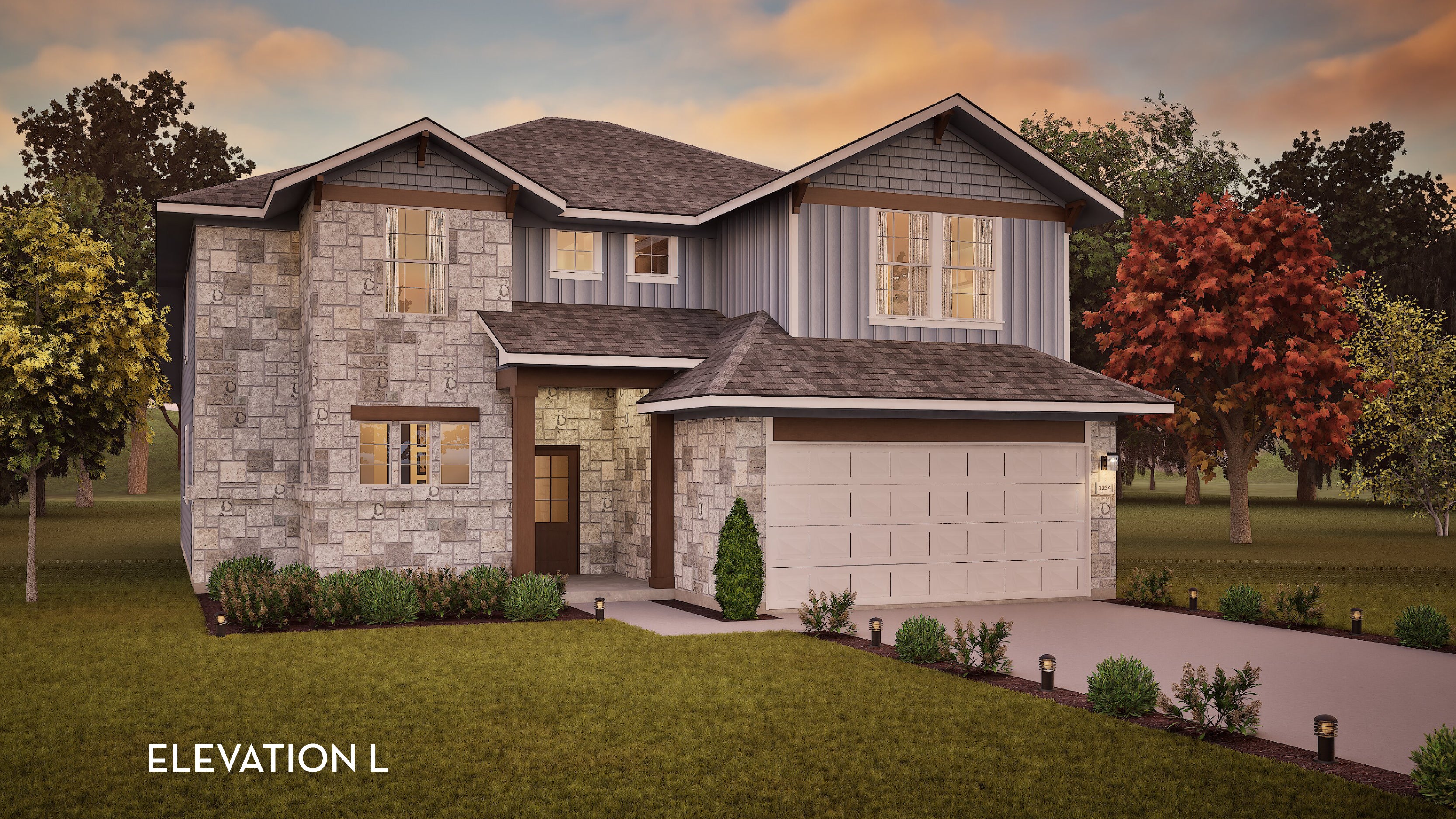 A contemporary design with traditional elements, the San Marcos plan offers a unique layout that suits most any lifestyle. As soon as you enter this elegant home, you are met with the convenient downstairs powder room, a walk-in utility room, and a beneficial computer niche that connects to your spacious kitchen. You are also met with your two-car garage that you can transform into a three-car garage perfect for another vehicle or serving as an excellent storage space. Amidst your elegant staircase is the curved dining area that adds a custom feel to this innovative design. Across from the unique dining space is the kitchen featuring granite countertops, a walk-in pantry room, a raised bar perfect for when the kids eat breakfast each morning, as well as the option for a kitchen island if you are needing additional counterspace. The kitchen opens up into the massive family room, creating a great space for entertaining gatherings of any size for any occasion. If you crave quality time spent outdoors, the San Marcos plan offers you the option of a huge covered patio that your whole family and friends can enjoy. Completing the first floor is your secluded master suite. Your master bathroom is complete with separated dual vanities with cultured marble countertops, a bathtub, a stand-alone shower, and an enormous walk-in closet. Enhance your master bathroom by including a super shower instead of a bathtub! Wander up the stairs, where you will find a perfectly-sized gameroom for the kids to have a sanctuary of their own or host game nights with friends. Each bedroom has a unique quality that gives them optimal value. The second bedroom is the largest allows a third bathroom if you prefer, the third bedroom boasts a convenient sitting area/flex space, and the fourth bedroom sits secluded from the others right beside the gameroom. Between the third and fourth bedrooms is the secondary full bathroom with the option for dual vanities. You will love the San Marcos!