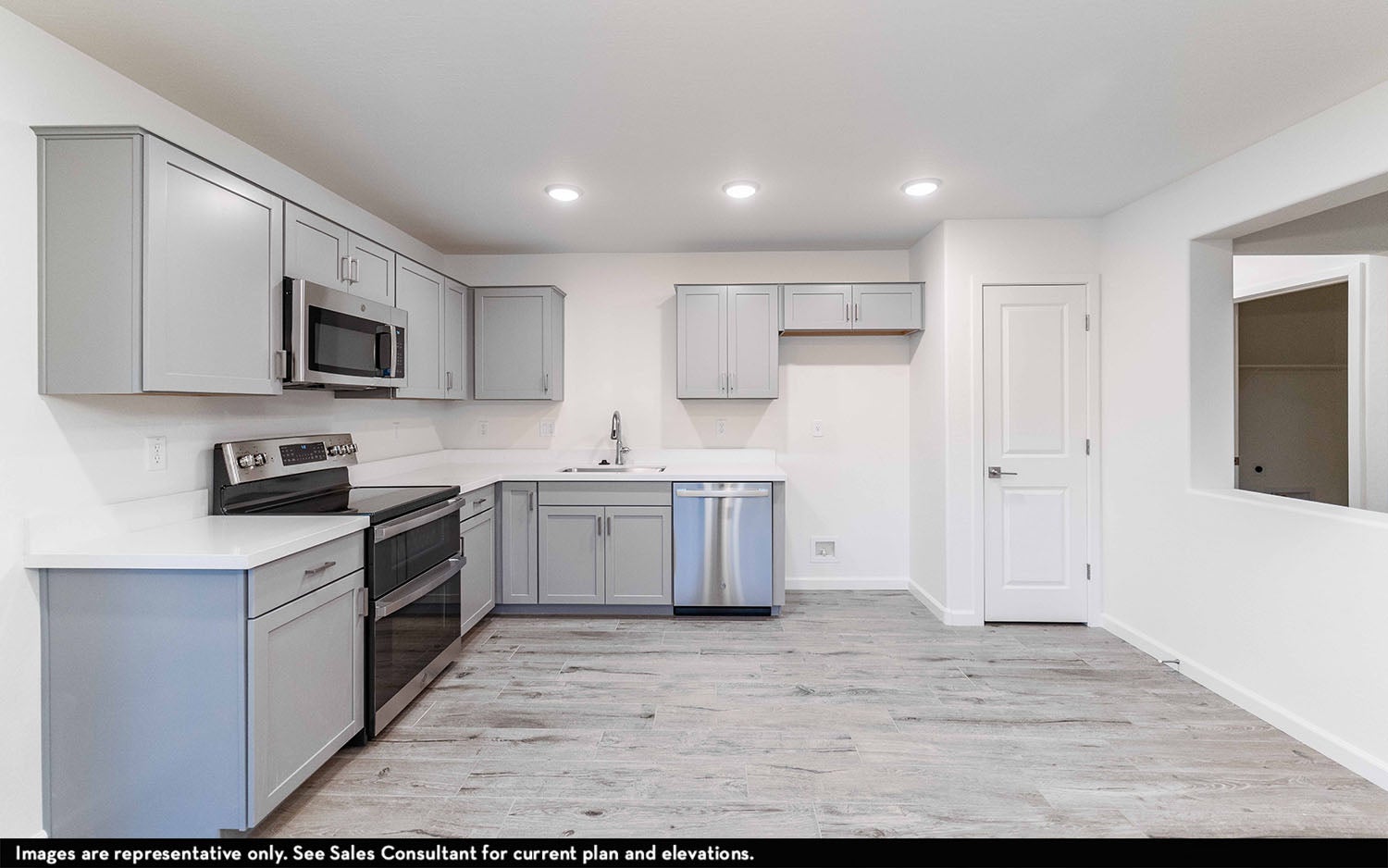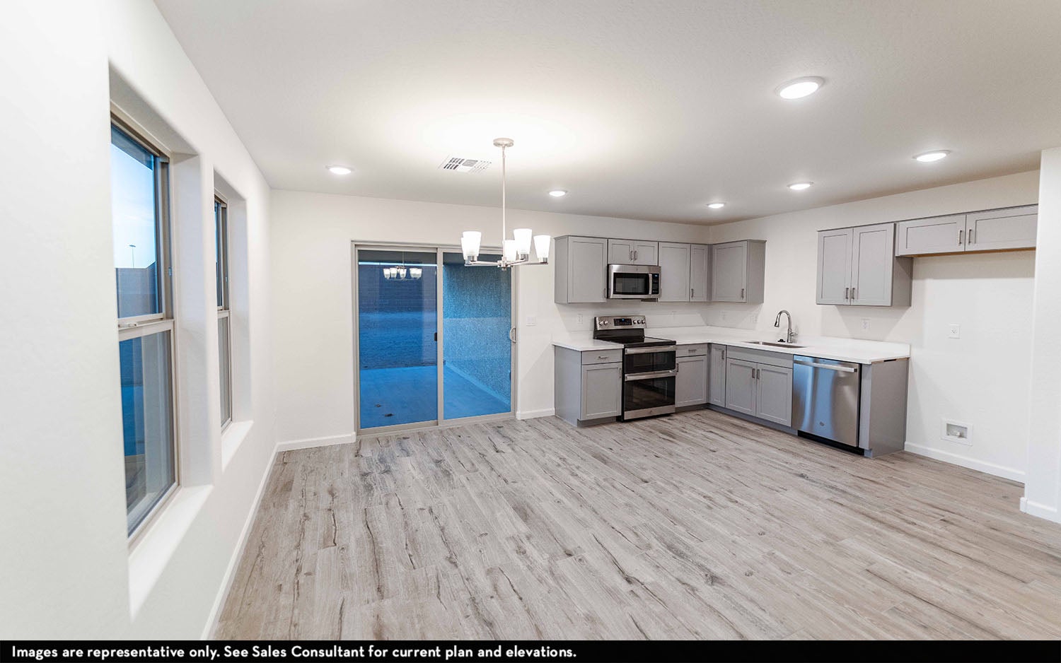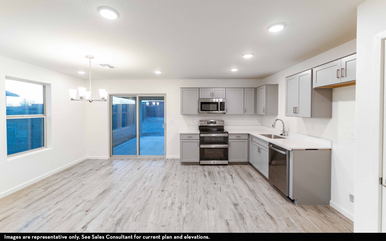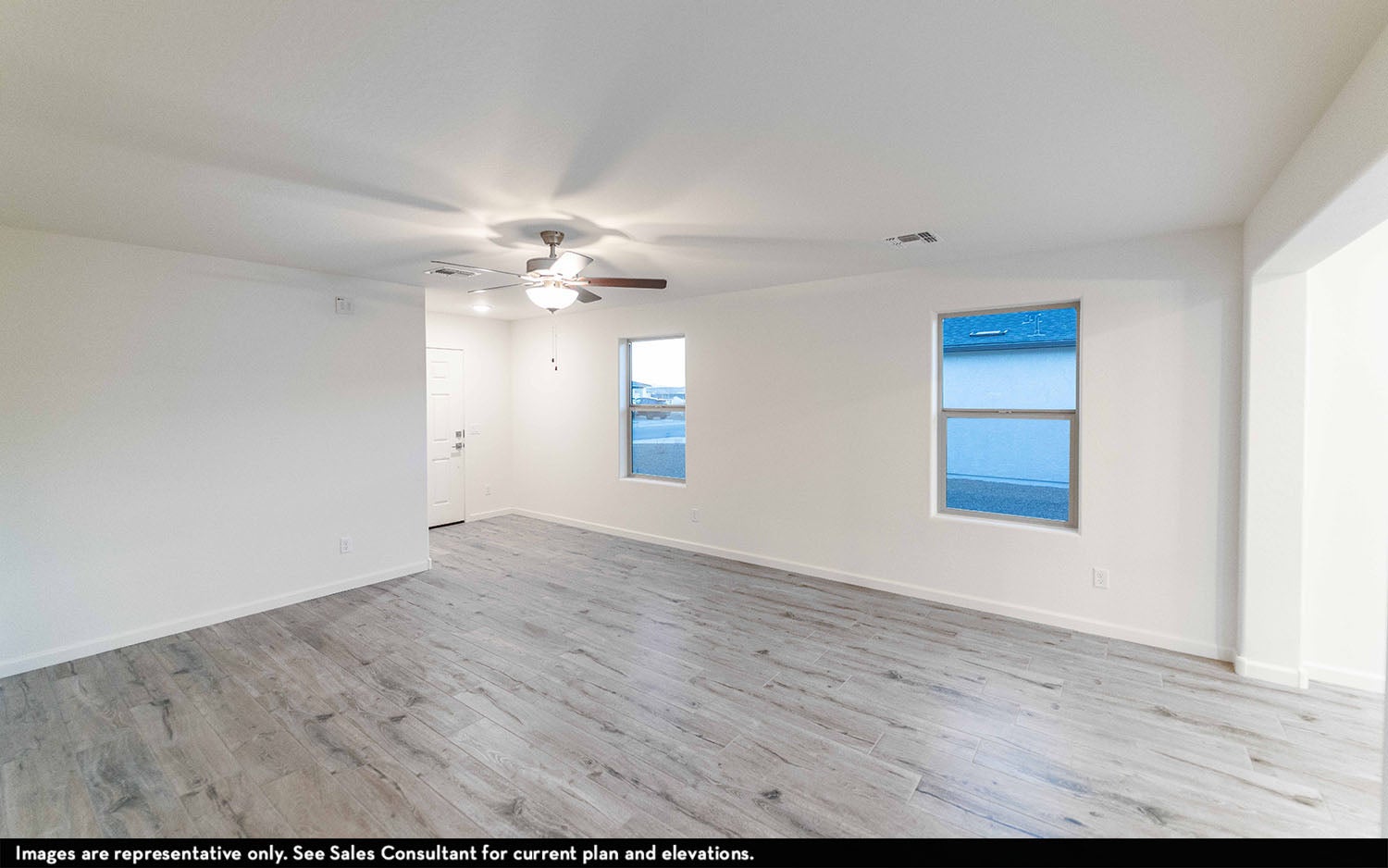 Upon entering this home, you come face to face with the gorgeous family room, perfect for hosting gatherings with family and friends. Facing the family room is your combined kitchen & dining room, providing optimal convenience for the whole family. The kitchen boasts top-of-the-line features such as granite countertops, a ceramic tile backsplash, designer light fixtures, flush-mounted LED down lighting, and industry-leading appliances. You also have the option of a kitchen island, if you need the extra counter space! Across from the family room is access to your laundry room, and 2-car garage, which you have the ability to upgrade to a 2.5-car garage, if you're in need of extra space! Down the hall, you are met with the second and third bedrooms, both containing walk-in closets, as well as a full bathroom. Finally, you reach the master suite. The ensuite bath boasts cultured marble countertops and a walk-in closet. You can either opt to separate the tub and shower or remove the tub and have a super shower instead! The available options and incredible included features in the Choctaw home allow you to customize your home the way you’ve always dreamed. This home does not disappoint!